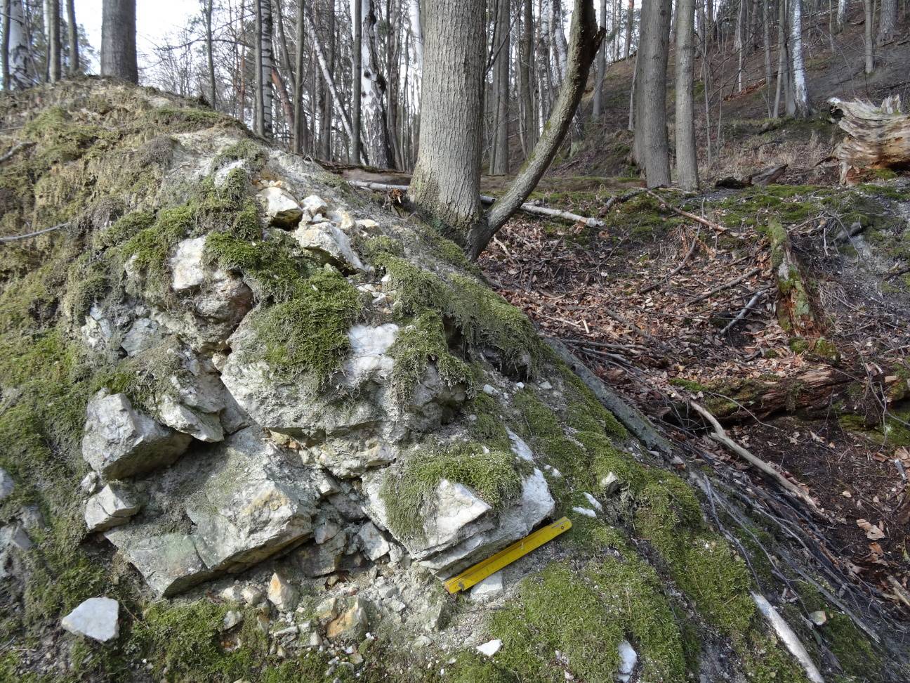 Fotografie Žíla křemene ve Staré kaolínové jámě u Vidnavy. Měřítko: 20 cm. Foto: M. Hanáček, březen 2020.