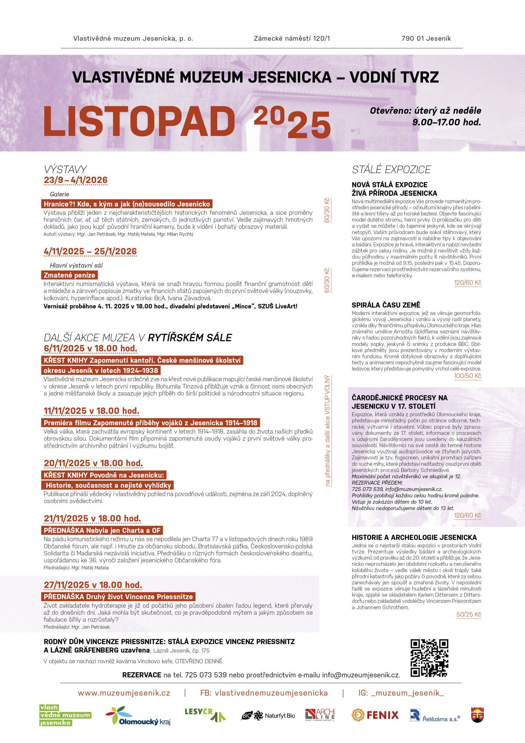 Premiéra filmu Zapomenuté příběhy vojáků z Jesenicka 1914- 11. listopad 2025, 18.00 hod. Rytířský sál Vodní tvrze Velká válka, která zachvátila evropský kontinent (a postupně také většinu světa) v letech 1914–1918, zasáhla do života našich předků obrovskou silou. Dramatické osudy jejích aktérů však byly v našich končinách téměř zapomenuty – překryla je následující, ještě strašnější válka a její následky.Vlastivědné muzeum Jesenicka se ve spolupráci se spolkem Signum belli 1914 pokouší zapomenuté příběhy z této doby znovu objevit. Pátrali jsme po potomcích vojáků v Německu, informace jsme hledali v archivech v České republice i Rakousku, místa bojů i místa pohřbení mužů z Jesenicka v dnešním Polsku, na Slovensku, Ukrajině i v Itálii. Naše pátrání a jeho výsledky zachycuje dokumentární film, jehož premiéra proběhne 11. 11. 2025 v 18.00 hod. v Rytířském sále Vodní tvrze v Jeseníku. Vstup volný
