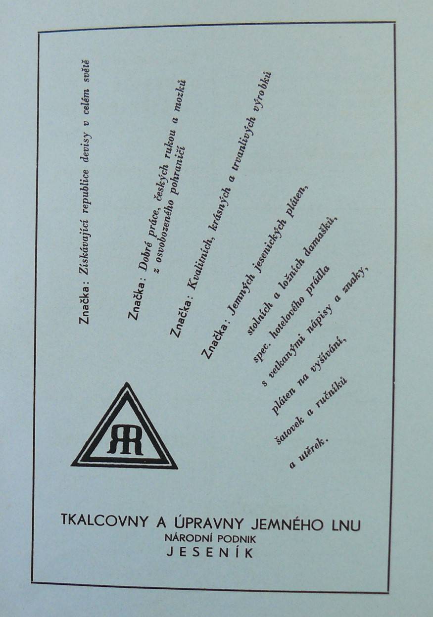 Díl padesátý: Základní odborná škola čs. textilního průmyslu v Jeseníku (část druhá)Publikováno 22. prosince 2020 V září 1946 se sice podařilo ZOŠ uvést do provozu, první školní rok se ale nesl ve znamení četných improvizací. V praktické výuce nebyl pro studenty po celý školní rok k dispozici výukový sál, takže výuka probíhala naostro přímo ve výrobě. Určitou kuriozitou byl fakt, že o zabezpečení praktické výuky studentů se starala členka Poslanecké sněmovny Národního shromáždění ČSR v letech 1929–1935 za KSČ Marie Čižinská, která prožila válku v německých koncentračních táborech a po osvobození Československa ji komunistická strana vyslala na Jesenicko. Jako bývalá textilačka nastoupila do Tkalcoven a úpraven jemného lnu v Jeseníku a studenti ZOŠ se s ní v prvních letech existence školy setkávali jako s tkadlenou při praktické výuce. V roli učitele působil na ZOŠ mladičký Miroslav Mikulecký, jehož revoluční elektromagnetický žakárový tkalcovský stav byl později vystavován na Světové výstavě EXPO 1958 v Bruselu. Přestože jeho vynález nebyl zařazen do sériové výroby, předběhl svou dobu a stal se předchůdcem dnešních počítači řízených tkalcovských stavů. Jesenická ZOŠ v sobě měla prvky, které s úspěchem aplikoval ve svých učňovských zařízeních Tomáš Baťa, a o život studentů bylo postaráno i době, kdy zrovna neměli školu nebo praktickou výuku. Bylo to způsobeno i tím, že v Jeseníku prožili značnou část roku a domů za rodiči odjížděli jen sporadicky. Volným dnem týdne byla tehdy jen neděle a při poválečných komunikačních možnostech byla pro studenty cesta domů příliš komplikovaná. Řada z nich také pocházela z nemajetných rodin a časté cestování by příliš zatěžovalo rodinné rozpočty. Domů tak studenti jezdili jen na Vánoce, Velikonoce a na prázdniny. Ty jim však začínaly až na začátku srpna, kdy v podniku probíhala celozávodní dovolená. V domovech mládeže zároveň v roli vychovatelů působila část mladých a svobodných učitelů a učitelek ZOŠ. Ti, věkem nepříliš vzdáleni studentům, byli provázáni se školou prakticky 24 hodin denně. Na druhé straně pozitivem tohoto stálého kontaktu studentů se svými jen o pár let staršími vyučujícími bylo navázání vzájemných úzkých vztahů a velkých přátelství. První vlaštovkou mezi zájmovými činnostmi studentů byl sport, postupně se přidávaly další obory. Pozoruhodnou činností se mohl pochlubit školní dramatický soubor. Jeho členové, kteří mimo jiné nastudovali např. Lucernu, Broučky nebo Kutnohorské havíře, vystupovali před jesenickými diváky v Hedvičině sále, zajížděli však i do dalších míst regionu a s představením Kuthorští havíři se zúčastnili celostátní přehlídky studentských divadelních souborů v Praze. Členem souboru byl také Zdeněk Jágr, který se později stal hercem a režisérem Slezského divadla v Opavě. Pospolitost studentské komunity posilovaly i uniformy, které podnik nechal ušít v průběhu školního roku. Chlapci a dívky v nich chodili nejen na vyučování nebo po městě, ale vyráželi v nich i na výlety po okolí, a reprezentovali tak jesenickou ZOŠ. Studentská skupina Svazu československé mládeže na ZOŠ vydávala i vlastní časopis „Atom z textilu“. Zatímco v bývalém klášteře voršilek panovaly poměrně volné poměry, situace na chlapeckém internátě byla poněkud odlišná. Hlavním vychovatelem zde byl Miroslav Janota, bývalý voják československého zahraničního vojska, které se vytvořilo v průběhu 2. světové války ve Velké Británii. Režim na internátě měl tím pádem vojenské rysy. Studenti drželi služby, sami si udržovali na internátě pořádek a každý večer byl nástup k rozkazu na chodbě spojený s rozdáváním korespondence. Také zde samozřejmě měli studenti možnost navštěvovat některý ze zájmových útvarů nebo si vyrazit do kina, či na koupaliště. Ne všichni se ale dokázali s novými povinnostmi a prostředím vyrovnat, plnými doušky toužili užívat svobodu, kterou jim život bez dohledu rodičů nabízel, a někteří proto museli po 1. ročníku z kázeňských důvodů školu opustit. Součástí tehdejšího života studentů ZOŠ a jejich vyučujících byly také dobrovolné brigády. Většina těch, kteří se do nich zapojili, je však v atmosféře všeobecného poválečného nadšení považovala spíše za příjemné vytržení z běžného školního života než za nějaké nutné zlo. Studenti ZOŠ tak například pomáhali vytrhávat a sklízet len, vysazovat stromky v lese nebo se aktivně podíleli na stavebních opravách jesenického náměstí. Z celkového počtu 163 studentů, kteří v září 1946 nastoupili do školy, jich dokončilo první ročník 145. Do druhého ročníku jich však v září 1947 nastoupilo jen 115. Z chybějící třicítky jich část přešla na státní odborné a průmyslové školy nebo jinou ZOŠ v blízkosti svého bydliště. Někteří si zvolili jiné povolání a část odešla z kázeňských důvodů. Jestliže první ročník počtem studentů dokonale charakterizoval hlad po kvalifikovaných pracovních silách v textilním průmyslu, který vyvstal v pohraničí po odsunu německého obyvatelstva, pak v září 1947 bylo do nově otevíraného prvního ročníku přijato jen 36 studentů – 12 dívek a 22 chlapců. Drtivá většina z nich už pocházela přímo z Jesenicka a jeho nejbližšího okolí. Do života školy daleko vzdálené od centra politického dění naštěstí nijak nezasáhly dopady převzetí moci komunistickou stranou v únoru 1948 a nikdo z pedagogů ani studentů nebyl negativně postižen nově vytvořeným závodním akčním výborem Národní fro