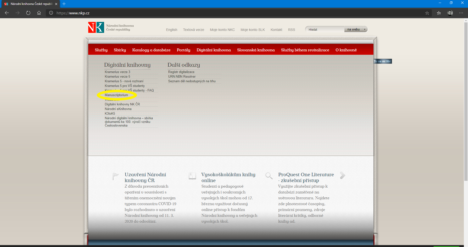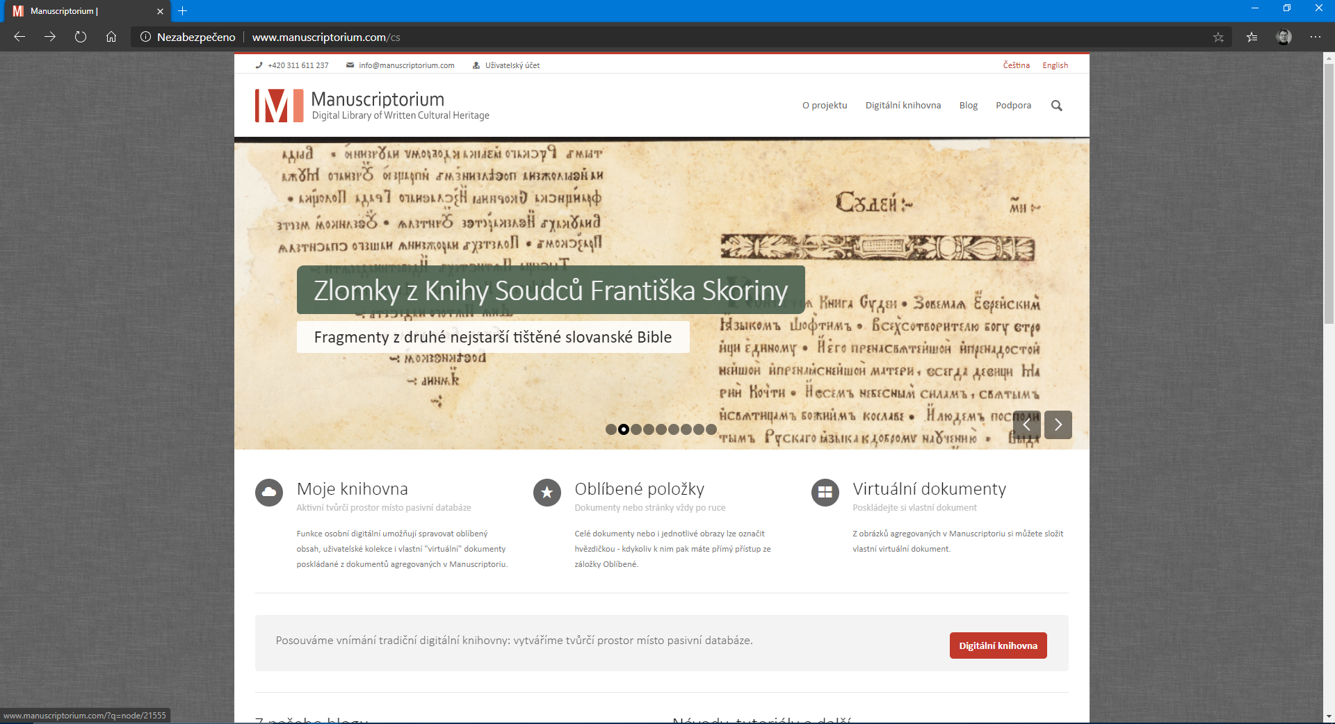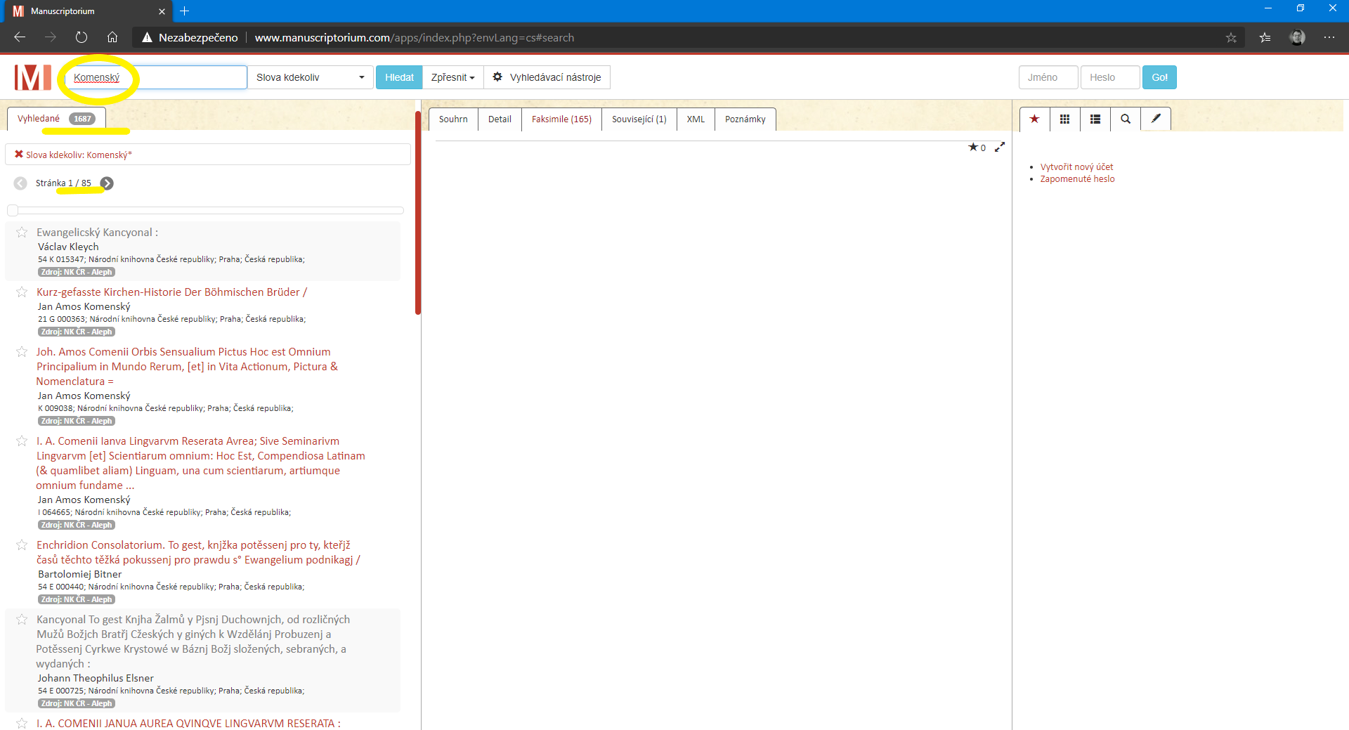 Díl devátý: Nebojme se hledat v digitalizovaných tiscích IIPublikováno 31. března 2020 Již od dob vzniku moderních muzeí (18. století) probíhá spor kurátorů, kteří se snaží jak o ochranu, tak také o maximální zpřístupnění sbírek. Sladit oba požadavky bývá komplikované. Výjimečné případy, kdy se sbírkový předmět ztratí, ukradne či poničí, dávají za pravdu těm, kteří se mnohdy úzkostlivě bojí o své poklady. Staré tisky ale možnost digitalizace nabízejí, čímž je výzkum umožněn takříkajíc komukoliv. Manuscriptorium je volně dostupná digitální knihovna, jež soustředí historické fondy zahrnující řadu institucí nejen v EU. Najdeme zde vzácné rukopisy, tisky, mapy. Smyslem projektu není jen shromažďovat, ale též nabízet kontext doby, jenž může zaujmout učitele, historiky, ale i zvídavé laiky. Přístup do webové aplikace vede buď zadáním pojmu „Manuscriptorium“ do vyhledávače, případně obdobně jako u Krameria přes stránky Národní knihovny v Praze/Digitální knihovna, kde zvolíme položku Manuscriptorium (obr. 1). Přivítá nás úvodní stránka (obr. 2). Můžeme si založit i vlastní bezplatný účet, který nabízí další bonusy a možnosti využití (např. založení osobní virtuální knihovny, vlastní poznámky atd.). V nižší části stránky jsou pak aktuality (uvedeno jako Z našeho blogu), bližší návody atd. (obr. 3) Tlačítkem Digitální knihovna, ať už na horní liště nebo níže položeným tlačítkem, vstoupíme přímo do databáze knihovny (obr. 4). Prostá stránka nabízí zejména vyhledávání (obr. 5) dle zvolených filtrů. Příkladem pro dnešní lekci bude práce jednoho z největších myslitelů našich dějin, J. A. Komenského, jehož dílo je (přestože se zachovalo jen torzo) dosud neuvěřitelnou studnicí vědomostí. Při zadání slova „Komenský“ do vyhledávání nám databáze nabídne 1 687 nálezů (!) včetně nejznámějších děl (obr. 6), avšak v případě specifikace dotazu je vyhledávání již lépe využitelné (obr. 7). V našem případě jsme „vypátrali” opis České didaktiky pocházející z doby kolem roku 1630 s Komenského vlastnoručními úpravami a poznámkami, jehož originál se nachází v Národním muzeu v Praze (obr. 8). Manuscriptorium nabízí několik nástrojů, bohužel na rozdíl od Krameria zde není možnost přepisu ani překladu (obr. 9). Pavel Žurek |
