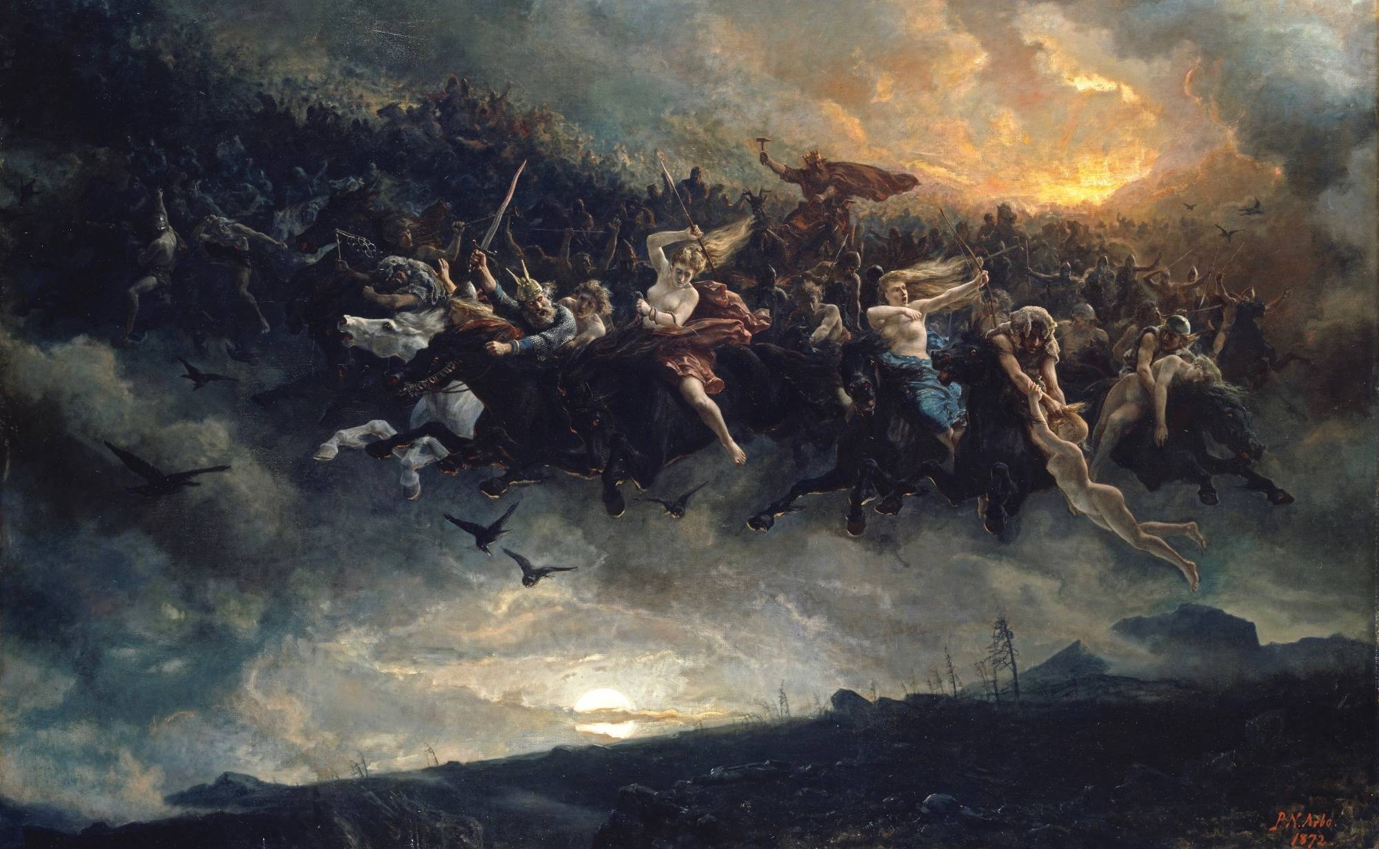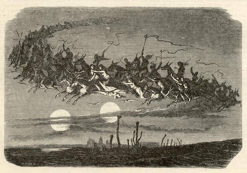 Díl třetí: Z původní jesenické mytologie. Děsivý přízrak Nočního lovcePublikováno 16. října 2020 Je klidný prosincový podvečer a po namrzlé lesní cestě mířící z Petrovic do Osoblahy kráčí muž. Již se vidí u teplých kamen, když tu najednou z dáli zaslechne blížící se rachot. Otočí se a vzhlédne ke vzdálenému horizontu. V tu chvíli by se v něm krve nedořezal – z černých mračen se za nelidského rachotu přímo k němu řítí Noční jezdec se svou družinou zatracených… Jen málokterá postava dokázala v původních obyvatelích jesenických podhůří vyvolat takovou hrůzu jako právě Nachtjäger, ústřední figura tzv. Divoké honby (Wilde Jagd), objevující se nejčastěji okolo zimního slunovratu. Tehdy se dle lidové slovesnosti z ničeho nic na nebi zjevuje nesmírný zástup ďábelských tvorů, od vlkodlaků, duchů až po démony – jednalo se v podstatě o jakousi kumulaci všeho zla. Té velel Noční lovec, jenž do řevu nelidských bytostí a dusotu kopyt pekelných koní práskal bičem a démonicky se smál. Jako nejúčinnější ochranu proti běsnící družině neživých příšer radili naši předkové padnout rychle tváří na zem a mlčet – v žádném případě se na průvod nesmí volat nebo nedej bože napodobovat zvuky. Pokud tak člověk učiní, lov se prudce zastaví a k nešťastníkovi sestoupí samotný Noční lovec, který mu podá kus krvavého masa. Existuje řada verzí toho, co se děje následně. Nebožák, jenž maso přijme, je vzápětí lovcem roztrhán, jindy se zase stane jedním z přízraků honby. V sudetských horách dokonce existuje verze, v níž na sebe muž přijetím masa sešle doživotní mrtvolný zápach. V jesenických podhůřích se zase věřilo, že pokud člověka nahání divoký lovec, najde azyl na dřevěném kmeni stromu, do kterého dřevorubec při kácení vytesal tři kříže. Bezpečným přístavem se, jak zaznamenal Anton Peter, může stát rovněž lněné pole, v němž roste šklebivec přímý (slezským nářečím Dorant). Kořeny tohoto nadmíru děsivého výjevu nelze hledat nikde jinde než v germánské mytologii. „Legendy odkazující na Divokého lovce se nepochybně řadí mezi nejstarší ságy germánského pohanství,“ uvádí významný sběratel jesenických pověstí Gustav Mikusch. Postava Nočního lovce skutečně vykazuje de facto totožné znaky jako starogermánský bůh Wotan (skandinávský Odin), jenž se svou smečkou vlkodlačích psů a padlých bojovníků einherjů jezdil okolím – společně hledali nepohřbené mrtvé, aby je odvedli do podsvětí. Na germánský původ odkazuje i skutečnost, že v řadě regionů byla kůže na tváři přízraku připodobňována ke kůře dubu (národního stromu Germánů), místo vousů měl pak lovec dubové větve. Řada vědců se ale domnívá, že za prapůvodem motivu se musíme vypravit mnohem hlouběji do minulosti. „Přirozený základ víry v Divoký lov je rozhodně starší než germánská víra ve Wotana. Pochází ze strašlivých zážitků přírodního pravěkého člověka, jehož v pochmurném hvozdu zastihl kvílící vítr a bouře zuřící tak, že stromy s lomozem padaly k zemi. (…) Představa Wotanova válečného tažení vznikla až později,“ domníval se sudetoněmecký etnograf a profesor Univerzity Karlovy Gustav Jungbauer. V každém případě pronikl tento děsivý motiv z temné germánské mytologie do prostředí románského i slovanského a v lidové slovesnosti, především periferních oblastí, silně rezonoval ještě na počátku 20. století (v Čechách více než na Moravě, přesto ho v hojné míře najdeme např. na Šternbersku či Osoblažsku). Spisovatel J. V. Grohmann uvádí, že lidé do Divoké honby ještě v 19. století situovali rovněž padlé vojáky pruského krále Friedricha Velikého. Motiv nezanikl ani s příchodem moderní doby a hojně jej využívá i současná populární kultura. Zřejmě nejznámějším příkladem je scéna z Tolkienova Návratu krále, v níž se Aragorn s přáteli vydává do horského průsmyku na Stezky mrtvých, kde vyzve duchy vojáků k pomoci proti Sauronovi, aby tak odčinili svoji zbabělost nastoupit za života do bitvy a zbavili se prokletí, jež za to následovalo. Matěj Matela |