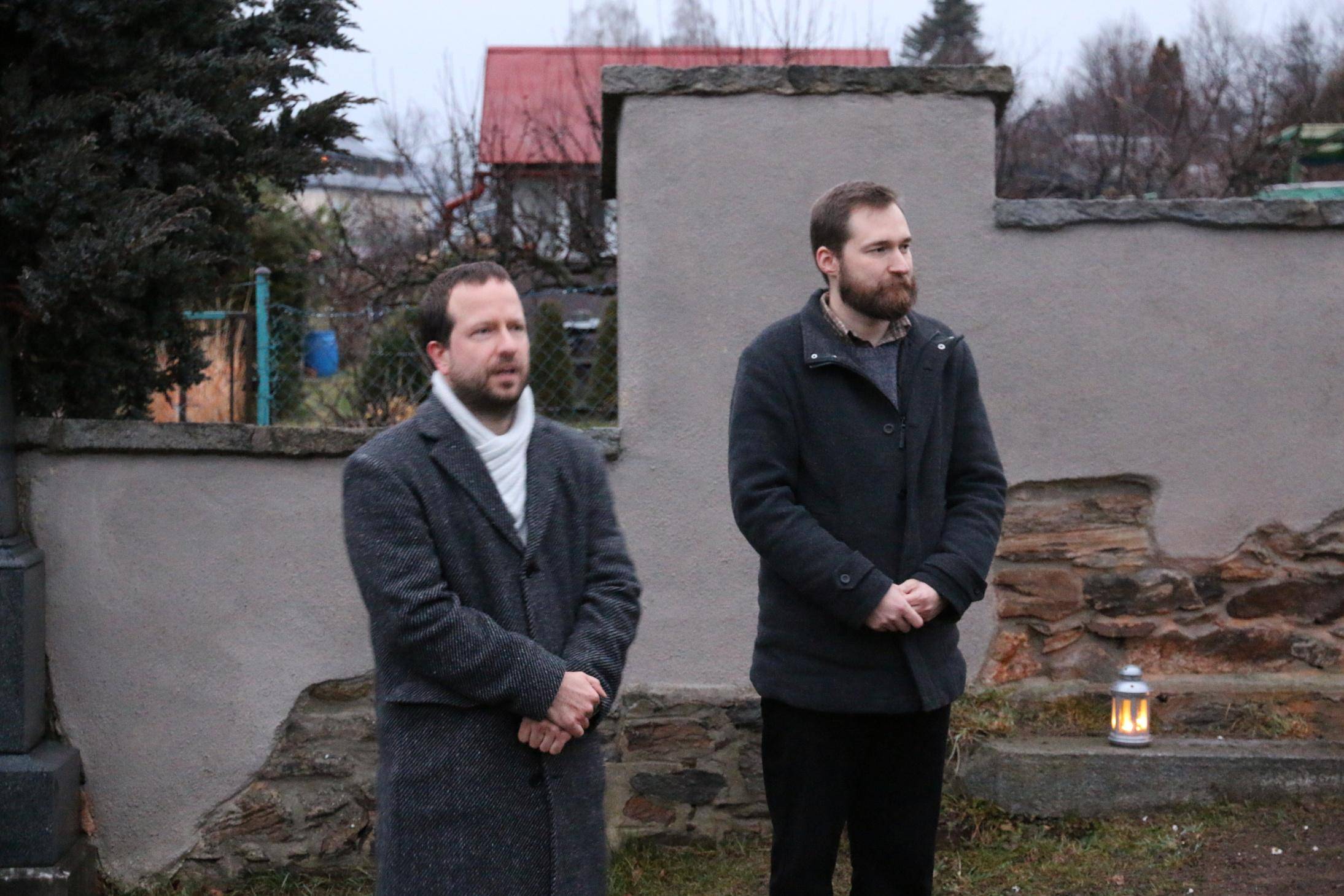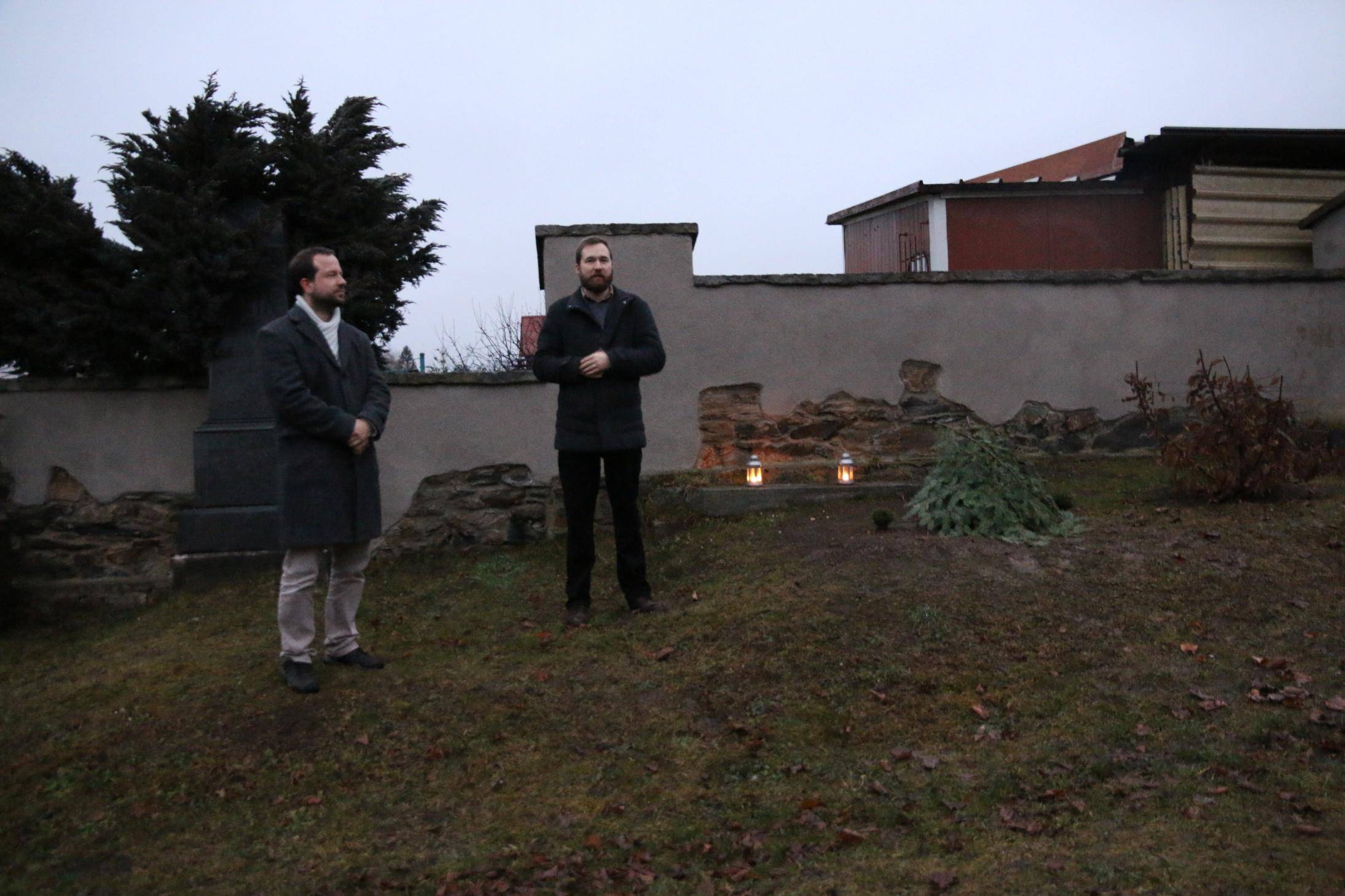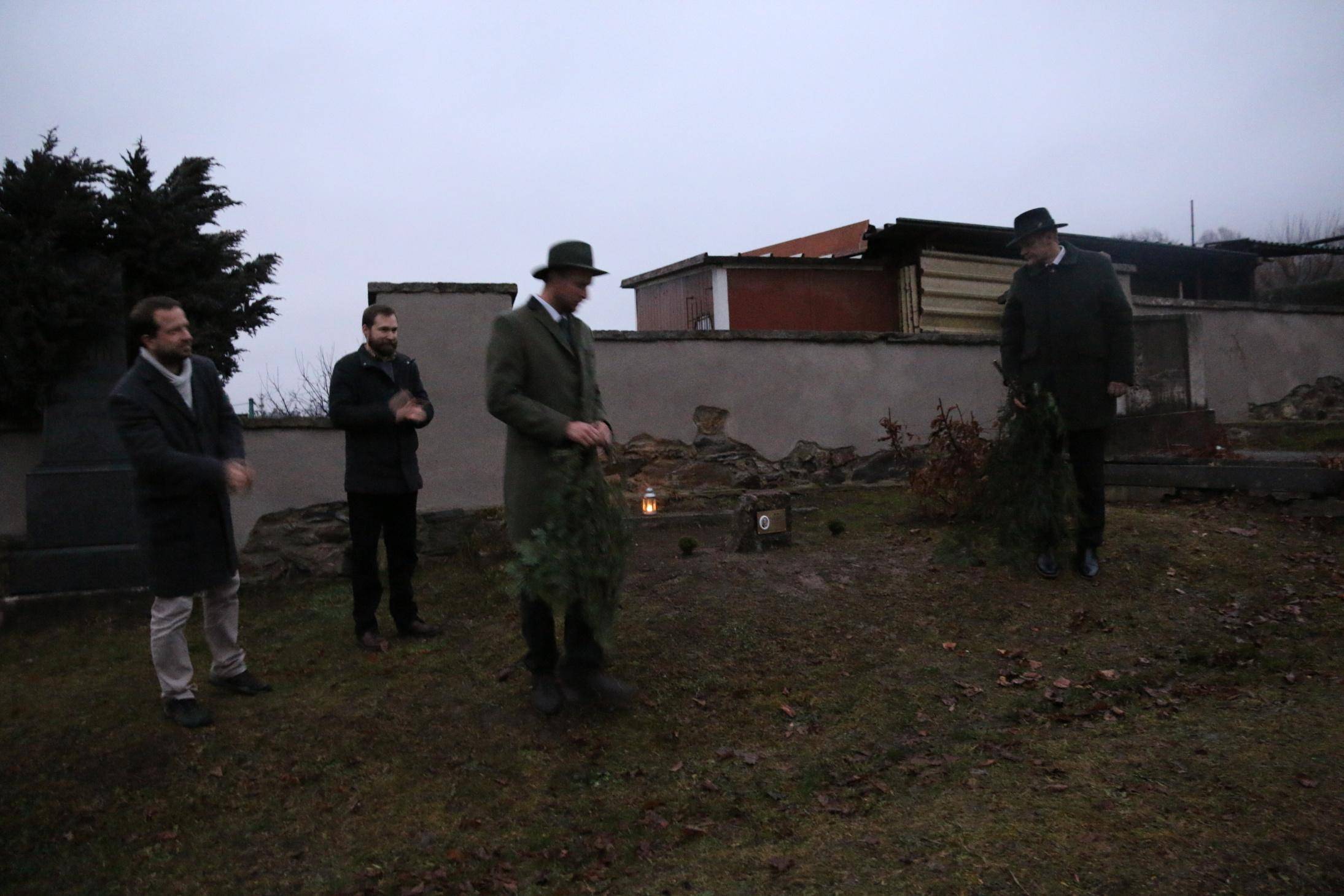 Pomník vrchnímu lesmistru Micklitzovi slavnostně odhalen17.12.2021 „Činnost tohoto muže, jenž je znám daleko za hranicemi našich zemí, se v krásném Slezsku stala mezníkem ve vývoji lesnictví,“ prohlásil v dubnu 1885 předseda Moravsko-slezského lesnického spolku hrabě Serényi nad rakví zesnulého vrchního biskupského lesmistra Julia Micklitze. Tohoto velkého muže jesenického lesnictví připomíná od 16. prosince 2021, kdy uběhlo přesně 200 let od jeho narození, kamenný pomník na místním hřbitově. O dráze lesníka snil Julius Micklitz již v dětství, které prožil ve Slezských Pavlovicích. Jeho sen mu byl umožněn. Po praxi na panství Řádu německých rytířů v Hrabyni studoval na lesnické akademii v Mariabrunn a roku 1846, v pouhých pětadvaceti letech, se stal nadlesním v Karlově Studánce. Díky jeho mimořádným schopnostem a energickému vedení doznaly zdejší lesy nebývalého rozvoje, vedle toho se stihl zapojit do celé řady aktivit a napsat zásadní dílo o vegetačních podmínkách v lesích Hrubého Jeseníku. Když roku 1861 přijal místo vrchního lesmistra vratislavského biskupství a s rodinou přesídlil do Jeseníku, dostalo se mu ještě o něco větší míry nezávislosti. Biskupství záhy seznalo, že do tohoto úřadu nemohlo dosadit povolanějšího člověka – jen čistý příjem z lesních ploch vratislavské diecéze vystoupal za dvě desetiletí Micklitzova působení na téměř dvojnásobek. Vedle neuvěřitelného pracovního nasazení a znalostí byl však rovněž ctěn pro svou upřímnou a dobrosrdečnou povahu i nadčasově demokratický přístup k zaměstnancům. Zemřel 3. dubna 1885 v náručí své milované manželky Klotildy. S iniciativou připomenout 200. výročí Micklitzova narození pomníkem na místě jeho posledního odpočinku přišel odborný pracovník jesenického muzea Matěj Matela, který se dlouhodobě zabývá výzkumem dějin místního předválečného lesnictví. Po schválení tohoto návrhu byl na západním svahu Zlatého chlumu za účasti revírníka státního podniku Lesy ČR Tomáše Baiera vybrán kámen, který pracovníci VMJ pod vedením technika Miroslava Osmančíka zabetonovali počátkem listopadu na příslušné hrobové místo. Pamětní desku pak graficky navrhla a nechala vytvořit Markéta Kobierská, která rovněž upravila okolí pomníku. Slavnostní akt 16. prosince v 16.00 hod., na němž se sešly zhruba dvě desítky účastníků, zahájili jeseničtí trubači. Po nich si vzal slovo ředitel VMJ Pavel Rušar, který mimo jiné připomněl, že projekty tohoto typu patří neodmyslitelně k muzejnické činnosti. Poté předal slovo Matěji Matelovi, jenž přítomným představil život, dílo a odkaz Julia Micklitze. Následně již k místu přistoupil zástupce státního podniku Lesy ČR Filip Beneš a zástupce Arcibiskupských lesů a statků, s. r. o., Jan Ťulpík, kteří z kamene společně odejmuli jedlové chvojí, a pomník tak za potlesku účastníků slavnostně odhalili. Po přípitku slivovicí a přátelských rozhovorech se účastníci, již za tmy, pozvolna rozešli. Děkujeme tímto našim dvěma partnerům, Lesům ČR a Arcibiskupským lesům, za pomoc při realizaci tohoto projektu, který – jak věříme – přispěje k větší známosti jména Micklitz v řadách místní veřejnosti. O jeho osobě si budete moci obšírně přečíst v připravovaném sborníku Jesenicko 2022. | |