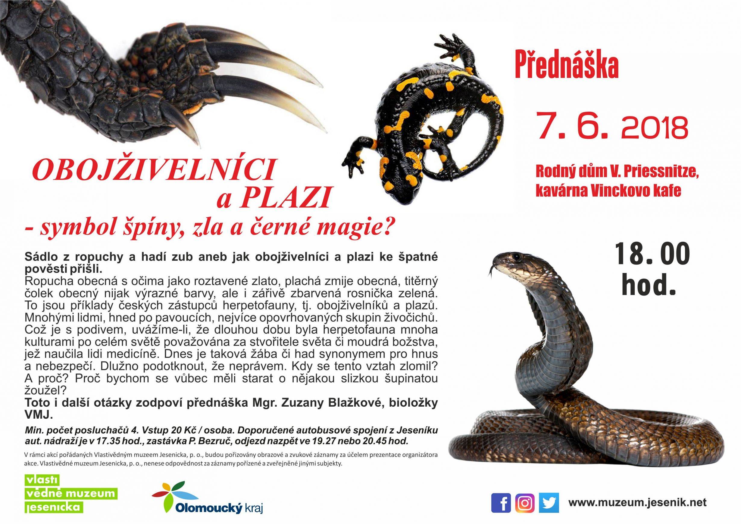 Obojživelníci a plazi – symboly špíny, zla a černé magie (přednáška)07.06.2018 7. června 2018, Rodný dům Vincenze Priessnitze, kavárna Vinckovo kafe, přednášela Mgr. Zuzana Blažková Fotografie