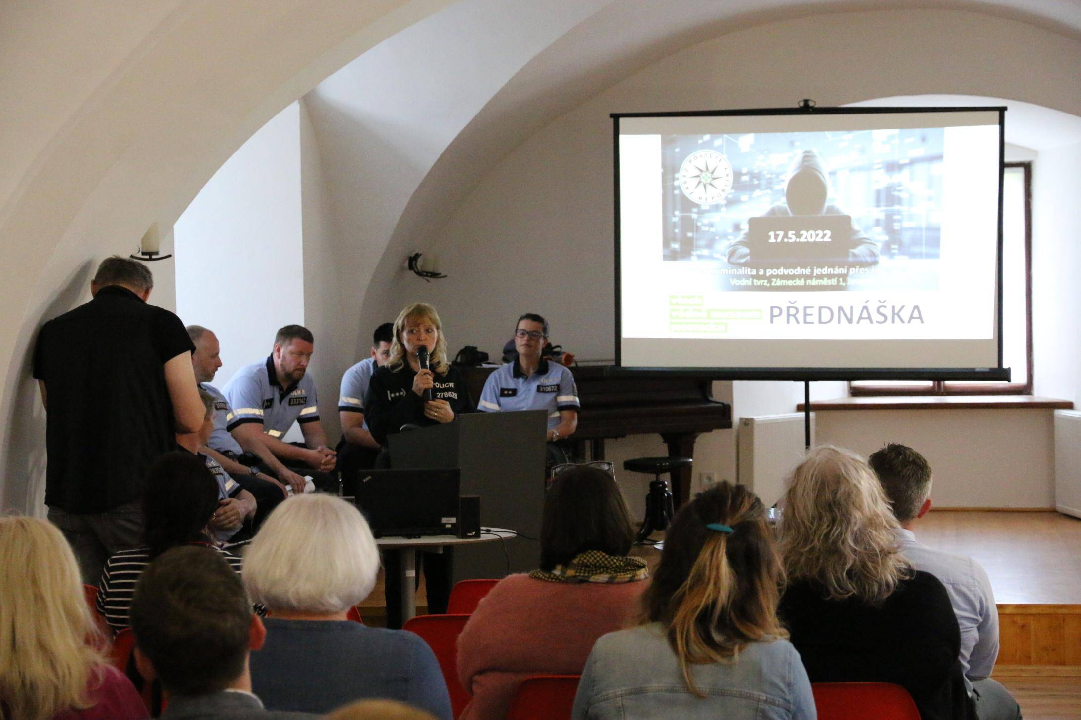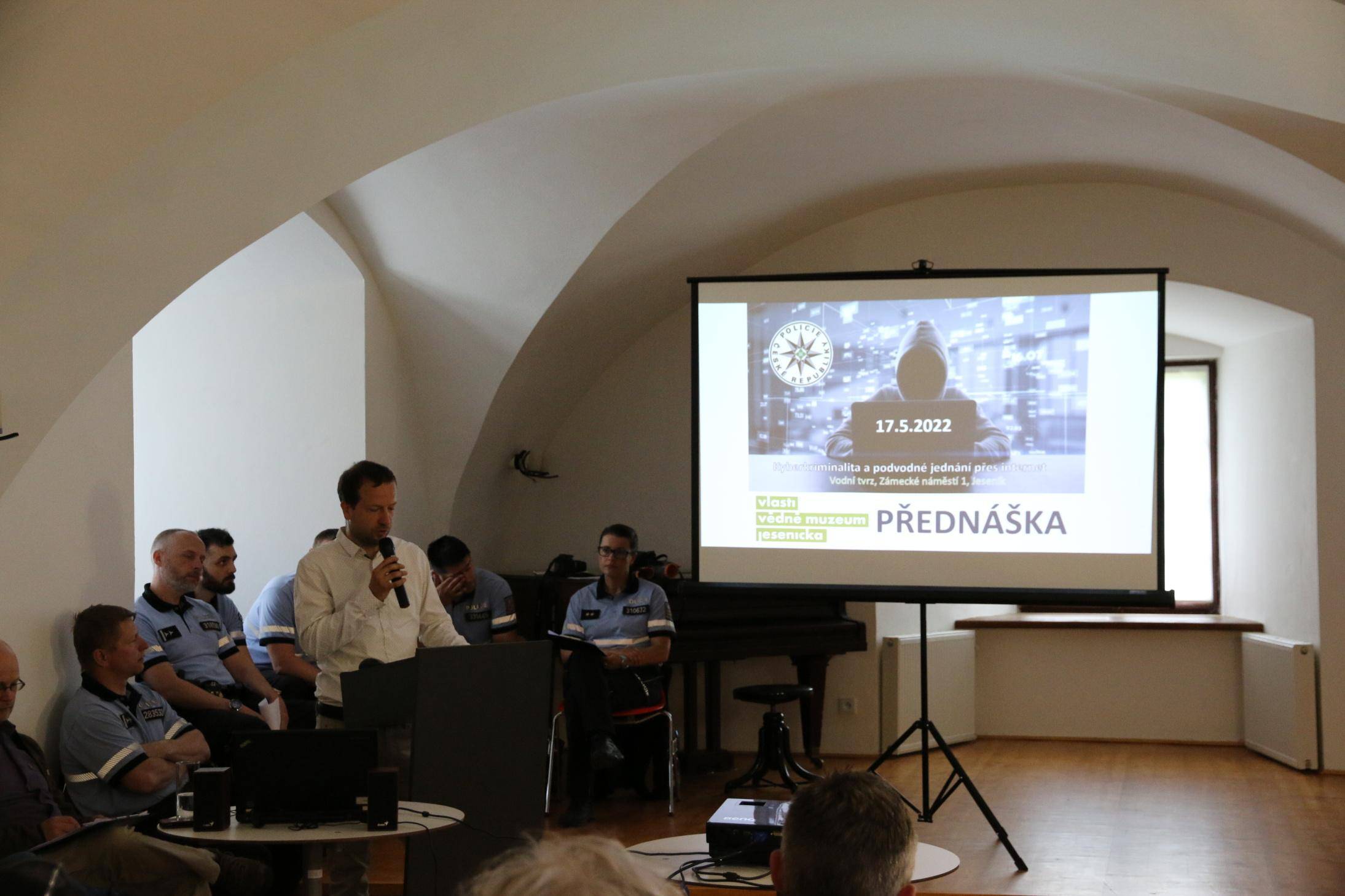 Kyberkriminalita a podvodné jednání přes internet17.05.2022 V úterý 17. května proběhla ve Vodní tvrzi přednáška na téma „Kyberkriminalita a podvodné jednání přes internet“. Přednášku si pro veřejnost připravili policisté z územního odboru Jeseník, kteří se právě touto trestnou činností zabývají. Protože pohyb v online světě se stal součástí našich běžných životů, je toto téma velmi aktuální. Pachatelé, kteří se orientují na kybekriminalitu a podvody přes internet, jsou stále sofistikovanější a své metody stále zdokonalují. Dříve se oběťmi stávali starší lidé, kteří neholdovali novým technologiím. V současnosti se ale věková hranice snížila a poškozenými se stále častěji stávají i nepříliš ostražití mladí lidé. Jedinou obranou před touto kriminalitou je pak osvěta a prevence. A právě na tu cílila úterní přednáška. Účastníky varovala před různými způsoby kyber útoků a podvodů, na které mohou na internetu narazit. Spolupráce na přednášce byla iniciována ze strany Vlastivědného muzea Jesenicka. Akce se zúčastnilo ve dvou termínech celkem 57 osob. | |
