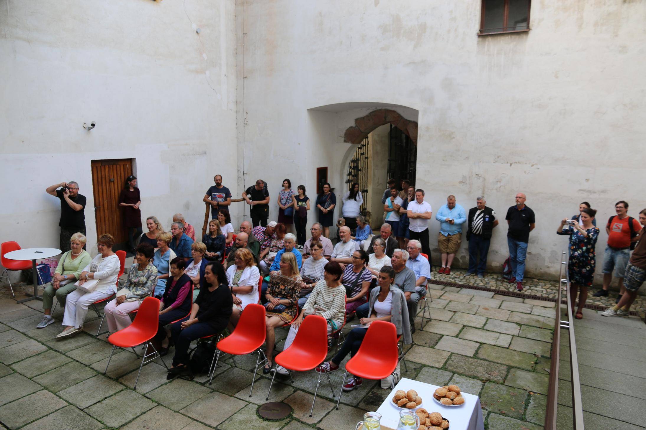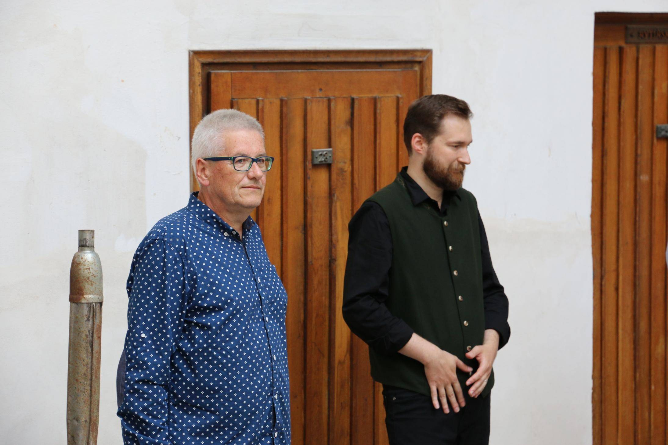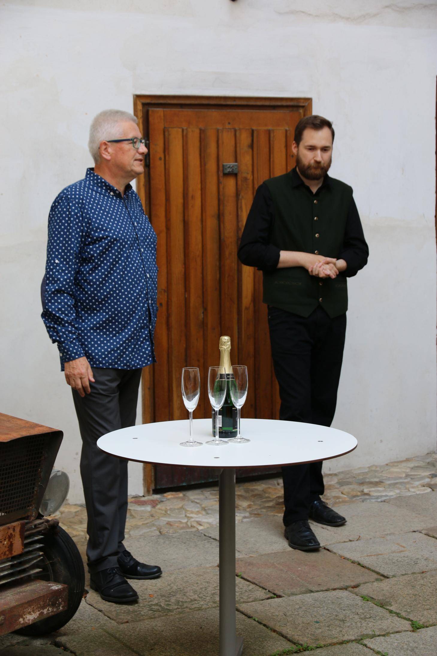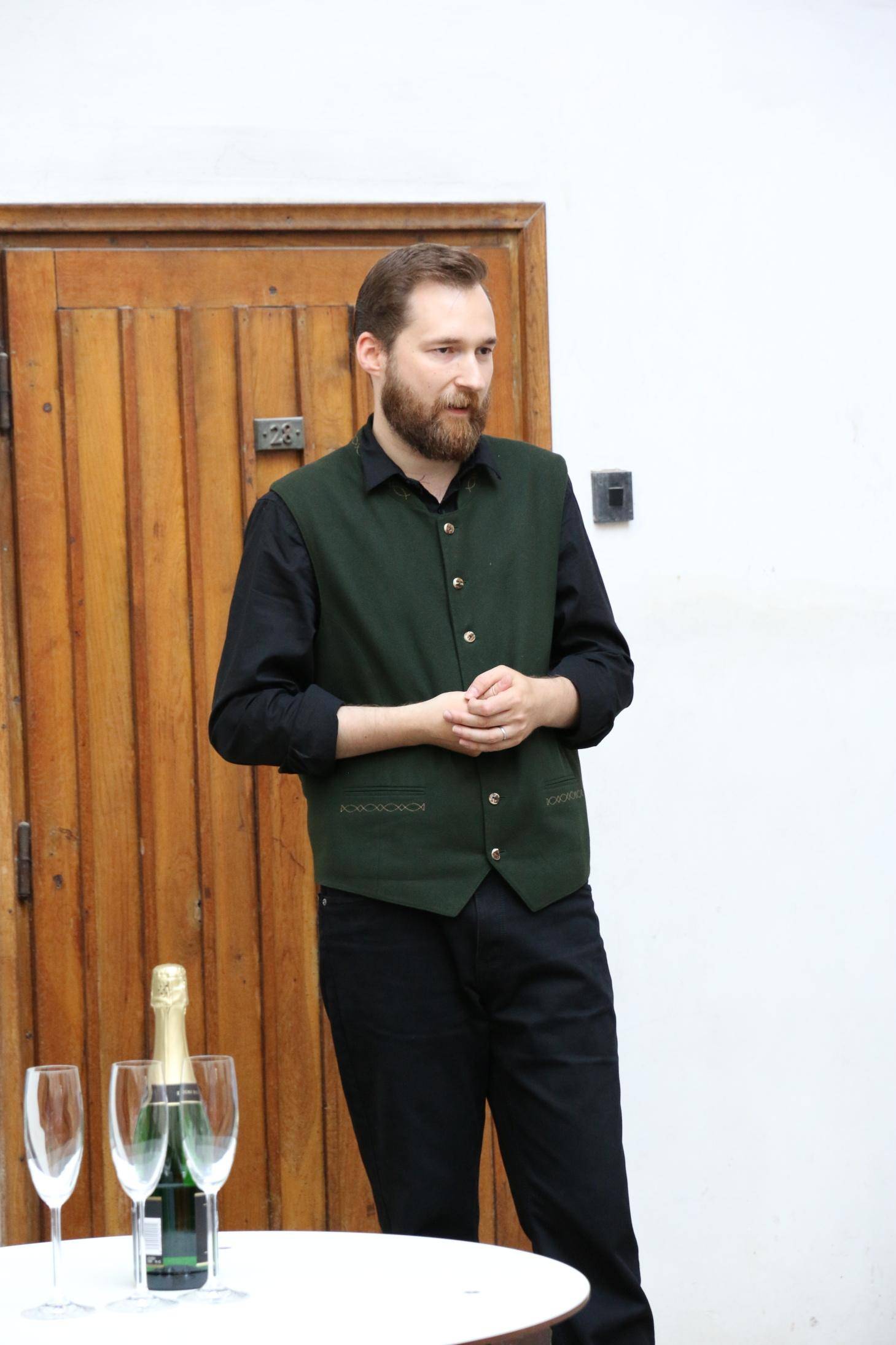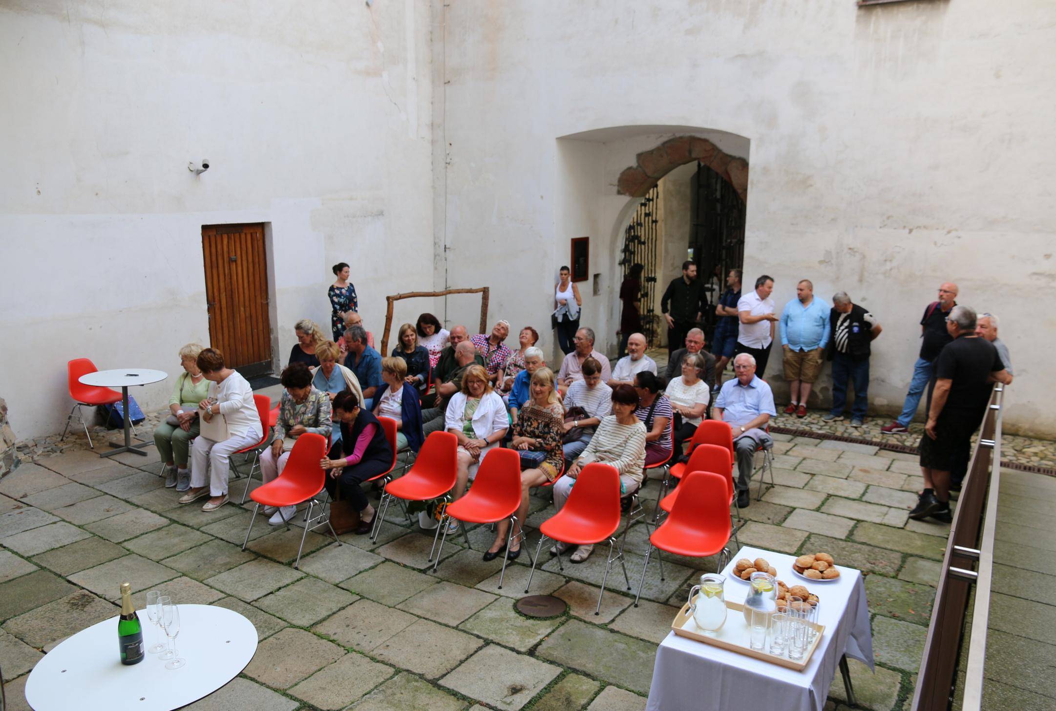 Kniha Zvoník z Cukmantlu slavnostně pokřtěna29.06.2022 V podvečerních hodinách 28. června proběhl za hojné účasti veřejnosti na nádvoří Vodní tvrze křest nejnovější publikace Vlastivědného muzea Jesenicka, pojednávající o dvou desítkách pozoruhodných životních osudů spjatých s Jeseníky. Slavnostní akt zahájil ředitel VMJ Pavel Rušar přivítáním účastníků a reflexí vlastních pocitů z četby knížky. Následně předal slovo autorovi knihy, odbornému pracovníku muzea Matěji Matelovi, jenž se krátce podělil o svůj vztah k předválečným časům a k lidem, které do knihy zařadil, tedy věhlasným osobnostem i svérázným pábitelům. Poté poděkoval těm, kteří mu se vznikem díla nejvíce pomohli, a závěrečné slovo ponechal kmotrovi publikace. Tím se stal Květoslav Growka, někdejší archivář a výrazná postava jesenické vlastivědy, který při svém povídání vzpomněl na počátky znovuobjevování historie tohoto kraje v 90. letech a vyzdvihl, že se vlastivědná práce nástupem nové generace badatelů začíná stále více oprošťovat od resentimentů minulosti. Protože pětinu knihy tvoří vyprávění o starých hajných, rozhodl se kmotr pokřtít ji originálním způsobem – posypal ji smrkovým větvičkami, z nichž jednu vetkl autorovi do zelené lesnické vesty. Šampaňské samozřejmě nechybělo, avšak namísto obálky zchladilo hrdla tří zmíněných řečníků. Knihu si zájemci následně mohli zakoupit a u vedlejšího stolku nechat autorem podepsat. V současné době je titul k dostání ve: