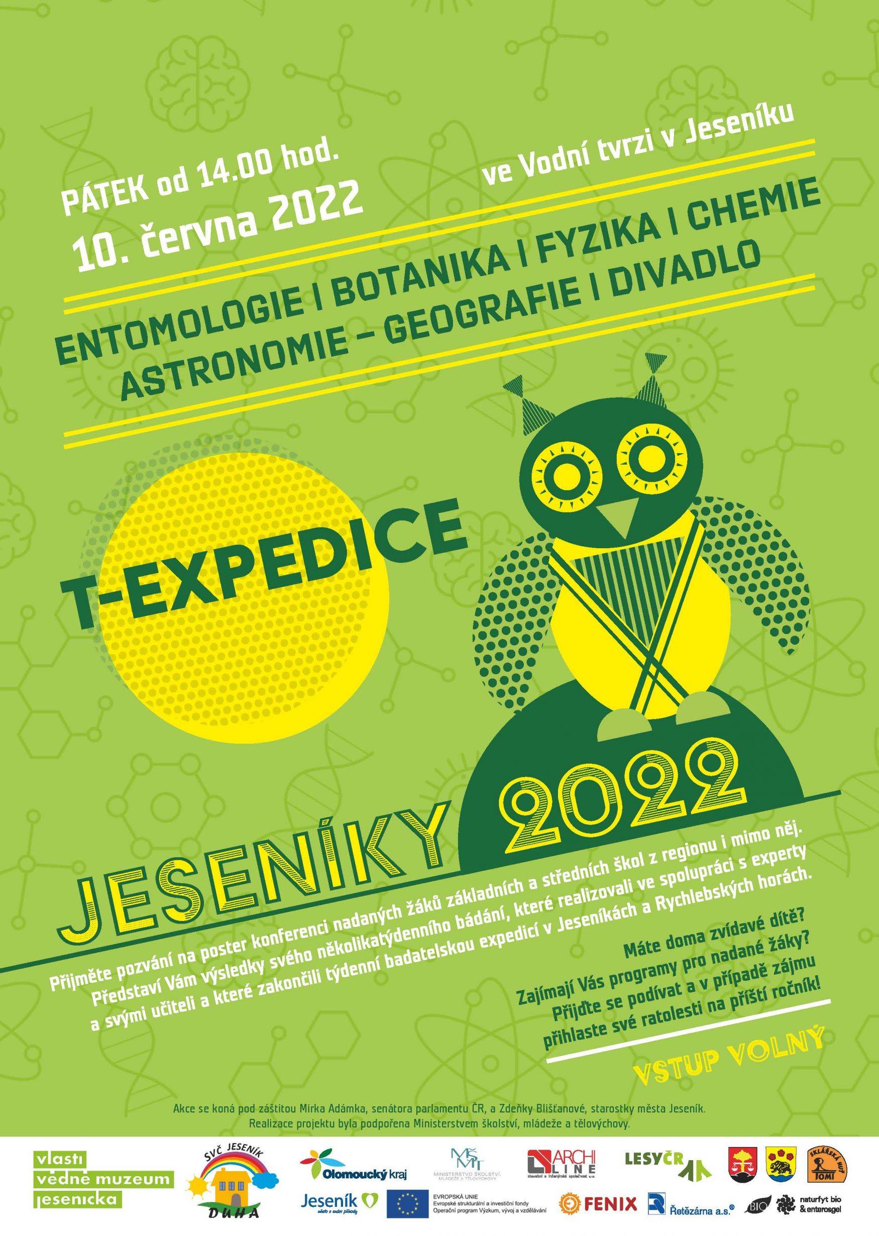 Čtvrtá jesenická T-expedice11.07.2022 Ve dnech 4.–11. června 2022 proběhl další ročník jesenické T-expedice. Tuto badatelskou a vzdělávací akci letos pořádalo Vlastivědné muzeum Jesenicka se Střediskem volného času DUHA Jeseník za podpory Ministerstva školství, mládeže a tělovýchovy, Olomouckého kraje a Města Jeseník. Partnery byly společnost Naturfyt Bio, Střední průmyslová škola Jeseník, Gymnázium Jeseník, Základní škola Jeseník a Základní škola Česká Ves. Přes třicet žáků se podle svých zájmů rozdělilo do šesti sekcí, ve kterých se věnovali vědeckému výzkumu, v případě divadelní sekce pak přípravě divadelního vystoupení. Badatelé v chemické sekci připravovali kosmetické výrobky, mýdla, krémy na ruce či tělová mléka. Následně navrhovali a prováděli pokusy pro testování jejich stability. Výrobky vystavovali změnám teplot a pomocí mechanického namáhání v centrifuze posuzovali jejich viskozitu. Problematikou světelného znečištění noční oblohy se zabývala sekce astronomická. Měření badatelé prováděli jasoměrem na 16 místech na Jesenicka, z nichž nejtemnější se ukázaly zvolené oblasti okolo Nových Vilémovic a Skorošic. Badatele zajímala i kvalita osvícení městských budov v Jeseníku a mezi jejich návrhy bychom nalezli např. úpravu osvětlení muzejní Vodní tvrze. U většiny dalších budov navrhovali mladí vědci osvětlení spíše žlutých odstínů, neboť méně škodí přírodě. Entomologická sekce zkoumala vztahy mezi opylujícím hmyzem a rostlinami, které opylují. V týmu zvolili dvě lokality, (Hraničky v Rychlebských horách a nad lokalitou Karla Čapka ve Zlatochlumském hřbetu), kde pozorovali opylovače na květech. Šlo např. o zástupce pestřenek, motýlů, včel, čmeláků a dalších. Potvrdila se jejich hypotéza, že hmyz s dlouhým ústním ústrojím bude opylovat především hluboké květy, ale jak se ukázalo, na celkové velikosti hmyzu naopak tolik nezáleží a třeba čmelák opyluje často i drobnější květy. Výskyt jedovatých rostlin v ulicích města Jeseník mapovala botanická sekce. Zajímal je tedy výskyt, četnost i toxicita rostlin. Své nálezy zanášeli do mapy a prováděli fotodokumentaci. Celkem zmapovali 58 druhů jedovatých rostlin, z nichž většina patřila k čeledi pryskyřníkovitých. Ze skupiny extrémně toxických rostlin zaznamenali 6 – kýchavici bílou, jalovec, tis červený, náprstník, štědřenec odvislý a čemeřici. Badatelé se budou následně zamýšlet nad rizikovostí určitých míst z hlediska bezpečnosti. Raketoví inženýři navázali na své úspěchy z předchozích ročníků T-expedice a pokračovali ve výrobě vodních raket a pokusech s nimi. Letos se zaměřili na zdokonalování konstrukce rakety, např. přidali druhý stupeň rakety a odhazování měřicí jednotky na samostatném padáku. Sestrojili i elektronickou jednotku se senzorem pro měření kvality ovzduší, kterou ale kvůli nevhodnému počasí nemohli spolehlivě prověřit. Divadelníci se věnovali improvizaci a zároveň individuálnímu rozvoji studentů, jejich mluvenému projevu a komunikačním schopnostem. Své herecké umění na závěr předvedli členové sekce v Divadle Petra Bezruče, kde pro veřejnost sehráli několik improvizovaných scének a také vlastní krátké drama na motivy rychlebských pověstí. Ostatní sekce výsledky své týdenní práce prezentovaly téhož dne na poster konferenci, která se konala na nádvoří Vodní tvrze. Badatelé byli několikrát navštíveni, jejich aktivity pečlivě sledovala starostka města Jeseník Zdeňka Blišťanová i místostarosta Tomáš Vlazlo a svými otázkami potrápil nejednoho badatele také Jan Žůrek, radní Olomouckého kraje pro oblast kultury. Všichni tři se řadí mezi velké podporovatele akce a organizátoři za jejich účast velmi děkují. Organizátoři budou akci připravovat i pro následující rok. Máte-li tedy zvídavé ratolesti ve věku 13 až 18 let, sledujte web Vlastivědného muzea Jesenicka v sekci „vzdělávání“. | |