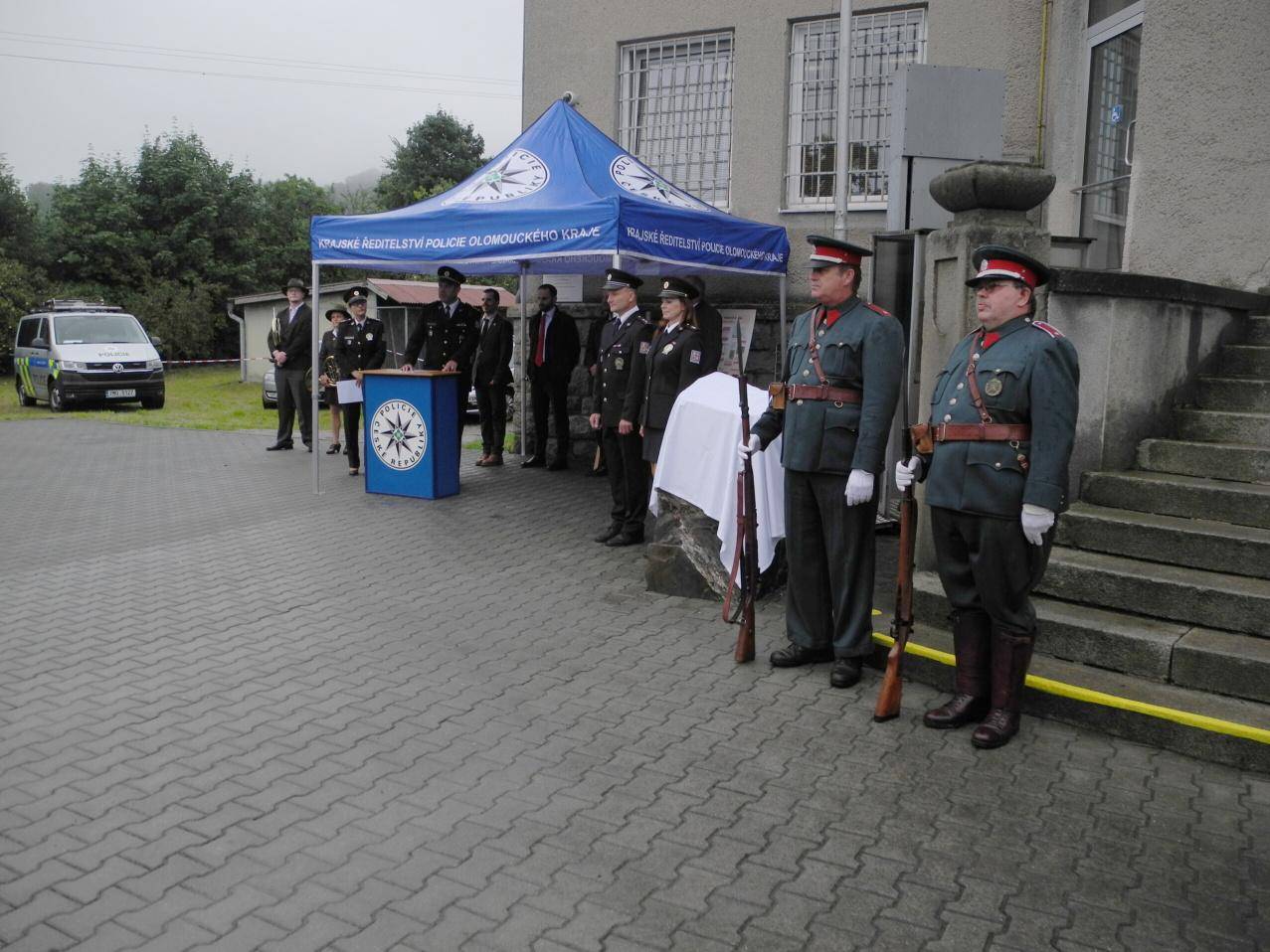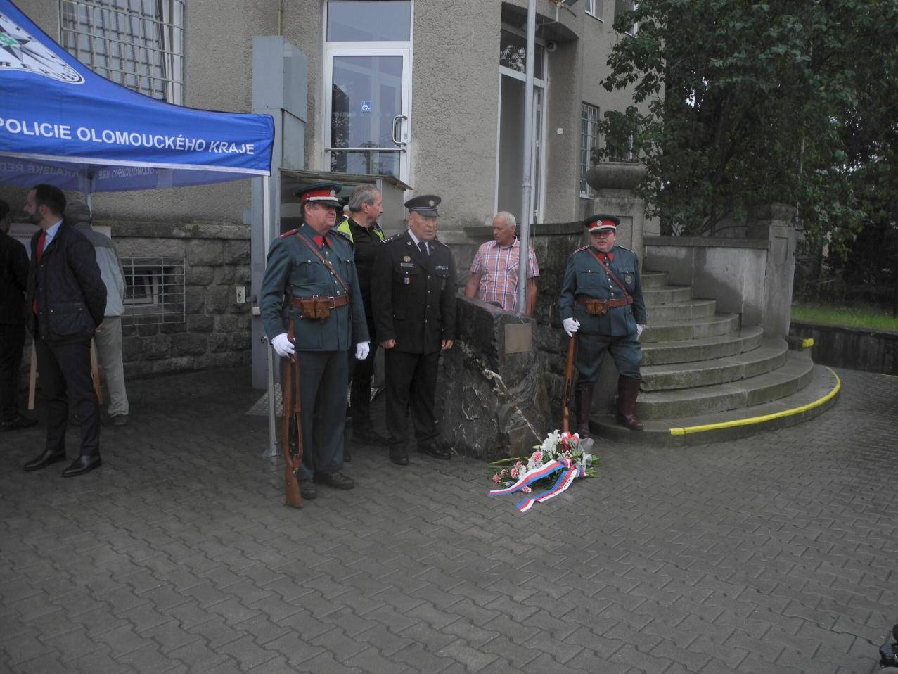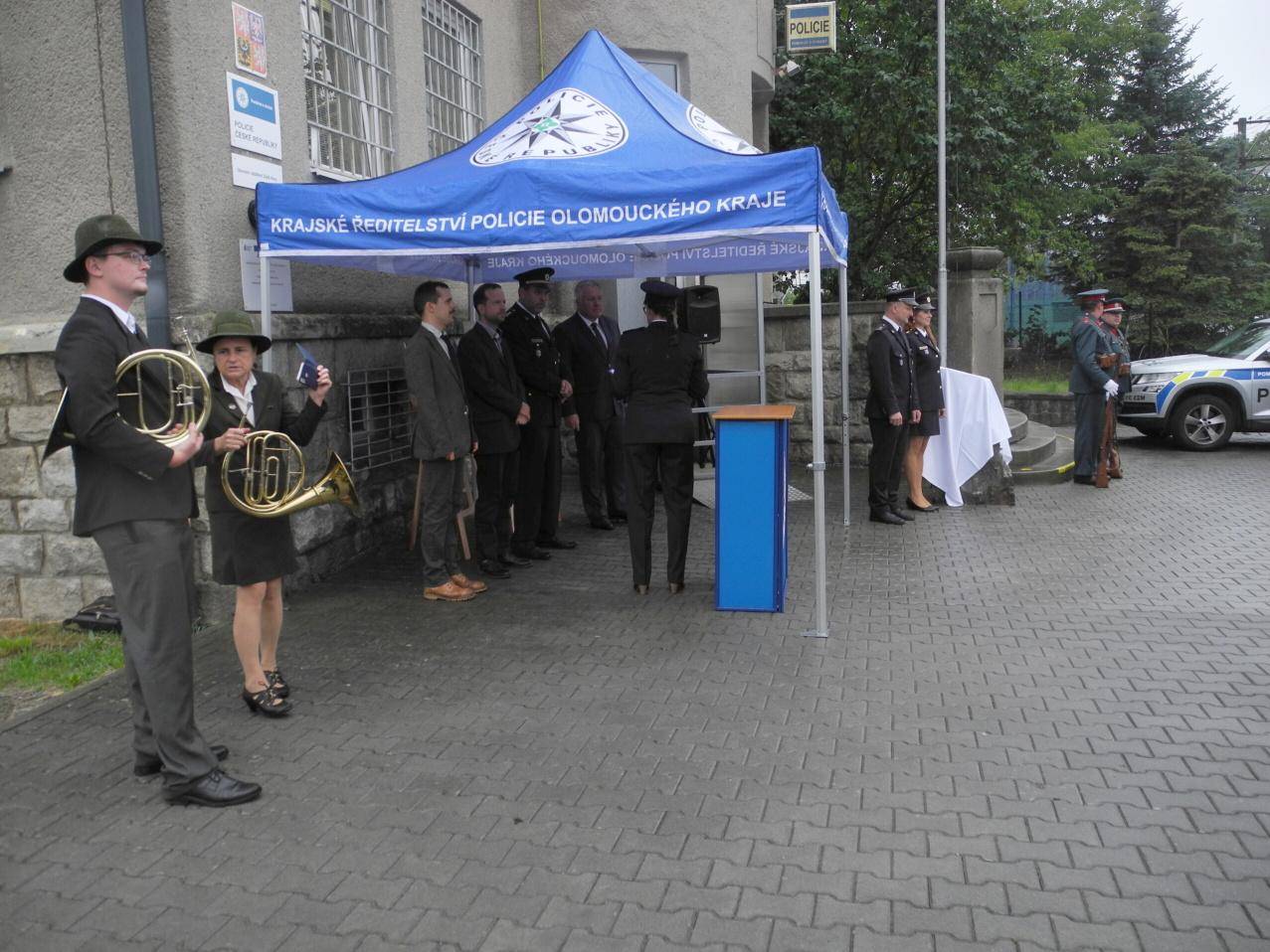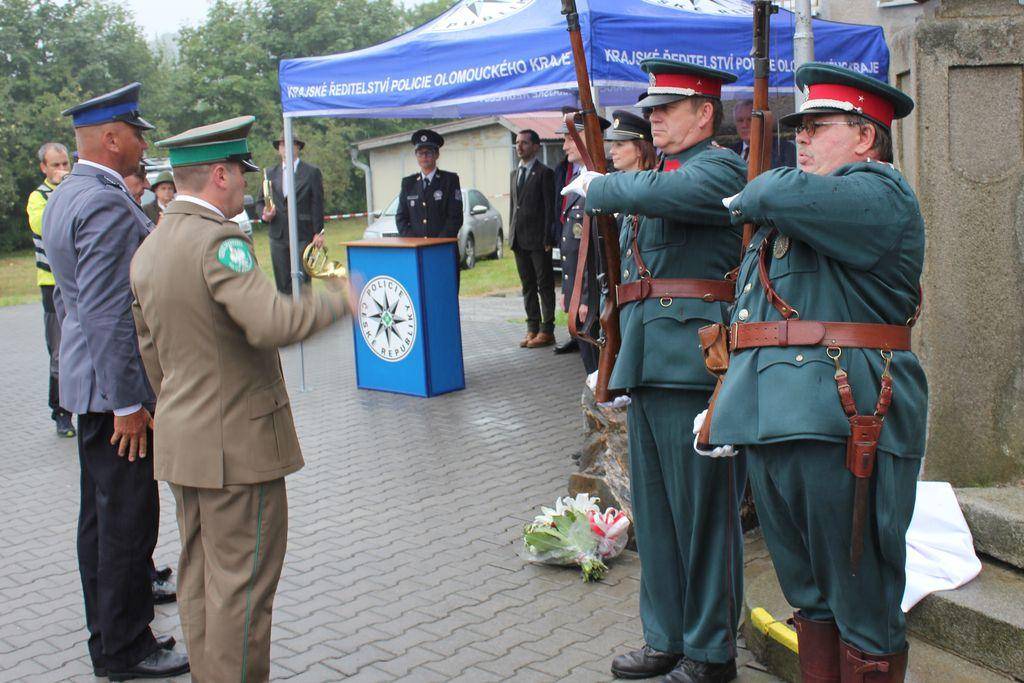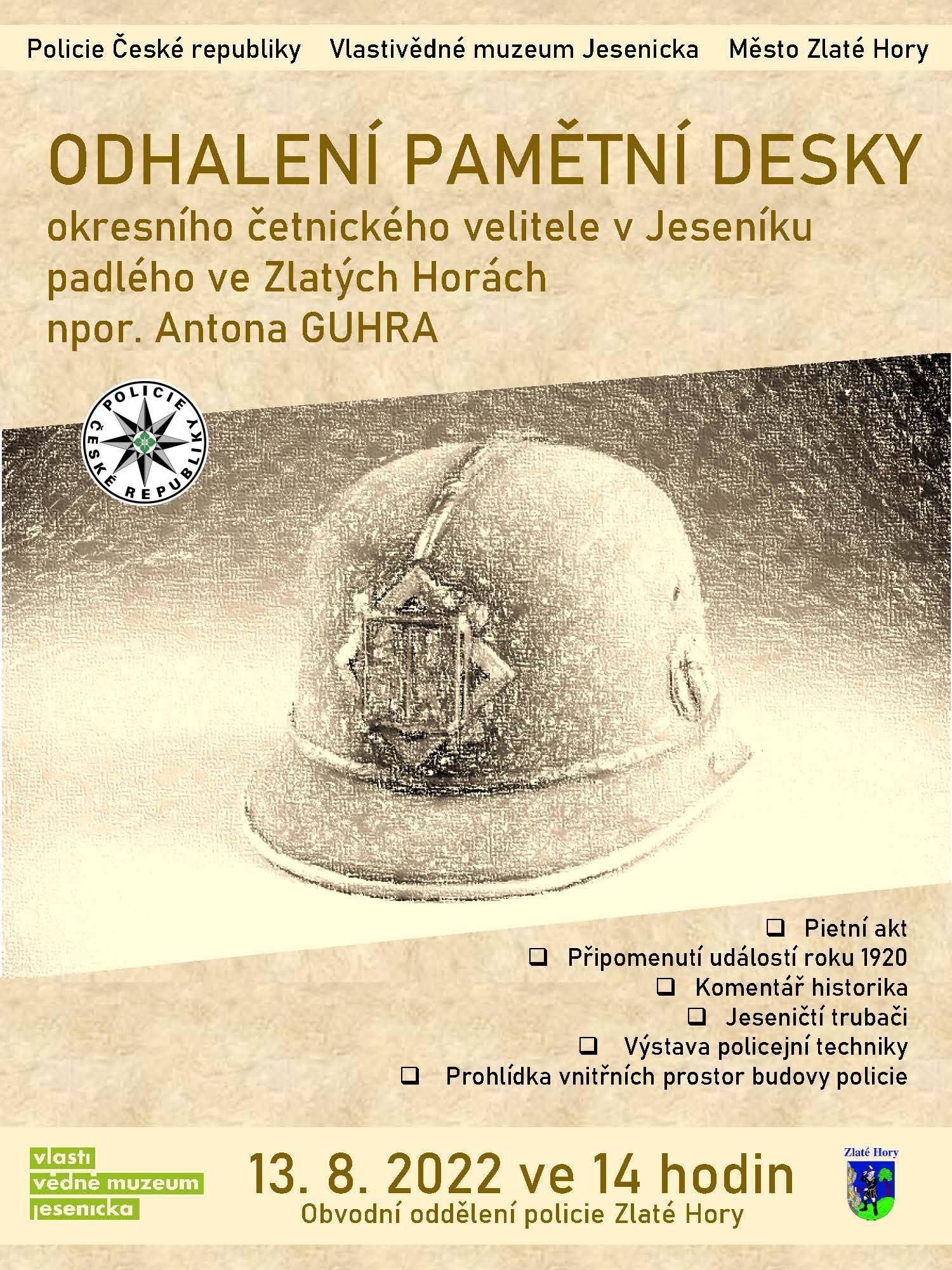 Odhalení pamětní desky npor. A. Guhra16.08.2022 V sobotu 13. srpna se ve Zlatých Horách před budovou Obvodního oddělení Policie ČR uskutečnil pietní akt spojený s odhalením pamětní desky nadporučíku četnictva Antonu Guhrovi (1868–1920). Rodák ze Sosnové na Opavsku zastával od roku 1914 funkci okresního četnického velitele v Jeseníku. Navzdory svému německému původu zůstal ve službě i po vzniku Československa a čeští nadřízení jej hodnotili jako schopného důstojníka. Osudným se mu stal 13. srpen 1920. Tehdy ve Zlatých Horách proběhly demonstrace proti odvodům občanů německé národnosti do československé armády. Dav také žádal propuštění mladíků z nedalekých Heřmanovic, kteří byli zatčeni za neuposlechnutí povolávacího rozkazu. Přestože požadavku bylo vyhověno, nepokoje pokračovaly. K obnovení pořádku byl povolán četnický oddíl, složený převážně z nezkušených nováčků. Okresní velitel Anton Guhr se pokusil předejít konfrontaci a vyjednávat. Když zjistil, že jeden z demonstrantů je ozbrojen revolverem, pokusil se jej legitimovat a zbraň mu zabavit. Neznámý muž však na četnického důstojníka z bezprostřední blízkosti vystřelil a na místě jej zabil. Zaskočení četníci bez rozkazu vystřelili do davu. Palba si vyžádala tři životy. Následné vyšetřování identitu Guhrova vraha neodhalilo. Případ byl rychle uzavřen, aby se předešlo dalším nepokojům. Osud Antona Guhra zmapovali historici Vlastivědného muzea Jesenicka a Slezského zemského muzea v Opavě. Pietní akt zorganizoval Územní odbor Policie ČR v Jeseníku, Vlastivědné muzeum Jesenicka a Město Zlaté Hory. Navzdory nepřízni počasí akci navštívili policejní veteráni, představitelé polské policie a pohraniční stráže i zástupci veřejnosti. Přítomné uvítal ředitel územního odboru Jeseník plk. Ivan Petrišče. Ředitel VMJ Pavel Rušar ve svém proslovu zdůraznil paradox události z roku 1920, jejímiž obětmi byli na obou stranách konfliktu českoslovenští Němci. Dále vyjádřil naději, že česko-německý dialog bude nadále zdárně pokračovat. Na tuto myšlenku navázal ve své řeči zástupce německého velvyslanectví v Praze Leonard Nielen, který pronesl úvahu o paralelách mezi situací v Guhrově době a současnými projevy nacionálního radikalismu. Po proslovech následovalo samotné odhalení pamětní desky s čestnou salvou, položením věnců a minutou ticha. Symbolický akt doprovodilo také hudební vystoupení Jesenických trubačů. Následně historik VMJ Ondřej Kolář seznámil přítomné s životním příběhem Antona Guhra a okolnostmi jeho smrti. Na závěr policisté symbolicky uctili Guhrovu památku spuštěním sirén služebních vozidel. Po skončení oficiálního programu měli návštěvníci možnost prohlédnout si prostory policejní budovy a vozidla policie, stejně jako drobnou výstavku o dějinách četnictva na Zlatohorsku. Případ Antona Guhra byl podrobně popsán v 18. svazku sborníku Jesenicko z roku 2017. | |