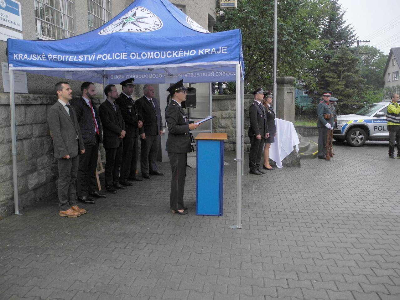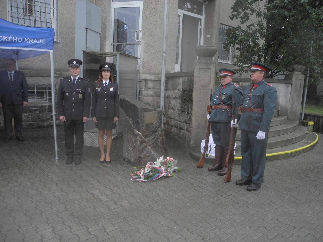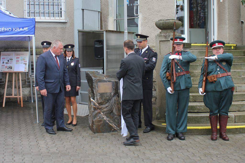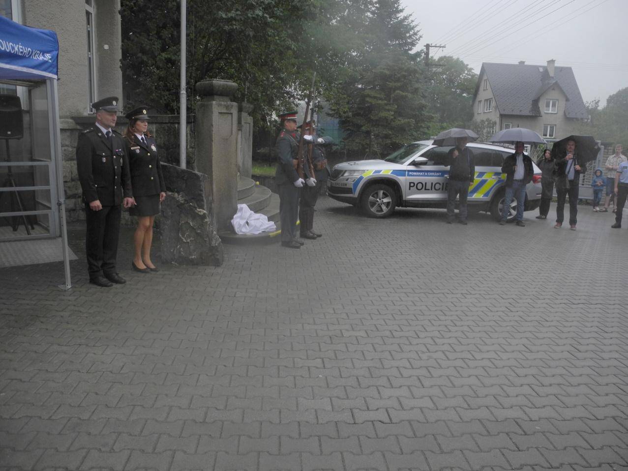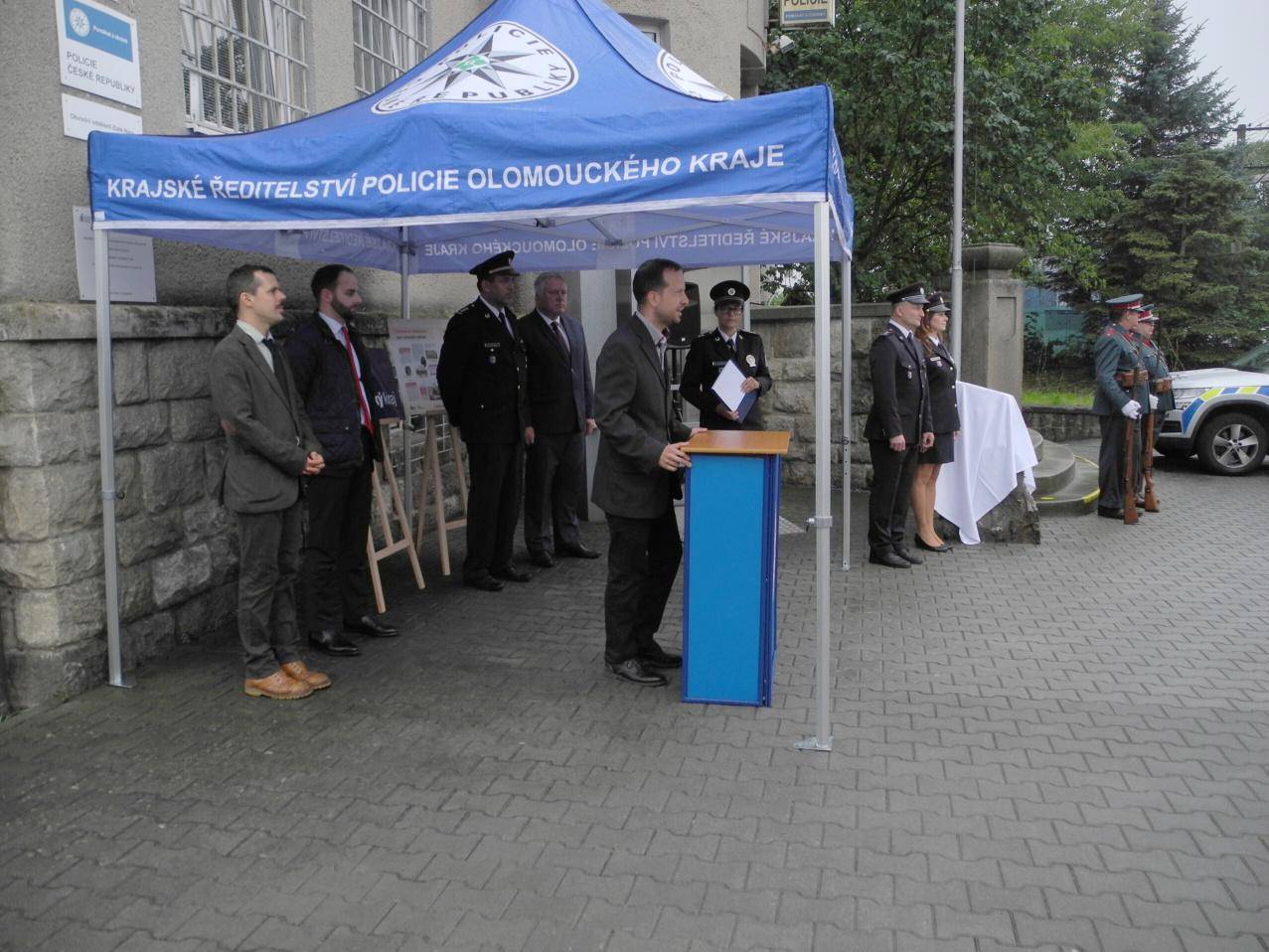 Odhalení pamětní desky npor. A. Guhra16.08.2022 V sobotu 13. srpna se ve Zlatých Horách před budovou Obvodního oddělení Policie ČR uskutečnil pietní akt spojený s odhalením pamětní desky nadporučíku četnictva Antonu Guhrovi (1868–1920). Rodák ze Sosnové na Opavsku zastával od roku 1914 funkci okresního četnického velitele v Jeseníku. Navzdory svému německému původu zůstal ve službě i po vzniku Československa a čeští nadřízení jej hodnotili jako schopného důstojníka. Osudným se mu stal 13. srpen 1920. Tehdy ve Zlatých Horách proběhly demonstrace proti odvodům občanů německé národnosti do československé armády. Dav také žádal propuštění mladíků z nedalekých Heřmanovic, kteří byli zatčeni za neuposlechnutí povolávacího rozkazu. Přestože požadavku bylo vyhověno, nepokoje pokračovaly. K obnovení pořádku byl povolán četnický oddíl, složený převážně z nezkušených nováčků. Okresní velitel Anton Guhr se pokusil předejít konfrontaci a vyjednávat. Když zjistil, že jeden z demonstrantů je ozbrojen revolverem, pokusil se jej legitimovat a zbraň mu zabavit. Neznámý muž však na četnického důstojníka z bezprostřední blízkosti vystřelil a na místě jej zabil. Zaskočení četníci bez rozkazu vystřelili do davu. Palba si vyžádala tři životy. Následné vyšetřování identitu Guhrova vraha neodhalilo. Případ byl rychle uzavřen, aby se předešlo dalším nepokojům. Osud Antona Guhra zmapovali historici Vlastivědného muzea Jesenicka a Slezského zemského muzea v Opavě. Pietní akt zorganizoval Územní odbor Policie ČR v Jeseníku, Vlastivědné muzeum Jesenicka a Město Zlaté Hory. Navzdory nepřízni počasí akci navštívili policejní veteráni, představitelé polské policie a pohraniční stráže i zástupci veřejnosti. Přítomné uvítal ředitel územního odboru Jeseník plk. Ivan Petrišče. Ředitel VMJ Pavel Rušar ve svém proslovu zdůraznil paradox události z roku 1920, jejímiž obětmi byli na obou stranách konfliktu českoslovenští Němci. Dále vyjádřil naději, že česko-německý dialog bude nadále zdárně pokračovat. Na tuto myšlenku navázal ve své řeči zástupce německého velvyslanectví v Praze Leonard Nielen, který pronesl úvahu o paralelách mezi situací v Guhrově době a současnými projevy nacionálního radikalismu. Po proslovech následovalo samotné odhalení pamětní desky s čestnou salvou, položením věnců a minutou ticha. Symbolický akt doprovodilo také hudební vystoupení Jesenických trubačů. Následně historik VMJ Ondřej Kolář seznámil přítomné s životním příběhem Antona Guhra a okolnostmi jeho smrti. Na závěr policisté symbolicky uctili Guhrovu památku spuštěním sirén služebních vozidel. Po skončení oficiálního programu měli návštěvníci možnost prohlédnout si prostory policejní budovy a vozidla policie, stejně jako drobnou výstavku o dějinách četnictva na Zlatohorsku. Případ Antona Guhra byl podrobně popsán v 18. svazku sborníku Jesenicko z roku 2017. | |