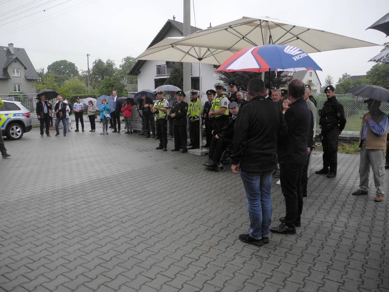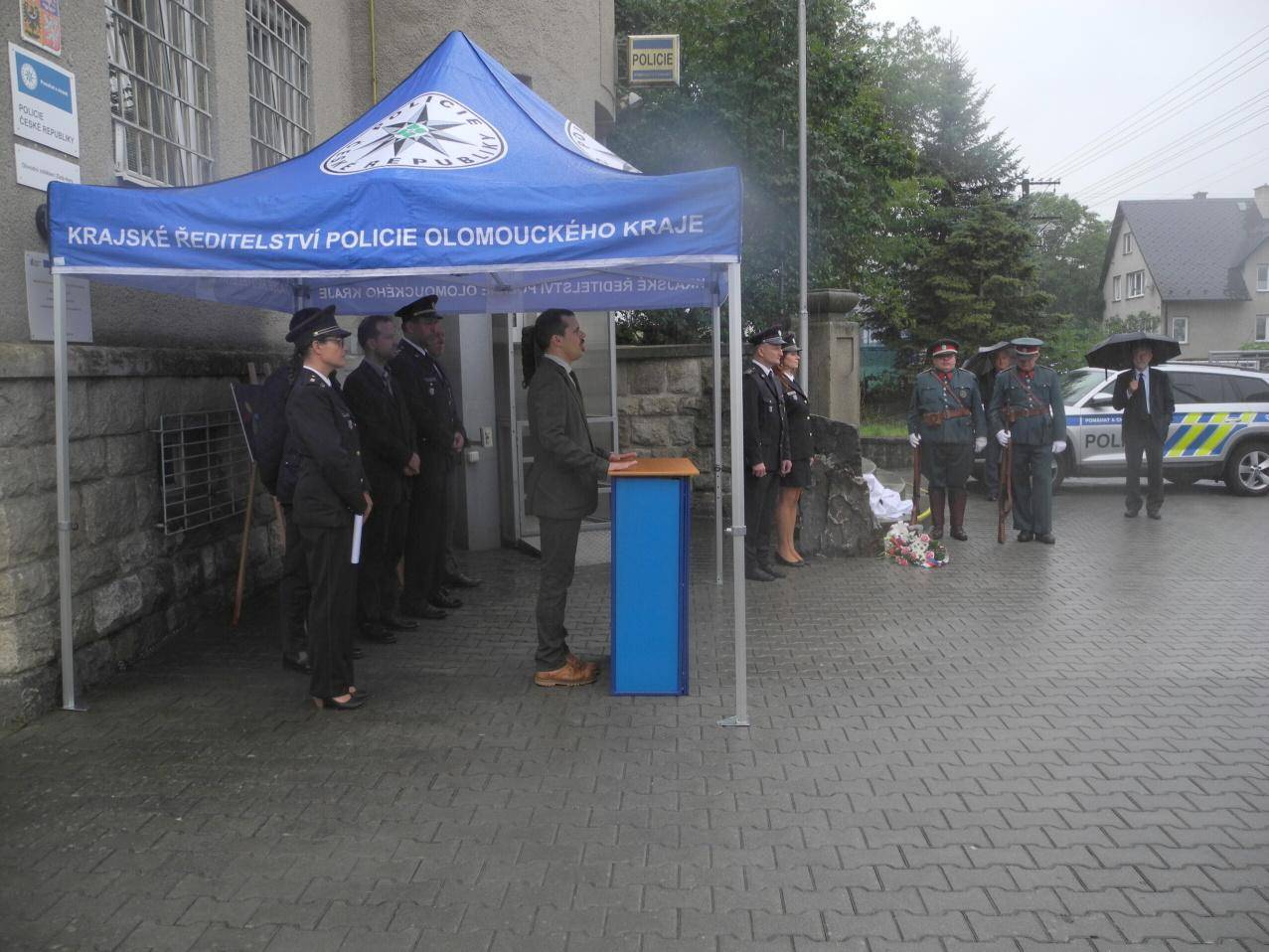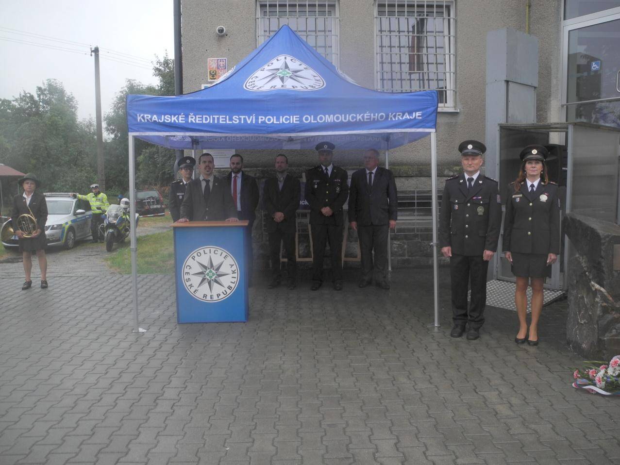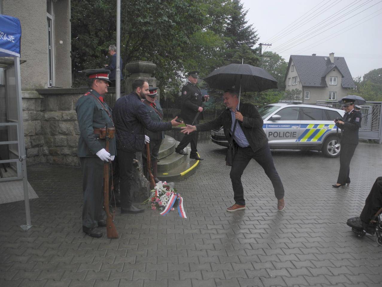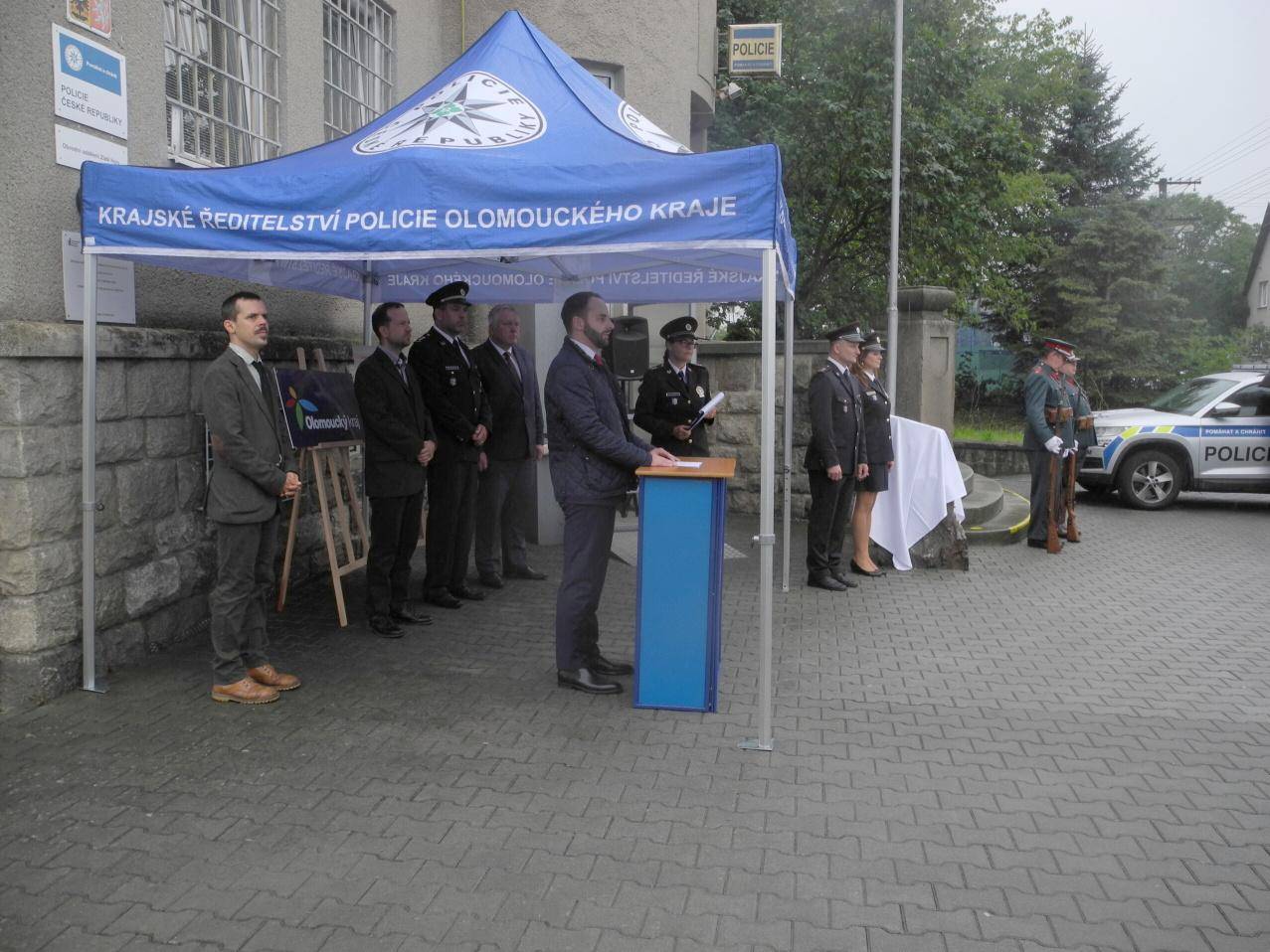 Odhalení pamětní desky npor. A. Guhra16.08.2022 V sobotu 13. srpna se ve Zlatých Horách před budovou Obvodního oddělení Policie ČR uskutečnil pietní akt spojený s odhalením pamětní desky nadporučíku četnictva Antonu Guhrovi (1868–1920). Rodák ze Sosnové na Opavsku zastával od roku 1914 funkci okresního četnického velitele v Jeseníku. Navzdory svému německému původu zůstal ve službě i po vzniku Československa a čeští nadřízení jej hodnotili jako schopného důstojníka. Osudným se mu stal 13. srpen 1920. Tehdy ve Zlatých Horách proběhly demonstrace proti odvodům občanů německé národnosti do československé armády. Dav také žádal propuštění mladíků z nedalekých Heřmanovic, kteří byli zatčeni za neuposlechnutí povolávacího rozkazu. Přestože požadavku bylo vyhověno, nepokoje pokračovaly. K obnovení pořádku byl povolán četnický oddíl, složený převážně z nezkušených nováčků. Okresní velitel Anton Guhr se pokusil předejít konfrontaci a vyjednávat. Když zjistil, že jeden z demonstrantů je ozbrojen revolverem, pokusil se jej legitimovat a zbraň mu zabavit. Neznámý muž však na četnického důstojníka z bezprostřední blízkosti vystřelil a na místě jej zabil. Zaskočení četníci bez rozkazu vystřelili do davu. Palba si vyžádala tři životy. Následné vyšetřování identitu Guhrova vraha neodhalilo. Případ byl rychle uzavřen, aby se předešlo dalším nepokojům. Osud Antona Guhra zmapovali historici Vlastivědného muzea Jesenicka a Slezského zemského muzea v Opavě. Pietní akt zorganizoval Územní odbor Policie ČR v Jeseníku, Vlastivědné muzeum Jesenicka a Město Zlaté Hory. Navzdory nepřízni počasí akci navštívili policejní veteráni, představitelé polské policie a pohraniční stráže i zástupci veřejnosti. Přítomné uvítal ředitel územního odboru Jeseník plk. Ivan Petrišče. Ředitel VMJ Pavel Rušar ve svém proslovu zdůraznil paradox události z roku 1920, jejímiž obětmi byli na obou stranách konfliktu českoslovenští Němci. Dále vyjádřil naději, že česko-německý dialog bude nadále zdárně pokračovat. Na tuto myšlenku navázal ve své řeči zástupce německého velvyslanectví v Praze Leonard Nielen, který pronesl úvahu o paralelách mezi situací v Guhrově době a současnými projevy nacionálního radikalismu. Po proslovech následovalo samotné odhalení pamětní desky s čestnou salvou, položením věnců a minutou ticha. Symbolický akt doprovodilo také hudební vystoupení Jesenických trubačů. Následně historik VMJ Ondřej Kolář seznámil přítomné s životním příběhem Antona Guhra a okolnostmi jeho smrti. Na závěr policisté symbolicky uctili Guhrovu památku spuštěním sirén služebních vozidel. Po skončení oficiálního programu měli návštěvníci možnost prohlédnout si prostory policejní budovy a vozidla policie, stejně jako drobnou výstavku o dějinách četnictva na Zlatohorsku. Případ Antona Guhra byl podrobně popsán v 18. svazku sborníku Jesenicko z roku 2017. | |