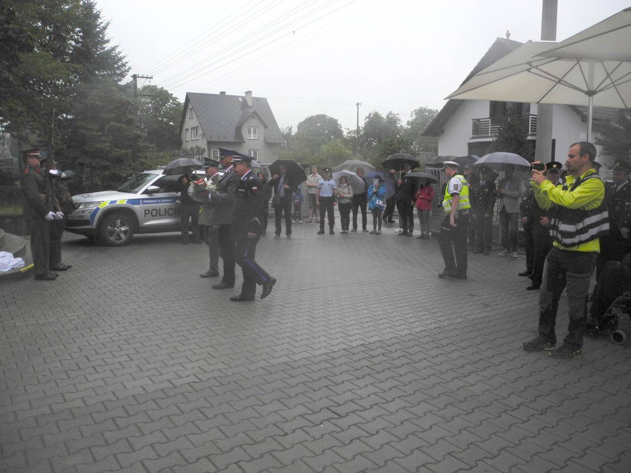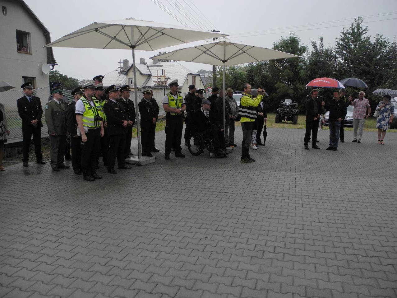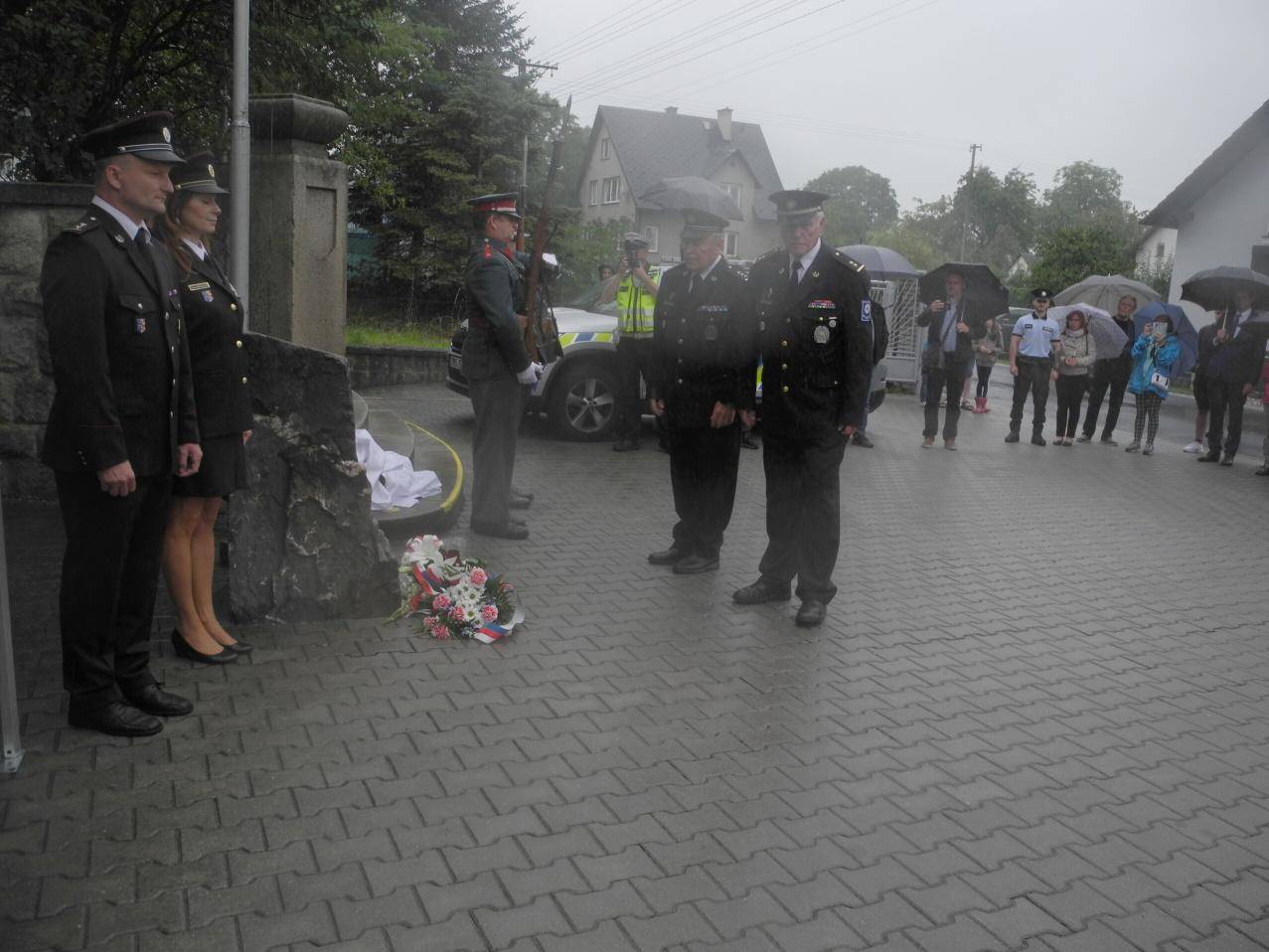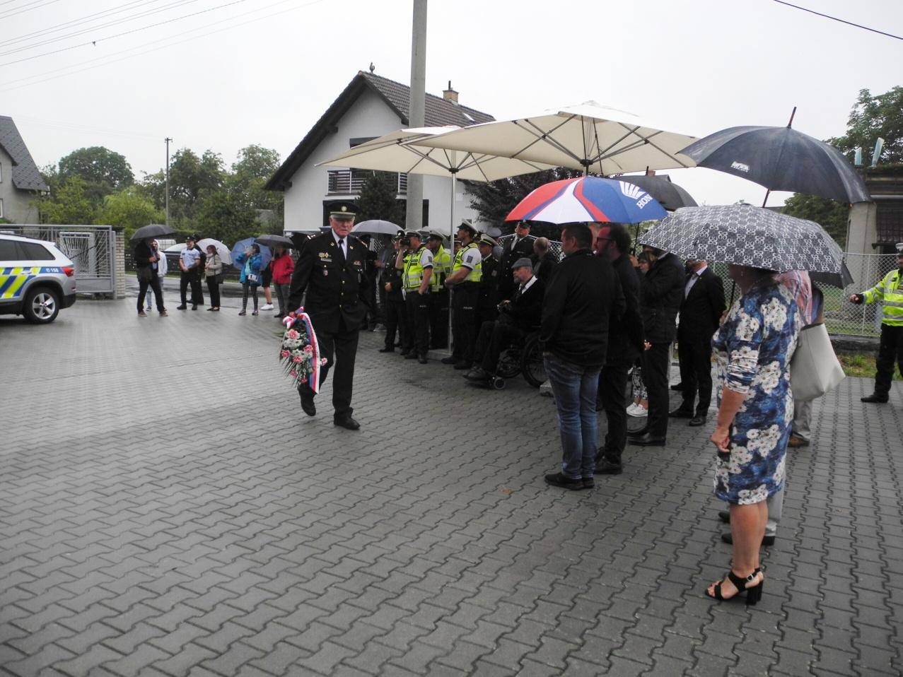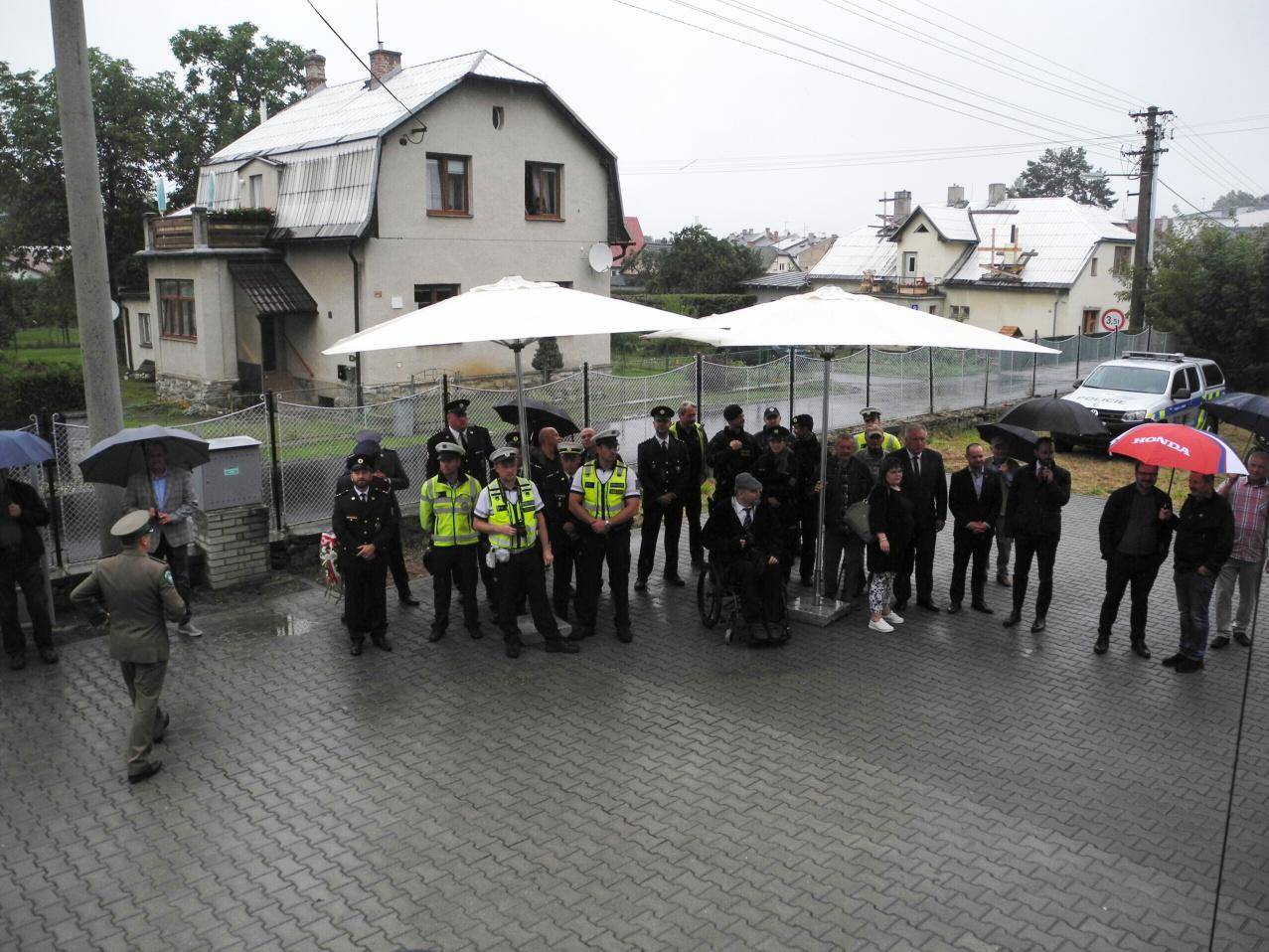 Odhalení pamětní desky npor. A. Guhra16.08.2022 V sobotu 13. srpna se ve Zlatých Horách před budovou Obvodního oddělení Policie ČR uskutečnil pietní akt spojený s odhalením pamětní desky nadporučíku četnictva Antonu Guhrovi (1868–1920). Rodák ze Sosnové na Opavsku zastával od roku 1914 funkci okresního četnického velitele v Jeseníku. Navzdory svému německému původu zůstal ve službě i po vzniku Československa a čeští nadřízení jej hodnotili jako schopného důstojníka. Osudným se mu stal 13. srpen 1920. Tehdy ve Zlatých Horách proběhly demonstrace proti odvodům občanů německé národnosti do československé armády. Dav také žádal propuštění mladíků z nedalekých Heřmanovic, kteří byli zatčeni za neuposlechnutí povolávacího rozkazu. Přestože požadavku bylo vyhověno, nepokoje pokračovaly. K obnovení pořádku byl povolán četnický oddíl, složený převážně z nezkušených nováčků. Okresní velitel Anton Guhr se pokusil předejít konfrontaci a vyjednávat. Když zjistil, že jeden z demonstrantů je ozbrojen revolverem, pokusil se jej legitimovat a zbraň mu zabavit. Neznámý muž však na četnického důstojníka z bezprostřední blízkosti vystřelil a na místě jej zabil. Zaskočení četníci bez rozkazu vystřelili do davu. Palba si vyžádala tři životy. Následné vyšetřování identitu Guhrova vraha neodhalilo. Případ byl rychle uzavřen, aby se předešlo dalším nepokojům. Osud Antona Guhra zmapovali historici Vlastivědného muzea Jesenicka a Slezského zemského muzea v Opavě. Pietní akt zorganizoval Územní odbor Policie ČR v Jeseníku, Vlastivědné muzeum Jesenicka a Město Zlaté Hory. Navzdory nepřízni počasí akci navštívili policejní veteráni, představitelé polské policie a pohraniční stráže i zástupci veřejnosti. Přítomné uvítal ředitel územního odboru Jeseník plk. Ivan Petrišče. Ředitel VMJ Pavel Rušar ve svém proslovu zdůraznil paradox události z roku 1920, jejímiž obětmi byli na obou stranách konfliktu českoslovenští Němci. Dále vyjádřil naději, že česko-německý dialog bude nadále zdárně pokračovat. Na tuto myšlenku navázal ve své řeči zástupce německého velvyslanectví v Praze Leonard Nielen, který pronesl úvahu o paralelách mezi situací v Guhrově době a současnými projevy nacionálního radikalismu. Po proslovech následovalo samotné odhalení pamětní desky s čestnou salvou, položením věnců a minutou ticha. Symbolický akt doprovodilo také hudební vystoupení Jesenických trubačů. Následně historik VMJ Ondřej Kolář seznámil přítomné s životním příběhem Antona Guhra a okolnostmi jeho smrti. Na závěr policisté symbolicky uctili Guhrovu památku spuštěním sirén služebních vozidel. Po skončení oficiálního programu měli návštěvníci možnost prohlédnout si prostory policejní budovy a vozidla policie, stejně jako drobnou výstavku o dějinách četnictva na Zlatohorsku. Případ Antona Guhra byl podrobně popsán v 18. svazku sborníku Jesenicko z roku 2017. | |
