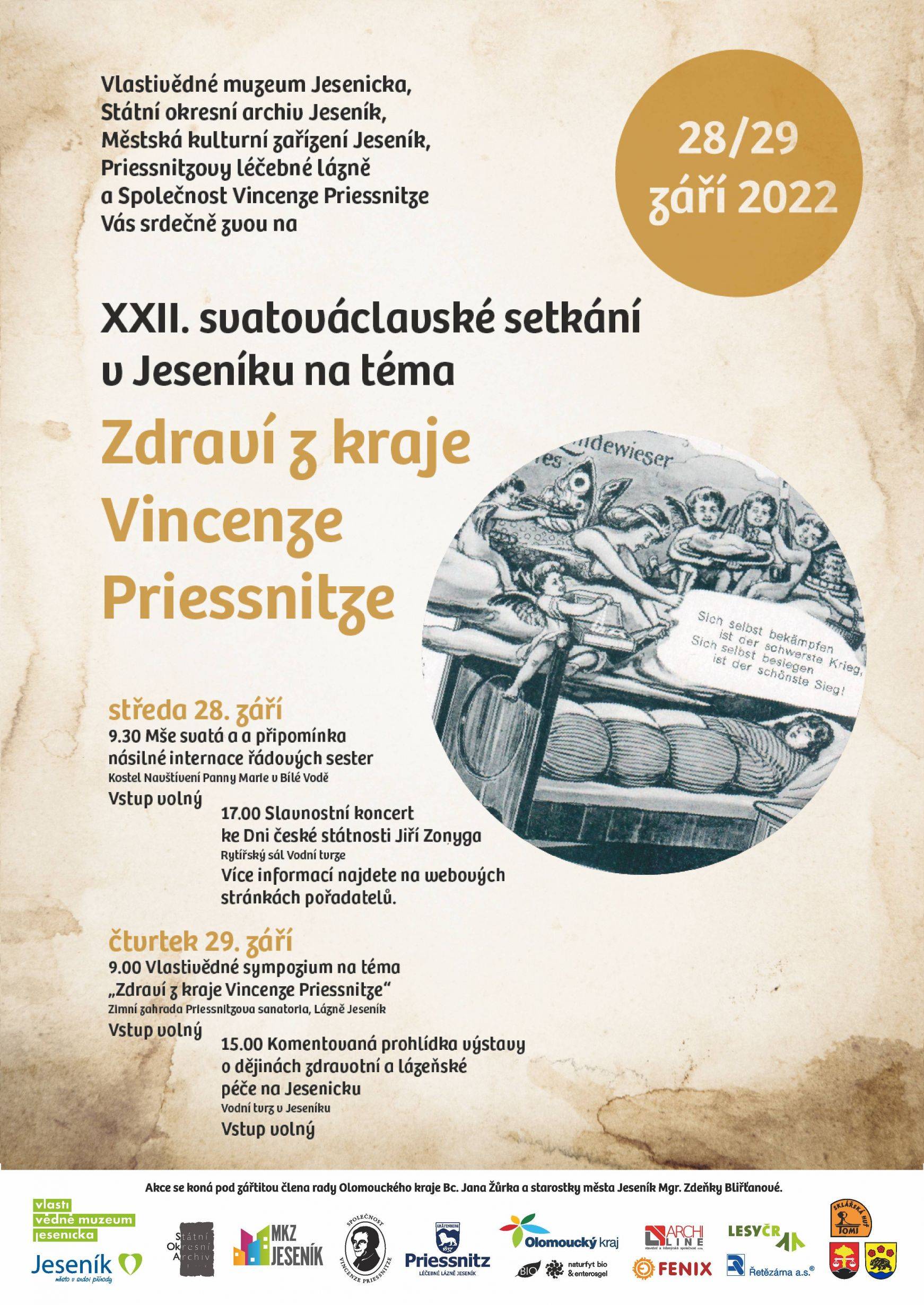 22. ročník svatováclavského setkání v Jeseníku29.09.2022 Vzhledem k 200. výročí založení prvního vodoléčebného ústavu na světě, které připadlo na rok 2022, se tématem 22. ročníku svatováclavského setkání stalo zdraví. Akce započala 28. září v ranních hodinách v kostele Navštívení Panny Marie v Bílé Vodě, kde proběhla mše svatá a pietní akt k uctění památky řádových sester, internovaných sem komunistickým režimem. Ve večerních hodinách pak sváteční den zakončil slavnostní koncert, při kterém se představil zpěvák Jiří Zonyga. Ke stažení