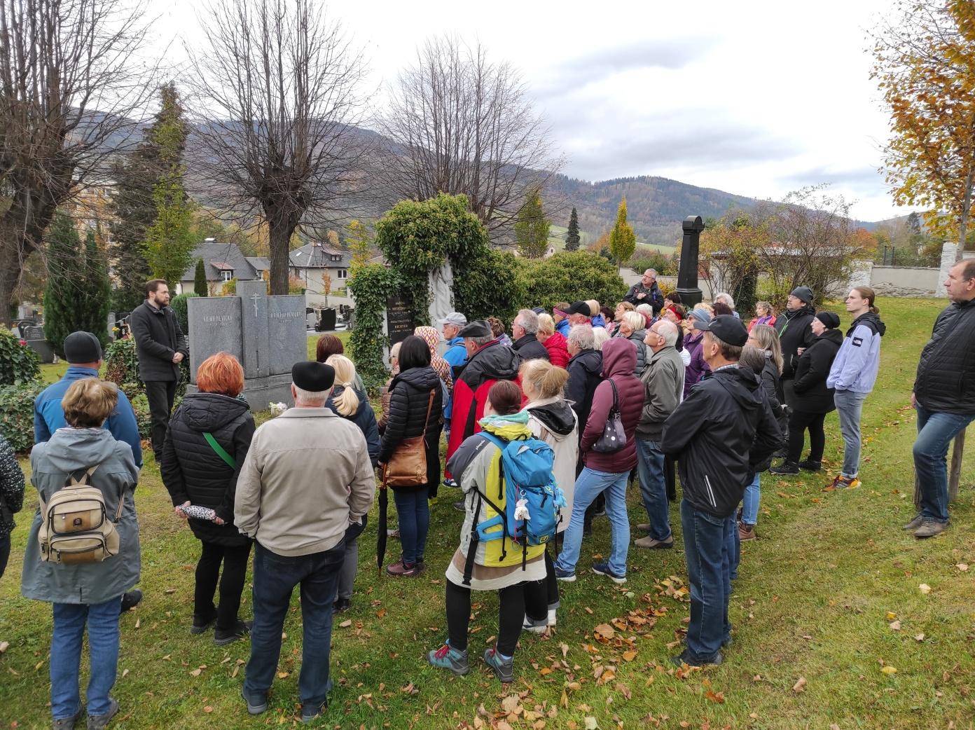 Vlastivědná vycházka na hřbitov měla rekordní účast22.10.2022 O množství zajímavých životních příběhů osobností, jež odpočívají na jesenickém hřbitově, se v sobotu 22. října podělili někdejší archivář Květoslav Growka a etnograf Vlastivědného muzea Jesenicka Matěj Matela. Jejich vyprávění si přišlo vyslechnout neuvěřitelných 57 zájemců. Vycházka oficiálně započala ve středu hřbitova, v místech, kde se nacházel hrob významného podnikatele Adolfa Raymanna, po němž se paradoxně nic nedochovalo. „Sic transit gloria mundi“, tak končí světská sláva, jak zmínil K. Growka, který právě zde pojednal o pomíjivosti života. Odtud se početná skupina vydala k místu posledního odpočinku rodiny Josefa Sachse, prvního okresního hejtmana a dlouholetého starosty. Po vzpomínce na lesmistra Wollenhaupta, přímého potomka Jana Amose Komenského, pak oba průvodci zamířili s účastníky vzhůru, ke hrobům Priessnitzova zetě Johanna Rippera, významných jesenických farářů či vodoléčitele Josefa Weisse. Na činnost Moravsko-slezského sudetského horského spolku vzpomenuli u hrobu dr. Kriestena, předsedy sdružení, a Emilie Hauckové, dcery dlouholetého nájemce Jiřího chaty na Šeráku. M. Matela se déle zastavil v místě, kde spočinul lesmistr Adolf Medritzer a řadu let po něm i Viktor Nevický, řeckokatolický duchovní perzekvovaný komunistickým režimem. Na příkladu tohoto hrobu průvodce ukázal pohnutost dějin nejen oblastí tzv. Sudet, ale v podstatě i celé střední a východní Evropy. U památníku obětem obou světových válek K. Growka coby bývalý učitel vyzkoušel účastníky z regionálních dějin a objasnil záhadu spojenou s místem pochování kapitána Fedorčenka. Skupina se poté odebrala níže a skrze své průvodce si připomněla osobnosti lesmistra Julia Micklitze, historika Rudolfa Zubera či kapitána Jana Krejčího. Závěrečnou zastávkou se stal hrob dvou šéflékařů Priessnitzova sanatoria, Rudolfa Hatscheka a Josefa Reinholda, jejichž truchlivé životní osudy plně korespondovaly s melancholickou podzimní atmosférou. Zde, u lidí, jež kolo dějin semlelo vskutku nelítostně, se oba průvodci se skupinou rozloučili a slíbili, že objeví-li další pozoruhodné osobnosti pohřbené na tomto hřbitově, rádi uskuteční další exkurzi. | |
