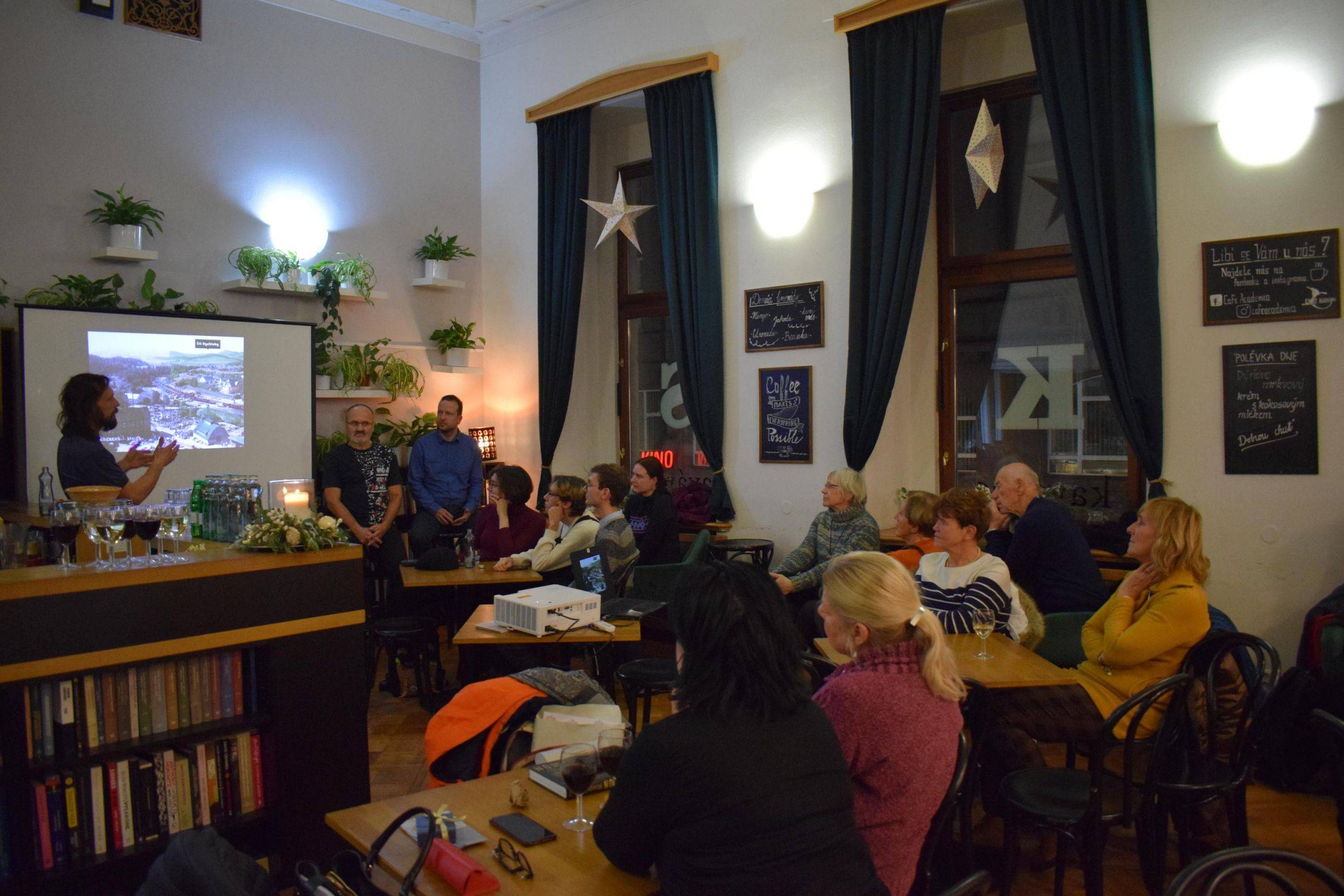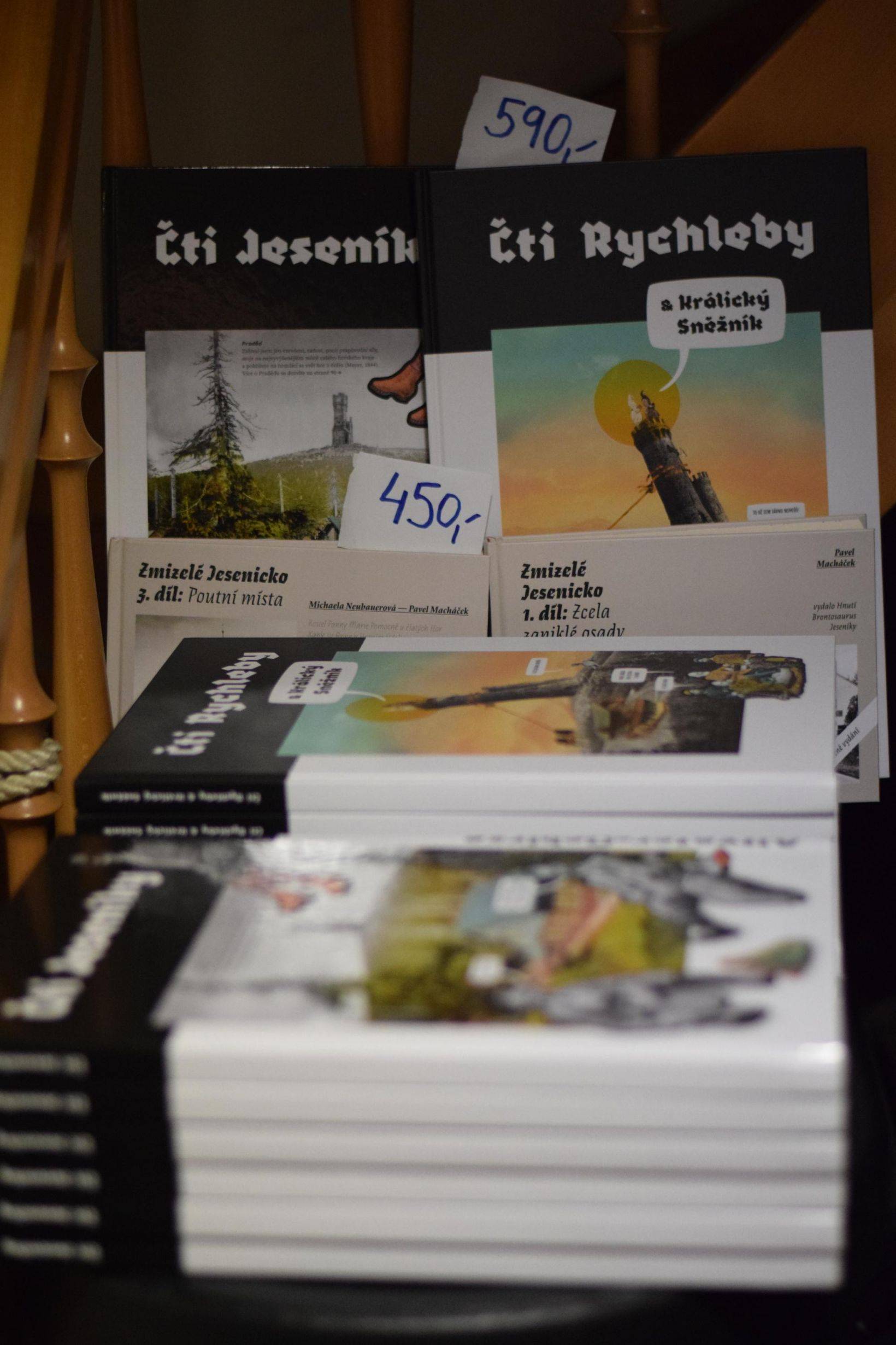 Kniha Čti Rychleby představena v Praze21.12.2022 Na Václavském náměstí v kavárně knihkupectví Academia byla dne 21. prosince 2022 představena návštěvníkům kniha Čti Rychleby. Obrazové prezentace a krátké přednášky se ujal ideový tvůrce knihy Lukáš Abt se spoluautory Pavlem Macháčkem, Pavlem Rušarem a Markem Palysem. Akci navštívilo přibližně 25 účastníků, z nichž mnozí si společně s prezentovanou knihou odnesli i její starší sestru Čti Jeseníky. Obě knihy jsou k dispozici také na recepci Vodní tvrze v Jeseníku. | |
