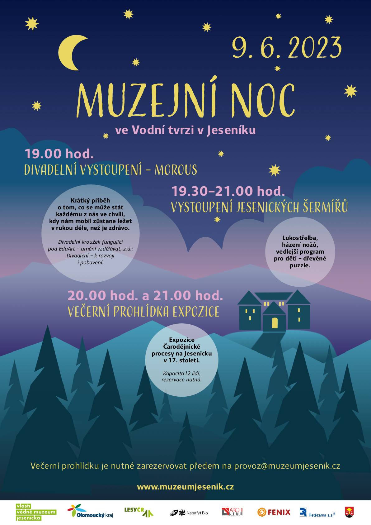 Muzejní noc ve Vodní tvrzi09.06.2023 V letošním roce se po tříleté covidové přestávce Vlastivědné muzeum Jesenicka připojilo k institucím nabízejícím program při tzv. muzejní noci. Zejména nejmladší návštěvníky zaujalo divadelní představení Morous, které představili převážně dětští členové divadelního kroužku Divadlení – k rozvoji i pobavení. Pohádkový příběh s prvky dramatu vyprávěl o situaci, kdy mobilní telefon zůstane v rukou dětí o něco déle, než je zdrávo. Originální zpracování ocenili i dospělí diváci. Nepřízní počasí se nenechali odradit jeseničtí šermíři a připravili na parkánu Vodního hradu ukázku lukostřelby, házení nožů a hodu oštěpem. Další program pro děti ve formě deskových skládaček a prohazovaček byl zase k vidění na nádvoří. Nechyběla středověká zbroj, meče a kopí, o kterých se děti dozvěděli řadu zajímavostí. Večerní prohlídky expozice čarodějnických procesů na Jesenicku byly už s předstihem rezervovány a pořadatelský tým velmi mrzelo, že nebylo možné vyhovět neregistrovaným zájemcům. Nicméně jedná se o expozici stálou a je pro návštěvníky přístupná od úterý do neděle, od 9.00 do 17.00 hod. Vlastivědné muzeum Jesenicka bude muzejní noc s programem pro děti i dospělé nabízet rovněž v následujících letech. | |