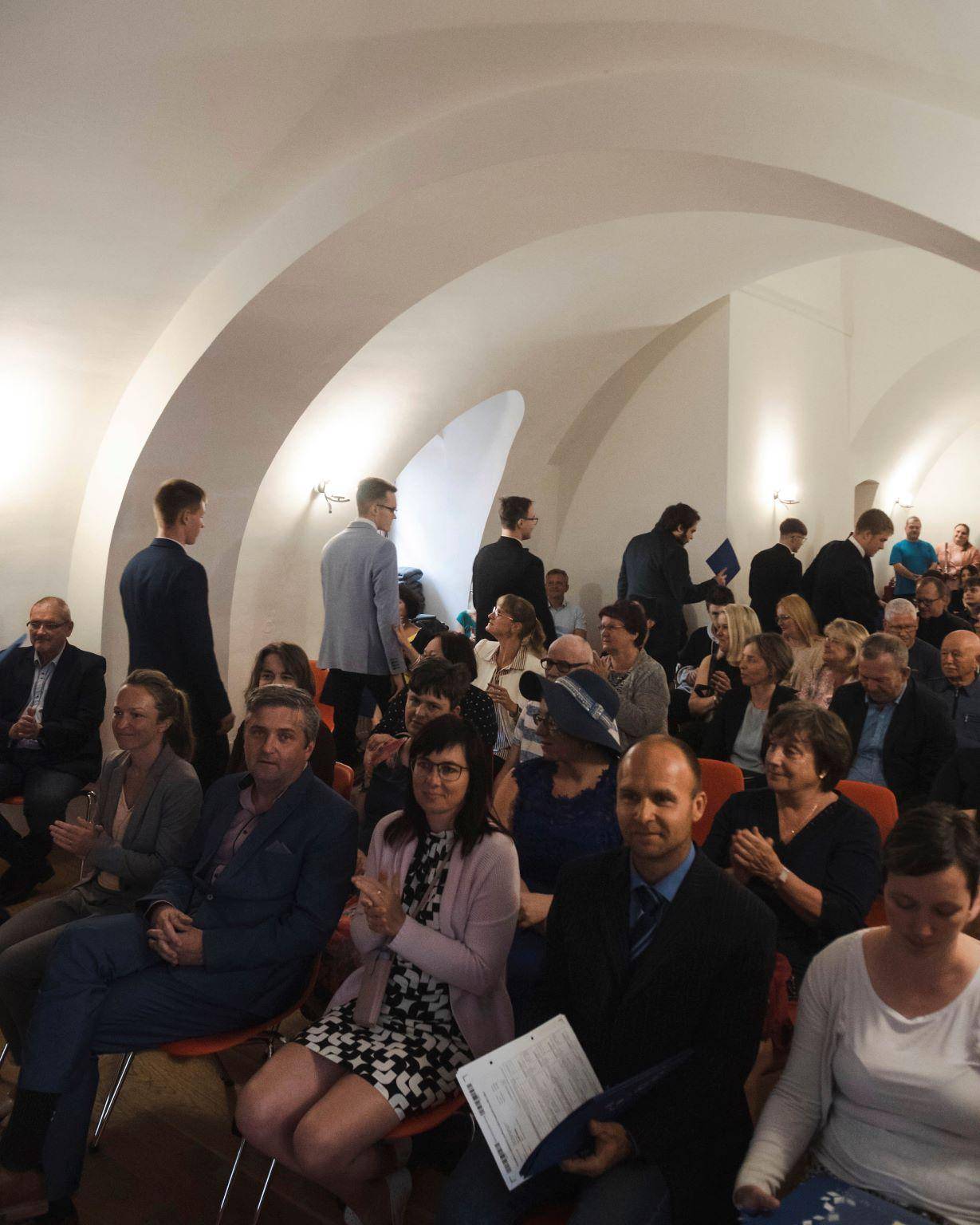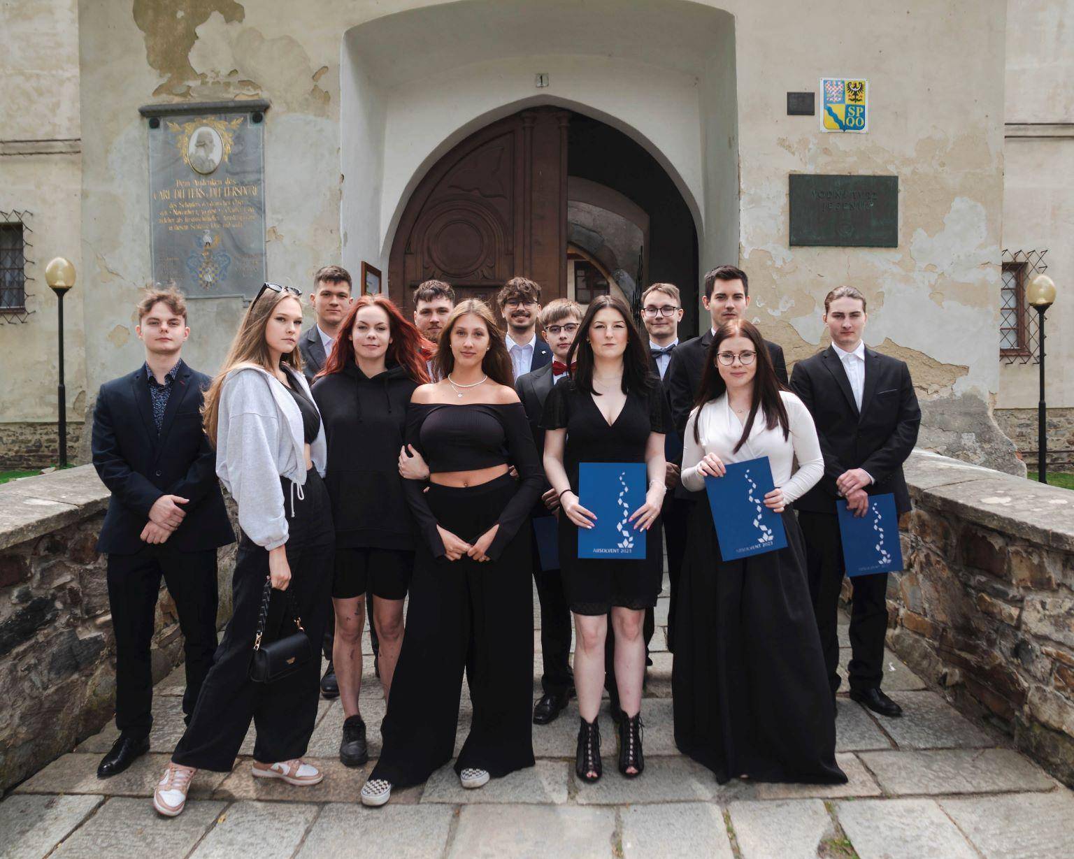 Maturanti ve Vodní tvrzi05.06.2023 SPŠ Jeseník si pro slavnostní předávání maturitního vysvědčení vybrala letos Rytířský sál ve Vodní tvrzi. Celkem se zde sešlo 100 účastníků a 20 maturantů. „Jsme moc rádi, že jsme mohli využít sál k předávání maturitních vysvědčení. Tyto historické prostory mají skvělou atmosféru i akustiku. Moc jsme si předávání užili a těšíme se příště. Jsme velice vděčni, že nám vedení Vlastivědného muzea Jesenicka umožnilo tyto skvělé prostory využít,“ řekl Ing. David Pišek. | |
