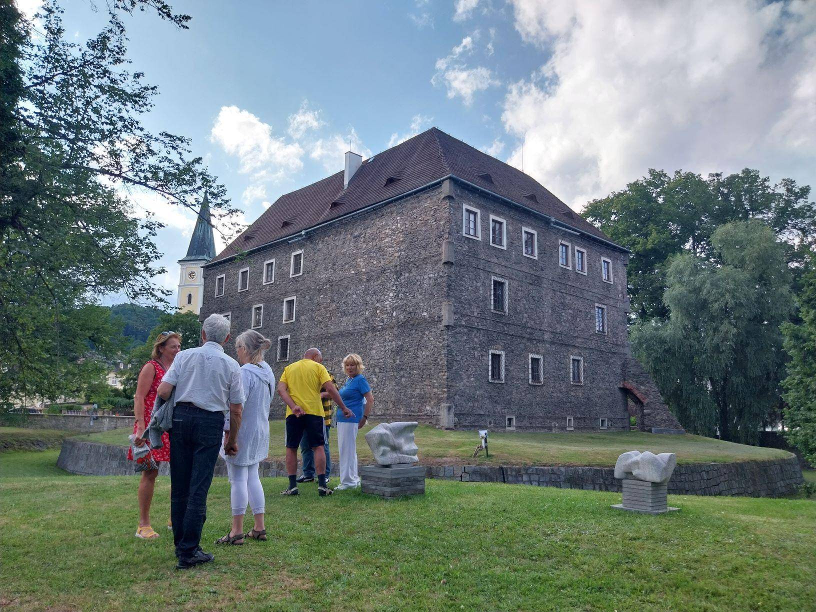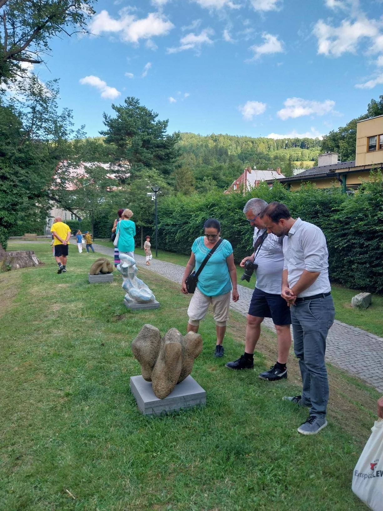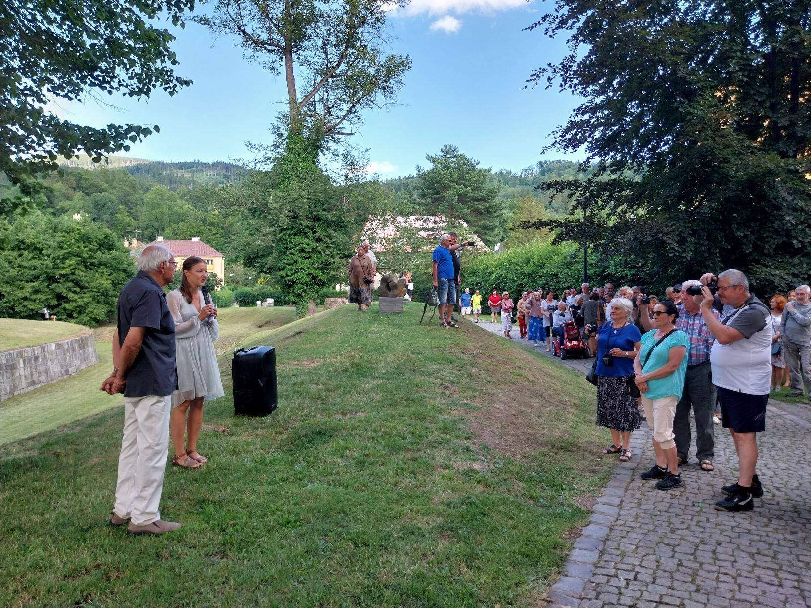 Za Vodní tvrzí byla zahájena jubilejní výstava Romana Borečka20.07.2023 Za nádherného slunečného počasí byla dne 20. července 2023 v podvečerních hodinách za přítomnosti takřka stovky návštěvníků zahájena venkovní výstava vybraných sochařských děl jesenického umělce Romana Borečka. Autor svými poetickými sochami z pískovce a mramoru oživil prostor za vodním příkopem u jesenické tvrze. Autor busty Vincenze Priessnitze a také např. sochy Rodná země na náměstí Svobody ve své tvorbě dlouhodobě zpracovává téma střetu člověka s přírodou, krajinou, živly a přírodními principy. Výstavu, která je současně poctou jeho celoživotnímu dílu, připravila Městská kulturní zařízení Jeseník, Vlastivědné muzeum Jesenicka bylo partnerem akce. Díla budou veřejnosti přístupná až do konce listopadu 2023. | |
