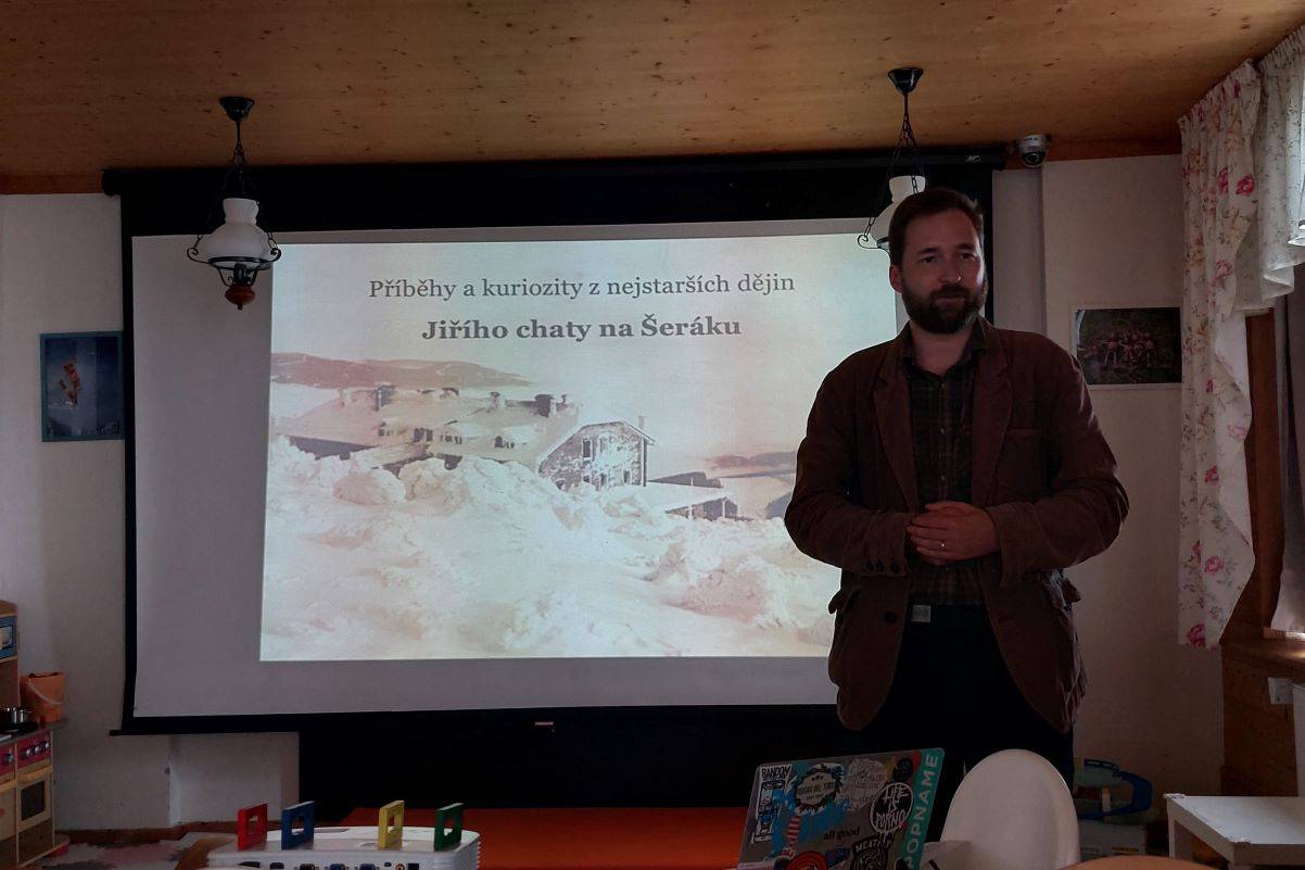 U narozenin Jiřího chaty na Šeráku a odhalení pamětní desky nechybělo ani jesenické muzeum28.07.2023 V pátek 28. července 2023 uplynulo přesně 135 let od chvíle, kdy Moravsko-slezský sudetský horský spolek slavnostně otevřel svou vůbec první horskou útulnu, jež na počest vratislavského biskupa Georga von Koppa dostala jméno Georg-Schutzhaus, tedy Jiřího chata. Při této příležitosti zde proběhla velice příjemná vzpomínková akce. Z iniciativy současných nájemců Jiřího chaty a dlouholetého milovníka jesenických hor, známého velehradského umělce Otmara Olivy, zkrášlila čelní zeď tohoto oblíbeného turistického objektu mimořádně vkusná pamětní deska, jež byla u příležitosti 135. výročí otevření slavnostně odhalena a náležitě pokřtěna. Důstojný akt, okořeněný osobitou náturou a humorem zhotovitele tohoto díla pana Olivy, proběhl za nevlídného počasí, které však na vysoký počet přihlížejících jako by ani nemělo vliv. Následně se hosté přesunuli do vnitřních prostor, kde na ně čekalo občerstvení. Ve tři hodiny pak s přednáškou vystoupil etnograf Vlastivědného muzea Jesenicka Matěj Matela, který účastníky seznámil nejen s historií chaty od jejího vzniku až do roku 1945, ale své vyprávění pojal jako sled nejrůznějších historek a kuriozit, na něž je každé vysokohorské zařízení více než bohaté. Jelikož na rok 2024 připadá 130. výročí znovuobnovení chaty po ničivém požáru, lze předpokládat, že se v průběhu příštího léta můžeme opět těšit na další zajímavou akci. Foto: Jiřího chata na Šeráku | |