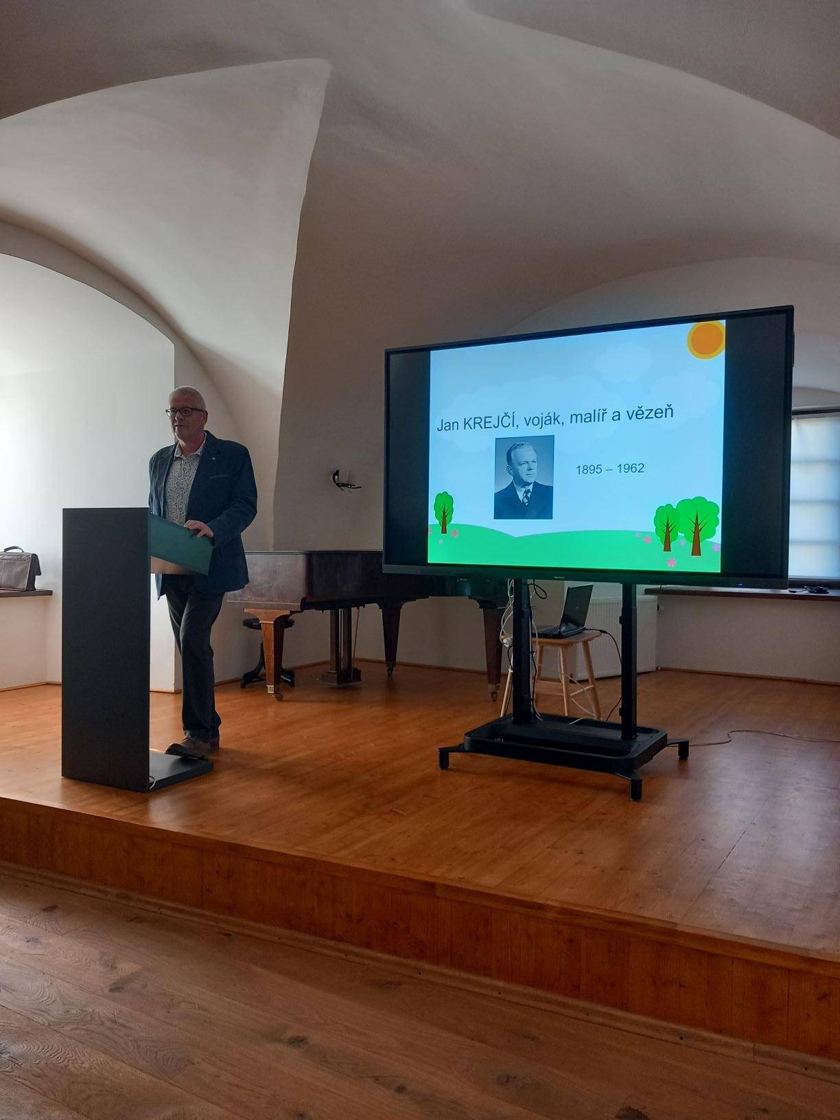 Přednáška připomněla pohnuté osudy vojáka a malíře Jana Krejčího10.08.2023 Ve čtvrtek 10. srpna 2023 proběhla v prostorách Rytířského sálu jesenického muzea přednáška o významné osobnosti novodobých dějin města Jeseníku. Před lety ji ze zapomnění vynesl Květoslav Growka, který účastníkům přiblížil Jana Krejčího coby vojáka, malíře i člověka. V Krejčího osudu jako by se doslova zhmotnila historie 20. století ve středoevropském prostoru. Účastník první světové války, který v meziválečném období pokračoval v kariéře vojáka, byl převelen do příhraničního Frývaldova, kde se oženil s Němkou a přečkal druhou světovou válku, byť za značné šikany nacistických úřadů. Přestože v květnových dnech roku 1945 v podstatě zachránil Jeseník před zničením, pro nastupující režim se stal značně nepohodlným a po únorovém převratu byl za údajnou velezradu odsouzen na 15 let těžkého žaláře. Podlomen na těle i na duchu zemřel na sklonku roku 1962. Přednášející K. Growka pochopitelně neopomněl povyprávět o Krejčího celoživotní vášni, jíž bylo malířství, a přítomné seznámil s dochovanými plátny, na nichž se tomuto umělci podařilo zachytit krásu krajiny kolem Jeseníku. Od letošního roku se jeho obrazy nacházejí ve sbírkách Vlastivědného muzea Jesenicka. | |