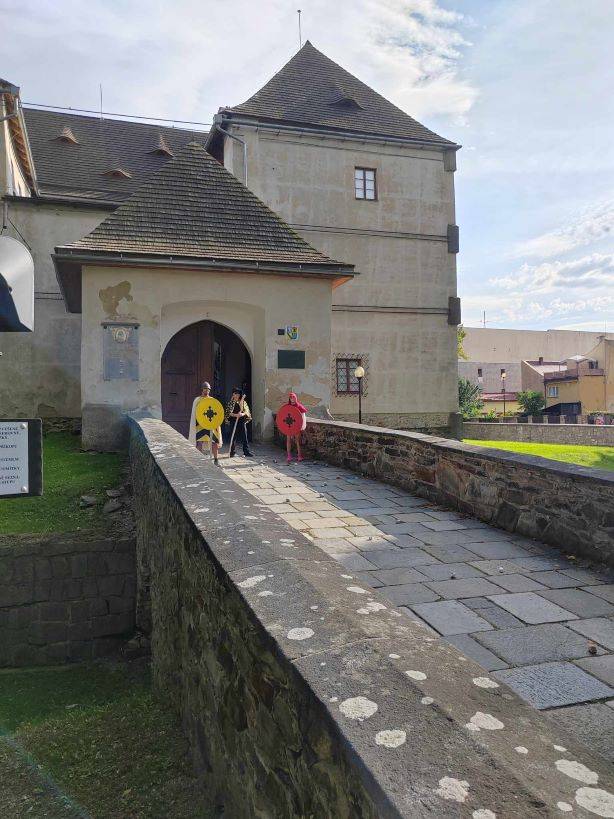 Na mostě a v nádvoří Vodní tvrze se strhla bitva s čarodějem25.08.2023 V rámci seznamovacího adaptačního programu Základní školy Jeseník poskytlo Vlastivědné muzeum Jesenicka na sklonku prázdnin, 25. srpna 2023, své historické prostory pro velkou bitvu se zlým čarodějem, který věznil paní učitelky zamknuté ve věži. Děti s pomocí rodičů uspěly, čaroděj byl poražen a paní učitelky osvobozeny. Přejeme prvňáčkům úspěchy a radost ve školních lavicích a jsme zvědaví, kdo nám ovládne Vodní tvrz příští rok. | |