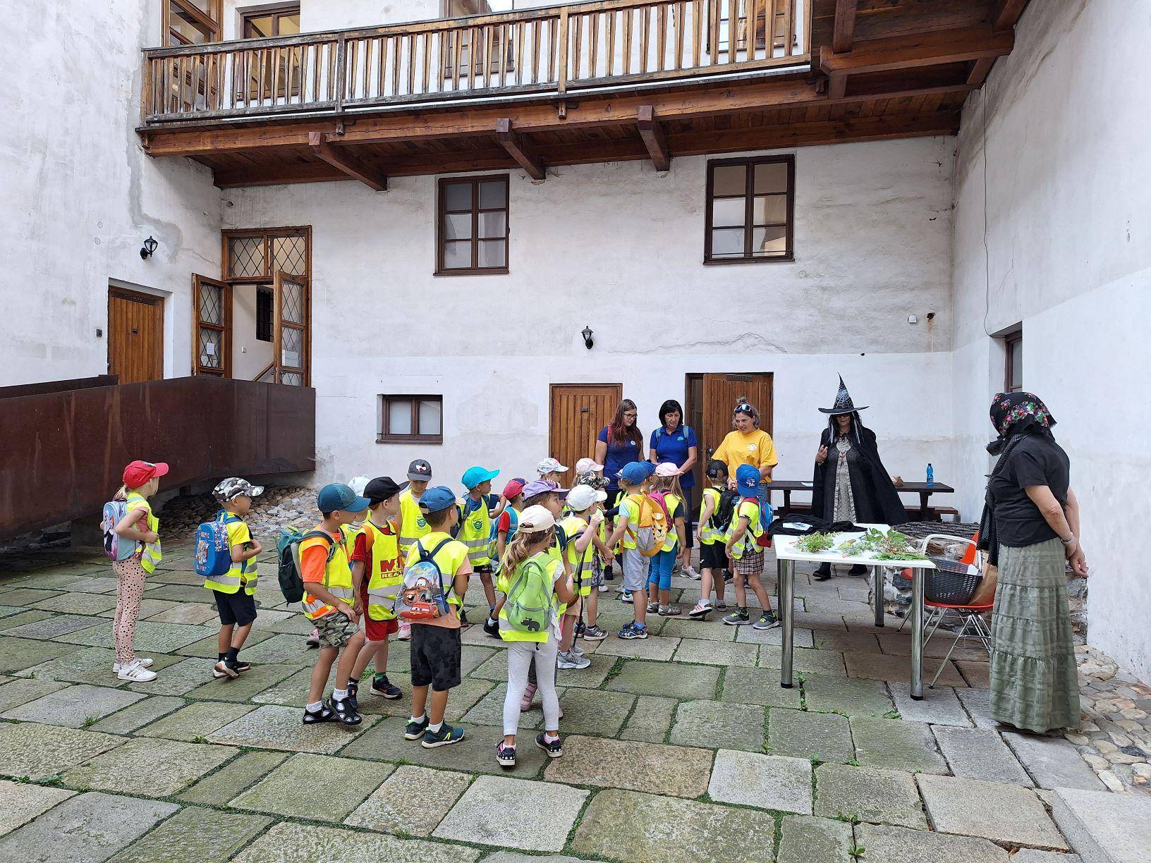 Na nádvoří Vodní tvrze se děti setkaly s hodnou čarodějnicí a babkou kořenářkou.13.09.2023 Ve středu 13. září 2023 bylo pro předškolní děti uspořádáno zábavné dopoledne na téma „Poznáváme region“, do něhož se Vlastivědné muzeum Jesenicka rádo zapojilo. Na každé zastávce děti plnily úkoly a dozvěděly se spoustu zajímavostí z jesenického regionu. Získaly nejen nové znalosti, ale také pěkné odměny, které si odnesly domů na památku. Akce se zúčastnilo přibližně 70 nadšených dětí z celkem tří mateřských škol. Celou akci připravila SVČ DUHA Jeseník a Vzdělávání Jesenicko, a to s finanční podporou odboru školství, kultury a sportu MěÚ Jeseník. | |