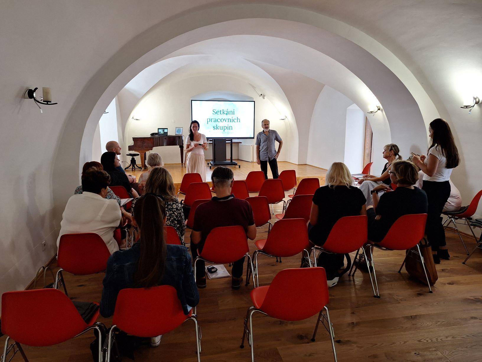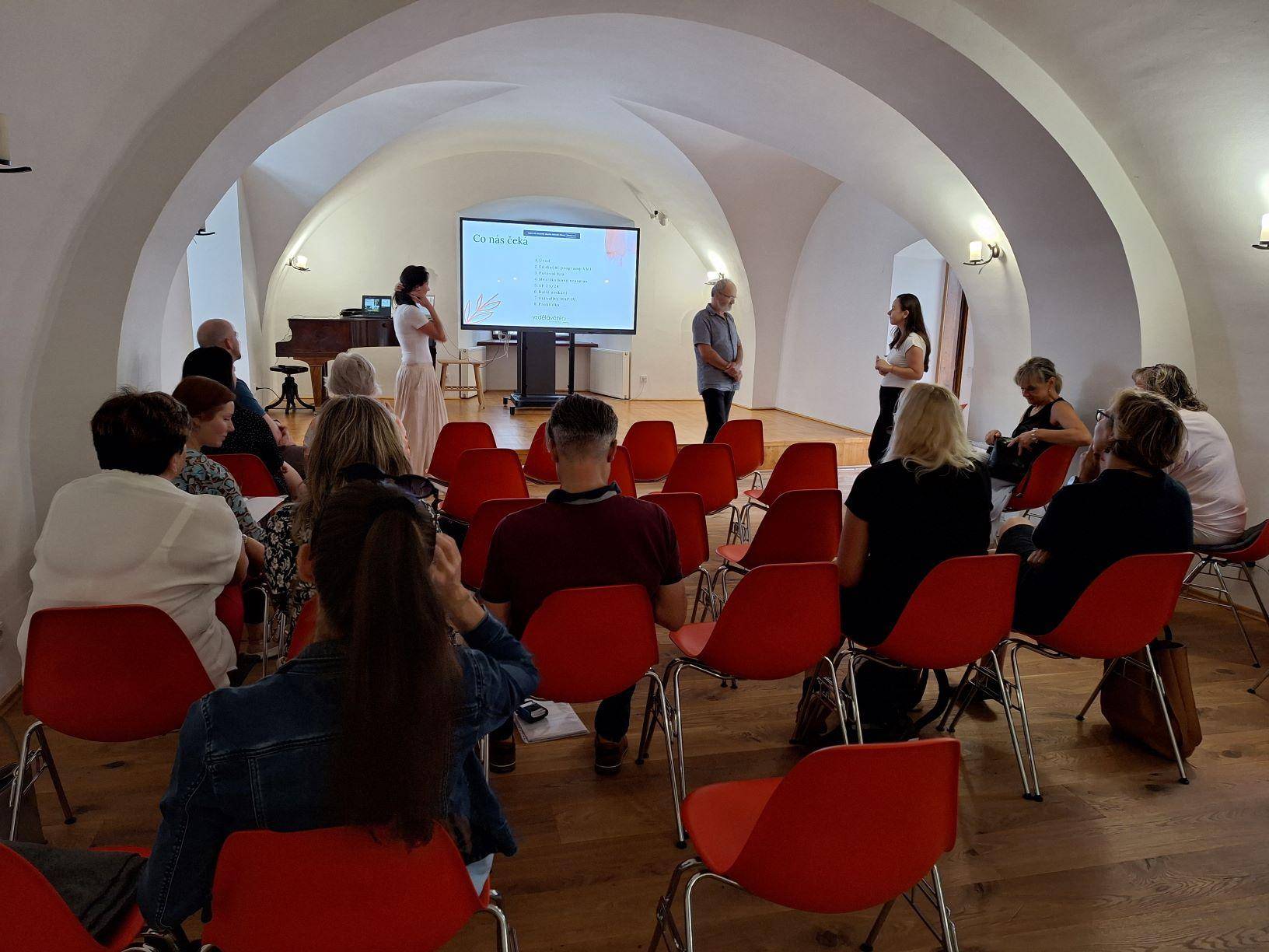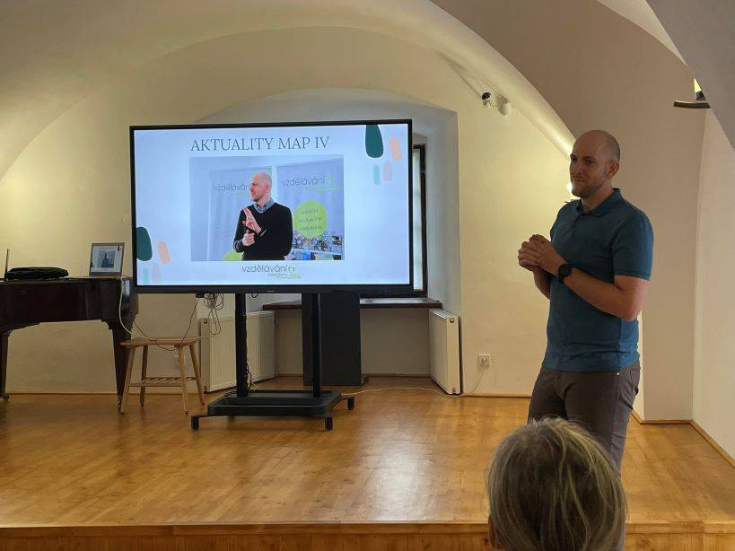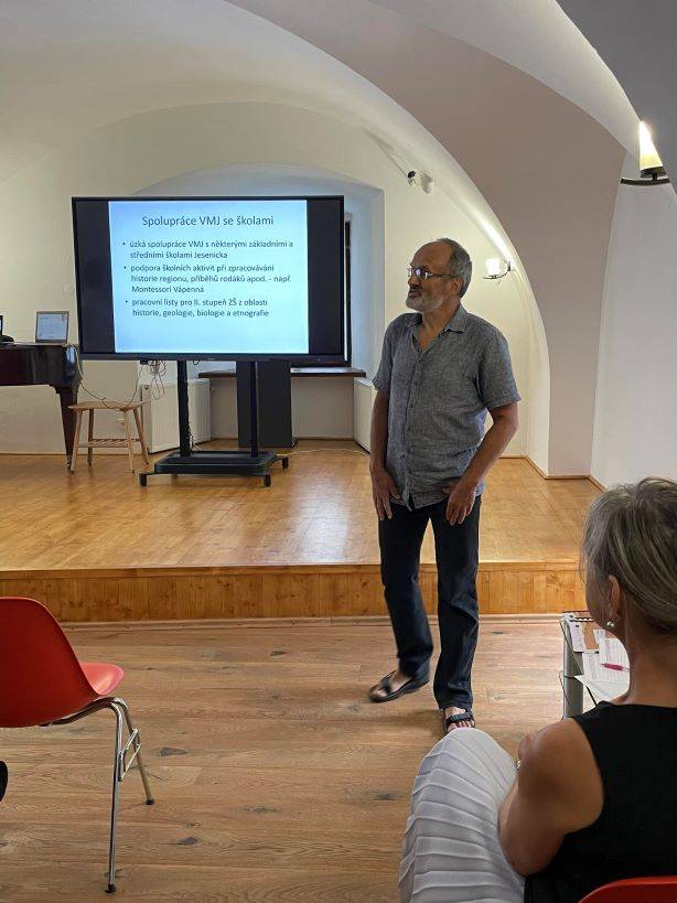 Setkání pracovních skupin projektu MAP Jesenicko III ve Vlastivědném muzeu Jesenicka21.09.2023 Dne 21. září se v prostorách Rytířského sálu Vodní tvrze v Jeseníku konalo poprázdninové setkání pracovních skupin projektu MAP Jesenicko III. Členové realizačního týmu MAP se rozhodli pojmout společné setkání poněkud netradičně a inspirovat členy pracovních skupin i ostatní pedagogy Jesenicka právě návštěvou Vlastivědného muzea Jesenicka. V úvodu se chopil slova pan Pavel Macháček (zaměstnanec VMJ), který stručně, avšak výstižně představil aktivity muzea, nabídku spolupráce se školami a také prozradil, co nabízí místní expozice, do kterých mohli členové pracovních skupin nahlédnout. Po zajímavé prohlídce se účastníci setkání u dobré kávy a drobného občerstvení v příjemné atmosféře Rytířského sálu dozvěděli pár důležitých informací k připravovanému projektu MAP IV. Dále si prohlédli výtisky k Putovní hře, na níž v průběhu předchozího školního roku pracovali a která v září na mnoha školách a školkách již odstartovala. Také příští společné setkání pracovních skupin proběhne právě na tomto místě v rámci positivJE festivalu. | |