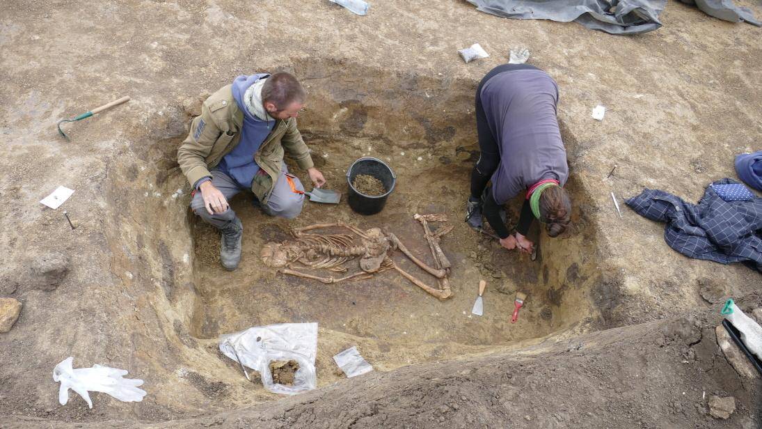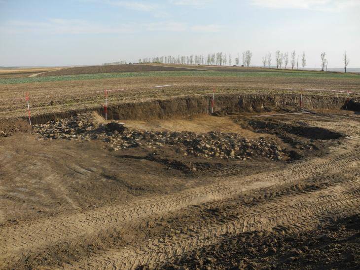 Vlastivědné muzeum Jesenicka se zapojilo do mezinárodního záchranného archeologického výzkumu v Rumunsku18.10.2023 Pracovníci Vlastivědného muzea Jesenicka a Slezského zemského muzea v Opavě spojili své síly s regionálním muzeem v rumunském Botoșani ve snaze předejít destrukci ohrožených archeologických lokalit dokumentujících počátky raných indoevropských kultur v Evropě. Rumunská župa Botoșani leží v severovýchodní části země na hranici s Moldavskem a Ukrajinou. Co do povahy krajiny lze region charakterizovat jako nejzápadnější výspu rozsáhlé ponticko-kaspické stepi táhnoucí se od jihoruského Uralu a západního Kazachstánu přes severní část Kavkazu až do východní Evropy. Stepní plošiny jsou se svou úrodnou černozemí poměrně intenzivně hospodářsky využívány, což má ovšem neblahý vliv na archeologické dědictví, které je stále výrazněji ohrožováno rozvíjející se těžkou mechanizací v zemědělství. Zvyšující se hloubka orby poškozuje dříve nedotčené archeologické lokality a vyžaduje neodkladný zásah archeologické obce. Vzhledem k rozsahu ohroženého území a četnosti archeologických lokalit je však důkladný archeologický výzkum nad kapacitní možnosti našich rumunských kolegů, což dalo vzniknout mezinárodnímu partnerskému projektu, který si klade za cíl rozvoj odborné spolupráce na archeologickém výzkumu v regionu Botoșani, do nějž po boku Slezského zemského muzea v Opavě vstoupilo v roce 2023 také Vlastivědné muzeum Jesenicka. Terénní část archeologického výzkumu byla roce 2023 realizována ve dnech 1. až 15. října 2023 na katastrálním území obce Flămânzi (asi 40 kilometrů jihovýchodně od centra Botoșani). Terénní prospekce a polní sběry daly vzniknout podezření na existenci pravěké mohyly (v tomto prostředí označované termínem kurgan) v prostoru zemědělsky intenzivně využívaného pole jihovýchodně od centra Flămânzi. Toto podezření se záhy potvrdilo díky použití geofyzikální metody magnetometrie, kterou na lokalitě aplikovali naši němečtí kolegové z Institutu pro pravěk a ranou dobu dějinnou při Friedrich-Alexander Universität Erlangen-Nürnberg. Na výstupech z prospekce se projevila kruhovitá struktura o úctyhodném průměru 35 metrů, která vykazovala také nepříliš zřetelné stopy archeologických objektů podél jejího vnitřním perimetru. Bylo proto rozhodnuto o zahájení odkryvu struktury, a to formou pravoúhlých sond, jejichž delší strana byla rovnoběžná s průměrem kruhové struktury a respektovala směr současné orby. Po odstranění ornice se záhy ukázalo, že vnější povrch původního kurganu byl tvořen kamennou krustou, která se vlivem destrukce v povrchových vrstvách dnes projevuje pouze kamenným prstencem o šířce cca 6 metrů od původního úpatí mohyly. V těle mohyly byla identifikována řada objektů, přičemž za krátkou dobu trvání terénního výzkumu se podařilo odkrýt pouhý zlomek. V prostoru mohyly se doposud podařilo odkrýt celkem tři kostrové hroby (dva dospělí jedinci a jeden kojenec), další mladší pohřeb byl pak identifikován vně mohyly poblíž jejího západního úpatí. Předběžné odhady datují vznik kurganu do období jámové kultury (tj. asi 3300–2500 př. n. l.), kostrový hrob vně kurganu pak na základě poměrně bohaté hrobové výbavy identifikujeme jako pravděpodobně laténský, nicméně tato hodnocení v blízké budoucnosti projdou revizí na základě podrobnějšího vyhodnocení nálezů. Vzhledem k mimořádné velikosti kurganu nebylo možné práce v plánovaném termínu terénní části projektu dokončit. V následujících letech se tak archeologové na tuto lokalitu zcela jistě ještě vrátí. | |