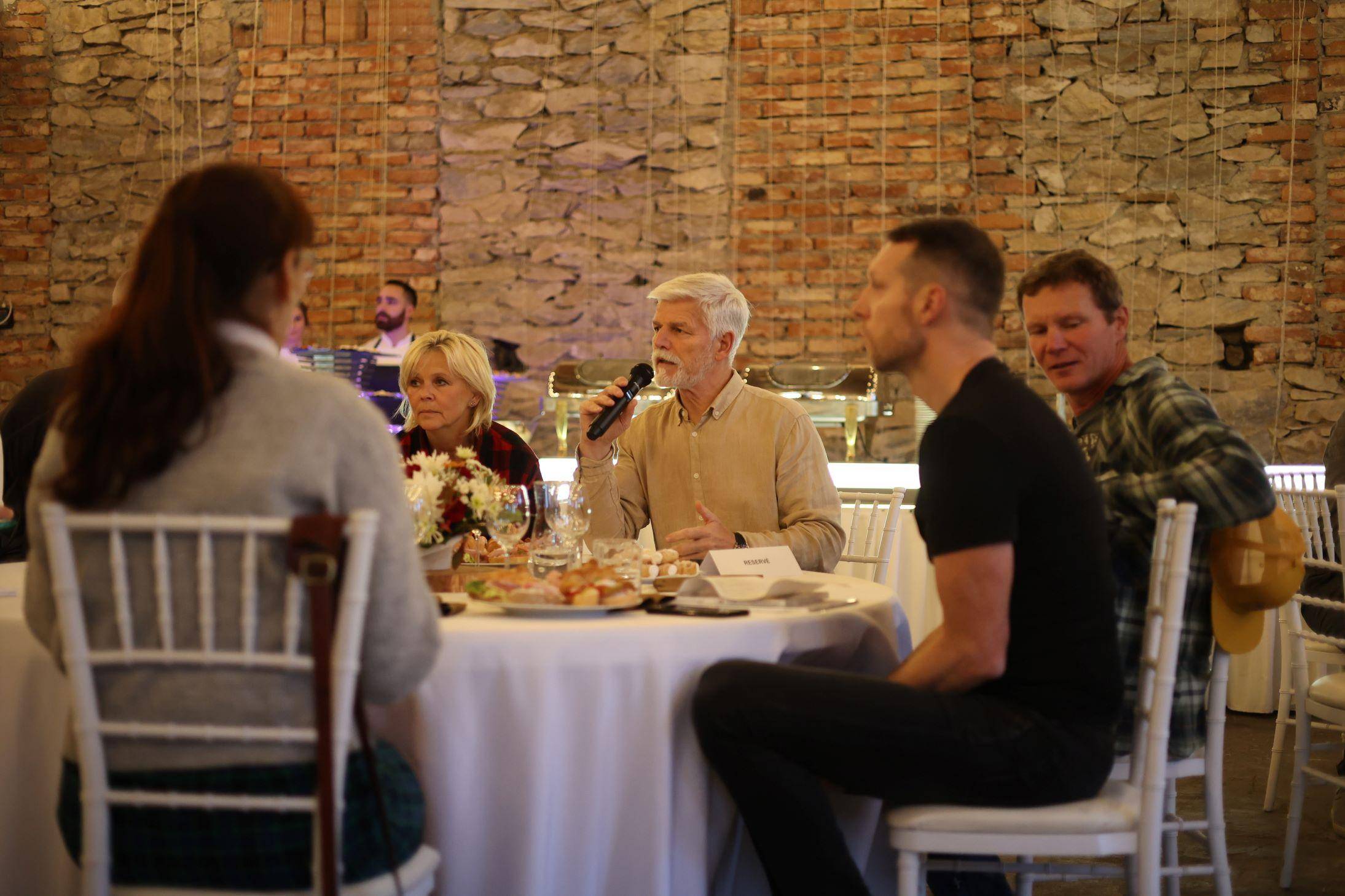 Prezident republiky Petr Pavel v Horní Lipové30.10.2023 Při své návštěvě Olomouckého kraje dne 30. října se prezident republiky Petr Pavel a první dáma Eva Pavlová setkali s několika zástupci regionálních kulturních organizací, menších podnikatelských subjektů, s některými umělci, kreativci či sportovci. Po návštěvě Lesního baru se účastníci setkali v Magacíně Kovárny v Horní Lipové k občerstvení a hlavně k diskuzím o radostech i problémech regionu. Prezident Pavel projevil upřímný zájem o jednotlivé projekty a náměty představené účastníky, mluvilo se o podnikavosti, kreativitě, sociální i kulturní infrastruktuře, o vzdělávání i dopravě. Vlastivědné muzeum Jesenicka na setkání zastupoval ředitel Pavel Rušar, který pana prezidenta a první dámu seznámil s přístupem muzea ke vzdělávání, se zapojováním žáků do různých oblastí muzejní činnosti, s publikační činností muzejních pracovníků a dalšími aktivitami instituce. V průběhu setkání zazněl příslib, že lidé z prezidentské kanceláře se budou tématem dále zabývat. Návštěvu prezidenta Petra Pavla připravila Kancelář prezidenta republiky ve spolupráci s Olomouckým krajem, setkání s jesenickými osobnostmi v Horní Lipové připravil Hrad společně s platformou PositivJE. | |