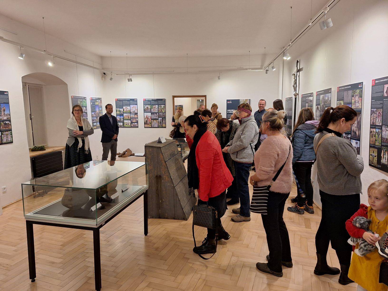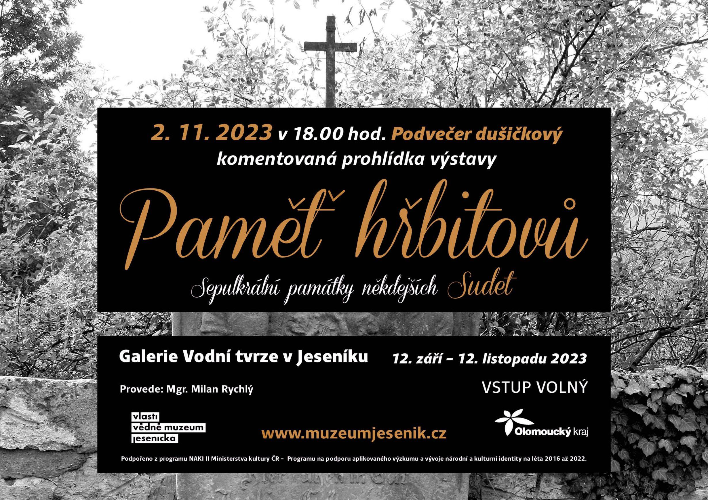 Vydařený podvečer dušičkový v muzeu02.11.2023 Ve čtvrtek 2. listopadu 2023 proběhla v galerii Vodní tvrze komentovaná prohlídka neobvyklé výstavy s názvem Sepulkrální památky někdejších Sudet kurátorů Mgr. Petry Hečkové, Ph.D., a Mgr. Milana Rychlého, archeologa VMJ, která seznamuje s fenoménem historických hřbitovů, jak se vyvíjely od josefínských reforem až do poloviny 20. století. Datum komentované prohlídky přirozeně nebylo zvoleno náhodně, vždyť druhý listopadový den je již více než tisíc let veden jako „In commemoratione omnium fidelium defunctorum“, tedy Památka zesnulých. V 18.00 hodin se sešli návštěvníci v galerii Vodní tvrze v Jeseníku, kde je přivítal ředitel VMJ Mgr. Pavel Rušar. Následně již představil oba kurátory a poté nechal zaznít podmanivé tóny saxofonu pod taktovkou etnografa VMJ Mgr. Matěje Mately, který smutným židovským klezmerem a optimistickými americkými gospely skvěle určil atmosféru celého večera – obsahem výstavy je sice pochmurné téma, ovšem je natolik nevyhnutelné, že vlastně není důvod se jím nechat rozlítostnit. Odlehčenou formu ostatně zvolili ve svém vyprávění i sami kurátoři. Jak např. trefně podotkl Milan Rychlý: „Až někdy půjdete na hřbitov, udržujte pořádek – jednou to bude i vaše bydliště.“ Výstavu budete moci zhlédnout do 12. listopadu. | |