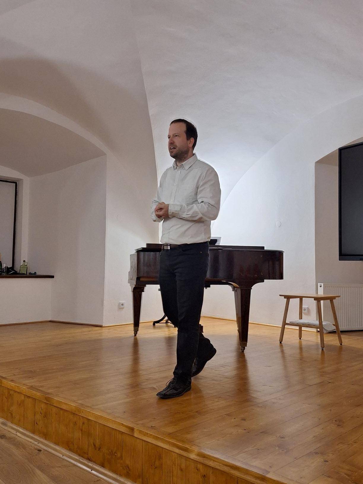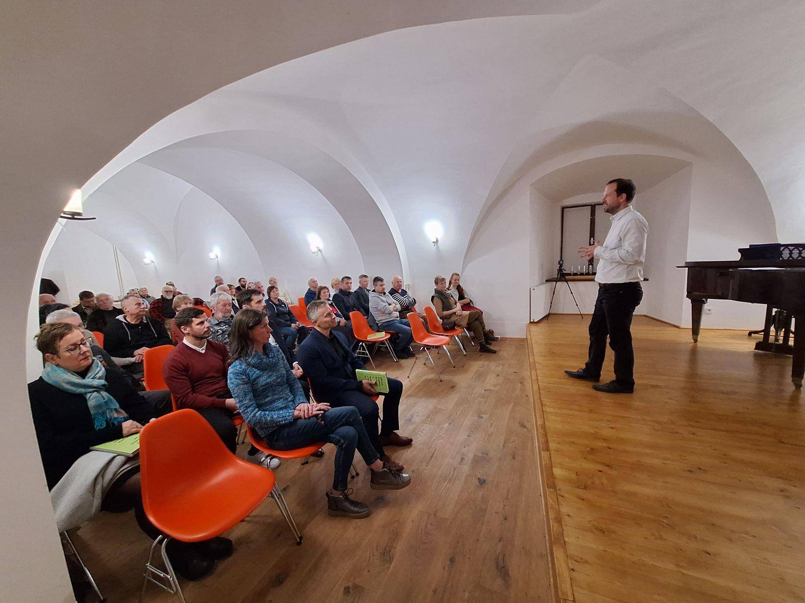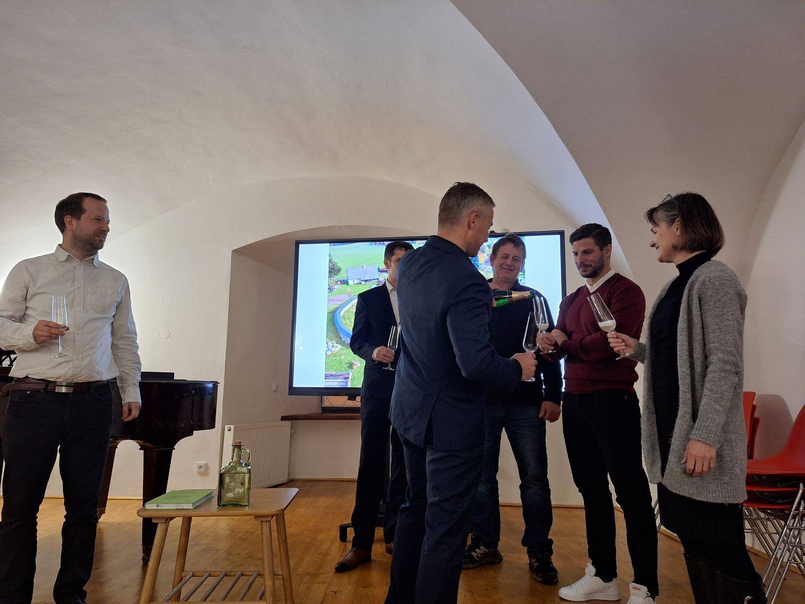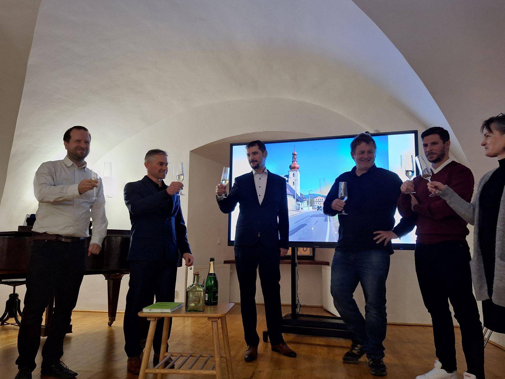 Křest knihy o dějinách obce Bělá pod Pradědem09.11.2023 V podvečerních hodinách ve čtvrtek 9. listopadu 2023 proběhl ve Vodní tvrzi křest knihy Bělá pod Pradědem 60 let & Adolfovice a Domašov 740 let, která syntetickým způsobem pojednává o dějinách obce Bělá pod Pradědem včetně všech jejích soudobých částí. Knihu několik let připravovali současní i bývalí pracovníci Vlastivědného muzea Jesenicka, externí spolupracovníci a zaměstnanci obecního úřadu, to vše za spolupráce s mnoha dobrovolníky a pamětníky z obce. Setkání zahájil ředitel muzea Pavel Rušar krátkou retrospektivou, zavzpomínal na několik pracovních setkání s bývalým starostou obce M. Kružíkem, s nímž začal před pěti lety návrh zpracování dějin obce projednávat, a za spolupráci poděkoval i současnému starostovi R. Neugebauerovi. Ten se vzápětí ujal slova a z jeho rukou také vylétl špunt slavnostní lahve šampaňského. Křtilo se však vodou z pramene řeky Bělé. Večer obohatila panelová diskuze s autory, promítání historických i současných fotografií a také tóny klavíru v podání Josefíny Jankové. Textovou část knihy vytvořili historikové Jan Petrásek, Božena Kaňáková, Kamil Tomášek a Jan Stejskal, pracovník popularizace regionální vlastivědy Pavel Macháček a archeolog Milan Rychlý. Kniha se zabývá historií obce od pravěkých nálezů až po soudobé dějiny. Zakoupit ji můžete ve Vodní tvrzi v Jeseníku či na obecním úřadě Bělé pod Pradědem. | |