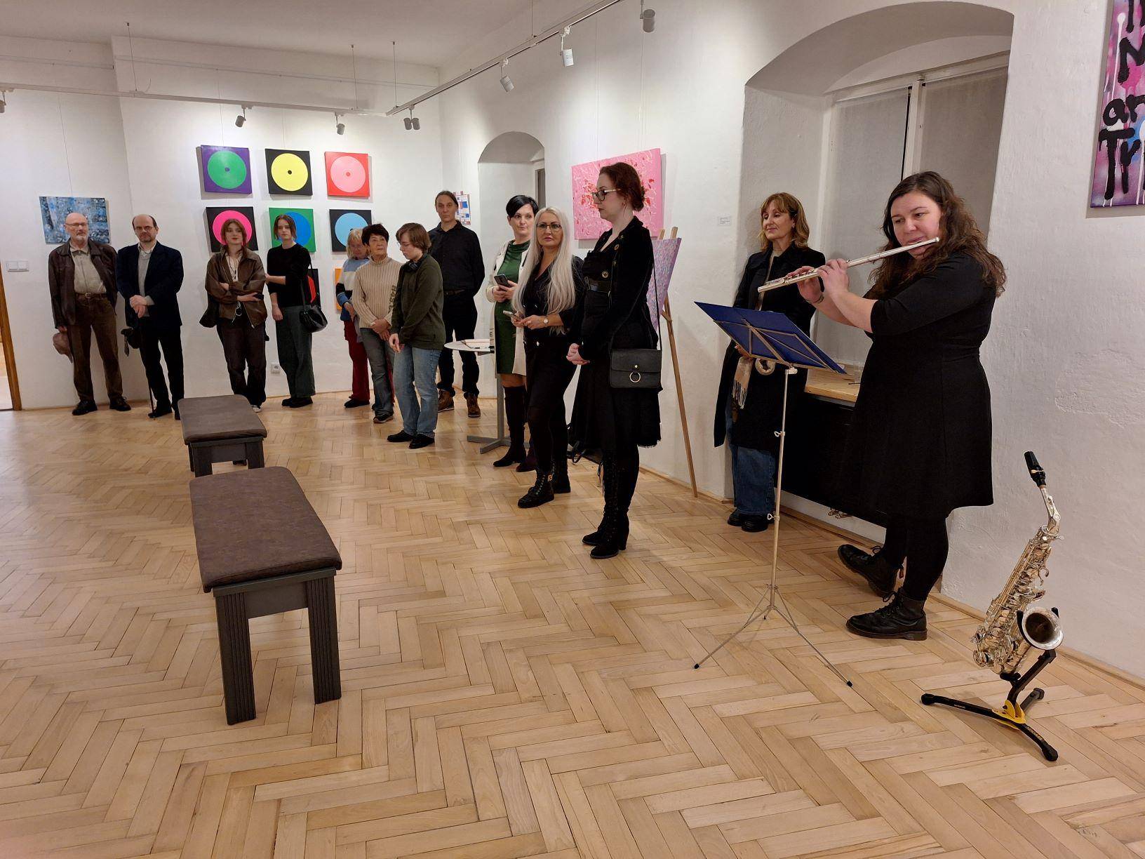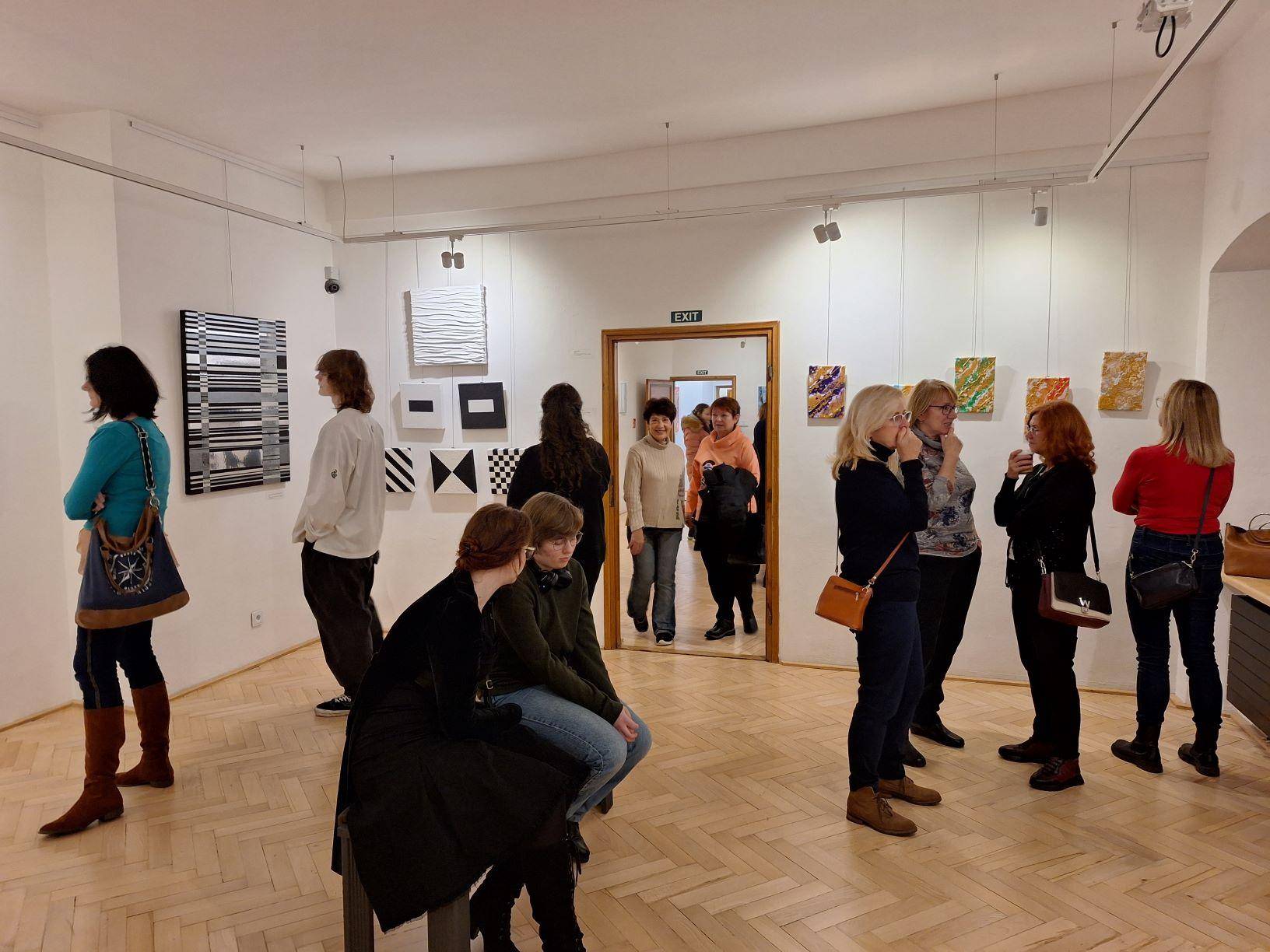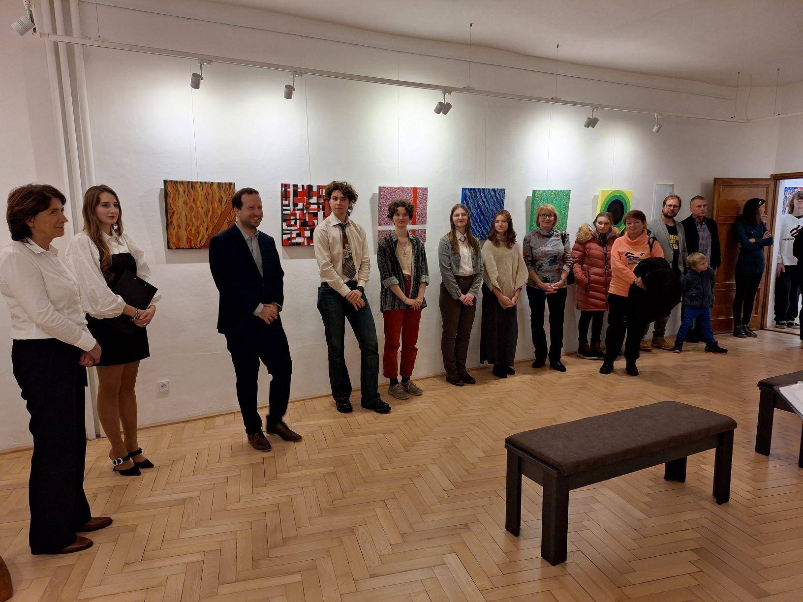 Výstavy abstraktních obrazů zahájeny21.11.2023 Dne 21. listopadu byly v podvečerních hodinách ve Vodní tvrzi společnou vernisáží zahájeny dvě výstavy abstraktního umění. Výtvarnice Janette de la Colette představila výstavu s názvem Čas magického kraje, jejíž součástí je kromě dalších autorčiných děl také série Jesenicko na abstraktní malbě. Šest obrazů této série navozuje atmosféru smělých i tragických jesenických příběhů či přírody horského regionu. Výstava Na vlnách poznání, která tvoří jakési entrée v předsálí hlavní výstavy, byla představena mladými biology, studenty, kteří se kromě exaktní vědy věnují také uměleckému řemeslu, rovněž abstraktnímu. Na vernisáži přivítal hosty ředitel muzea Pavel Rušar společně se starostkou města Jeseníku Zdeňkou Blišťanovou. Oba uvítali neobvyklé téma, zejména pokus o odraz krajiny a kulturní identity v malbě. Zatímco Pavel Rušar zproblematizoval možnosti abstraktního umění ve smyslu zrcadlení historie a přírody, Zdeňka Blišťanová se zaměřila na zapojení mladých umělců v podobě výstavky v předsálí. Výtvarnice Janette de la Colette vyzvala přítomné, aby se soustředili na emoce a intuici a aby potlačili touhu po rozumovém nahlédnutí obrazů. Mladí umělci zase prezentovali význam abstrakce a umění pro jejich život. Hudebně vernisáž doprovodila Veronika Kroupová ze Základní umělecké školy Jeseník, zazněly tóny saxofonu a flétny. Výstava mladých umělců je zpřístupněna ve Foyer Vodní tvrze, výstava umělkyně Janette de la Collete zase v Galerii téže budovy. Druhá zmíněná výstava je prodejní. | |