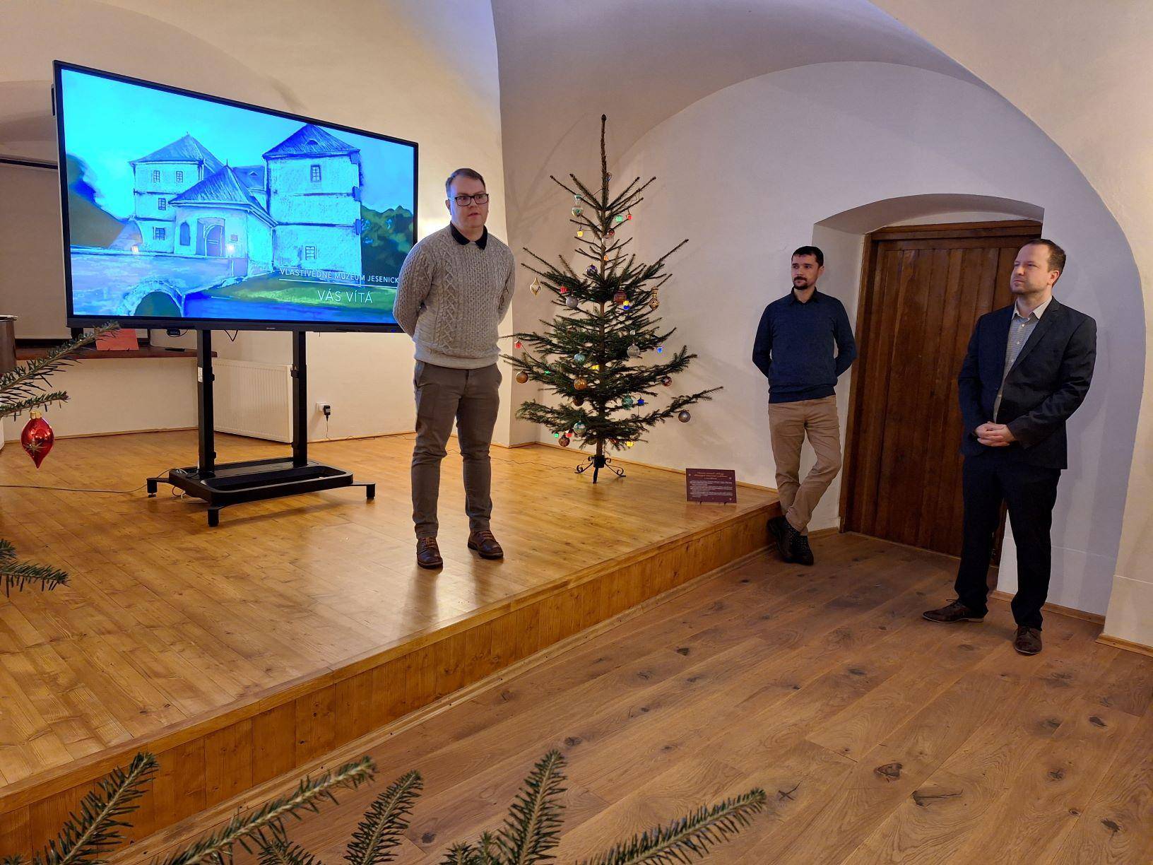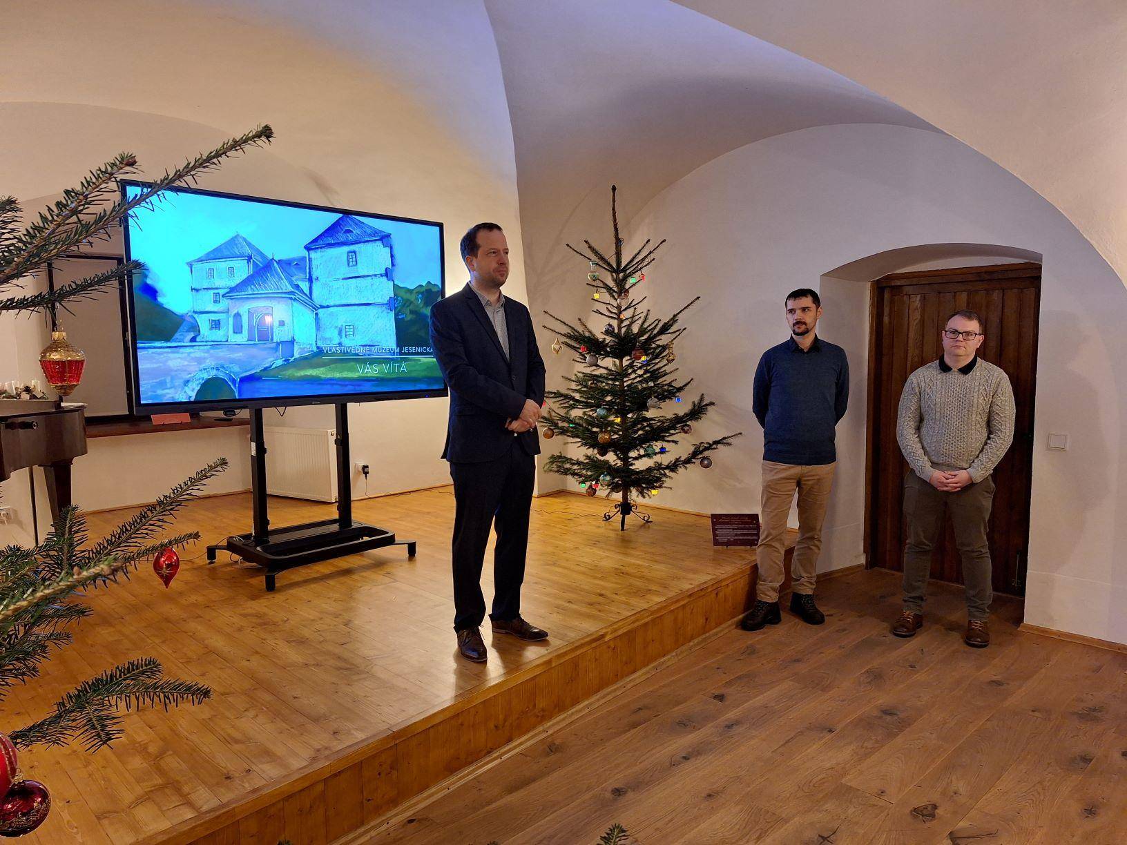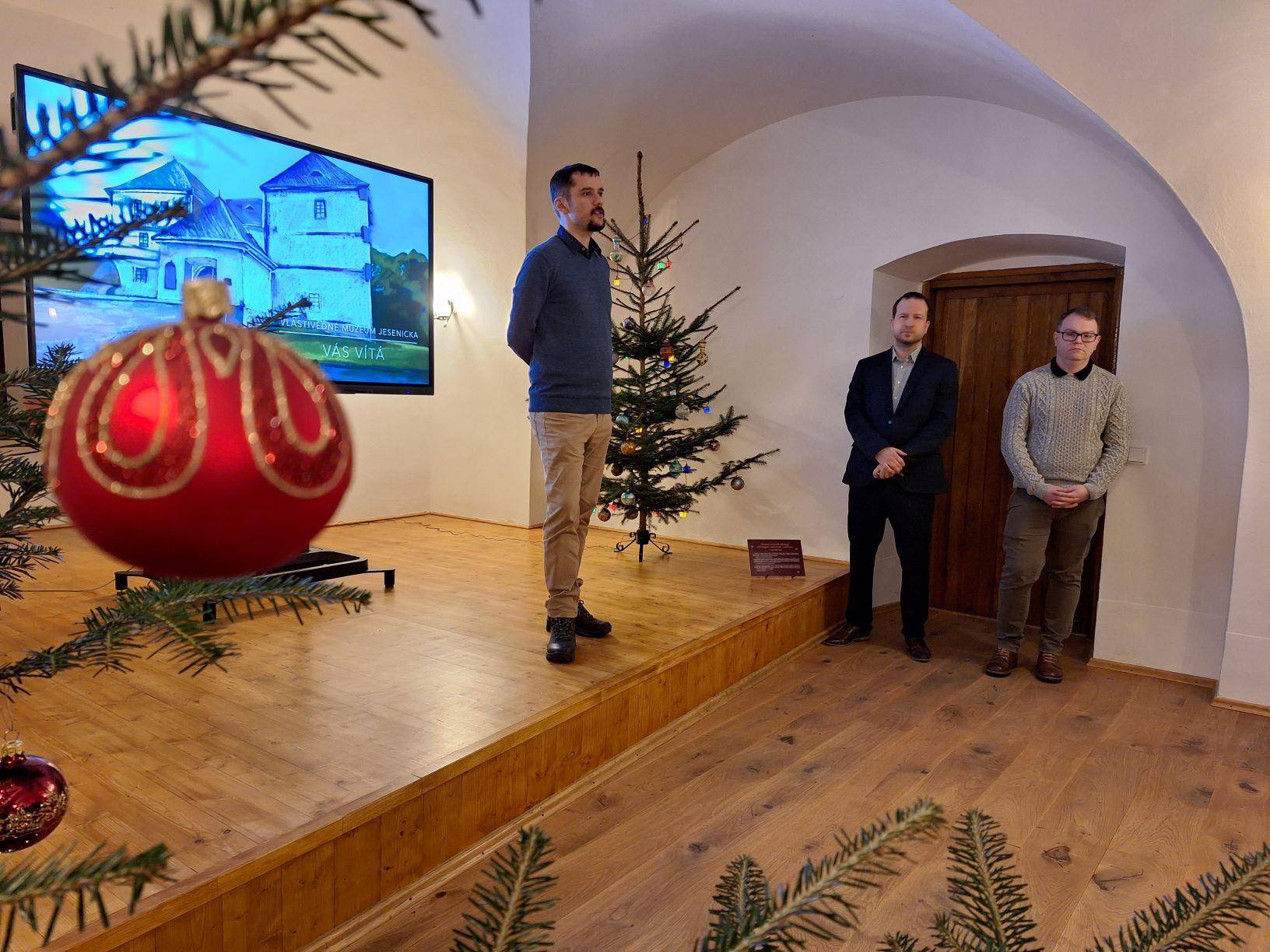 Vánoční výstava ve Vodní tvrzi zahájena12.12.2023 V podvečer 12. prosince proběhla v Rytířském sále Vodní tvrze slavnostní vernisáž výstavy „Vánoce v proměnách času. Od lidových zvyků po moderní trendy“, kterou připravili pracovníci Vlastivědného muzea Jesenicka. Po úvodním proslovu ředitele VMJ Pavla Rušara se návštěvníci od kurátorů Pavla Žurka a Kamila Tomáška dozvěděli zajímavosti o historii a současnosti vánočních tradic, zvyků, symbolů a nechybělo ani zajímavé povídání o současném designu vánočních ozdob. V prostorách výstavy měli návštěvníci rovněž možnost zhlédnout betlémy, vánoční ozdoby a dekorace. Raritou je pak choulivka jerišská, známá jako růže z Jericha, kterou je možné spatřit ve schouleném i rozevřeném stavu včetně semenáčů. Vernisáž hudebně doprovodila hrou na piano Natálie Husťáková a zpěvem vánočních písní v češtině, francouzštině a latině Eva Frenclová. V rámci výstavy budou organizovány tři komentované prohlídky, a to 19. prosince, 11. ledna a 2. února vždy od 15.30 hod. Výstavu bude možné navštívit do 2. února 2024. | |