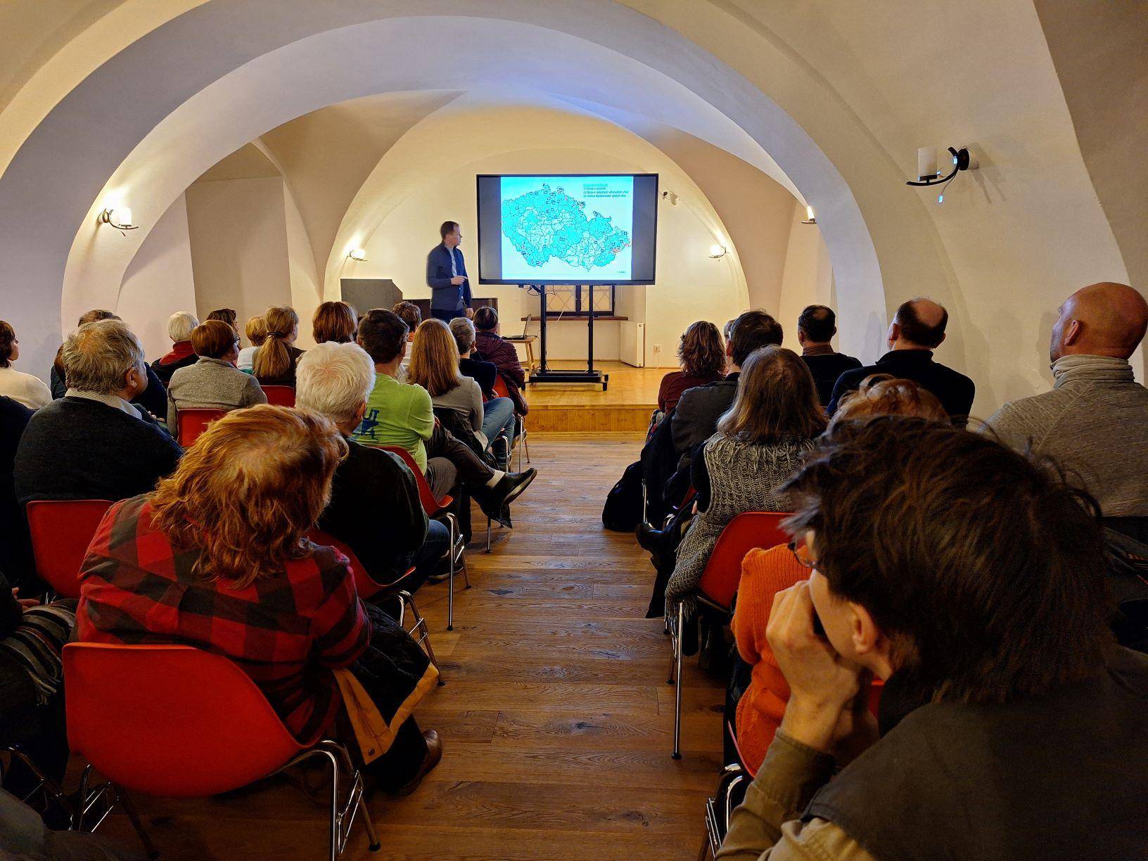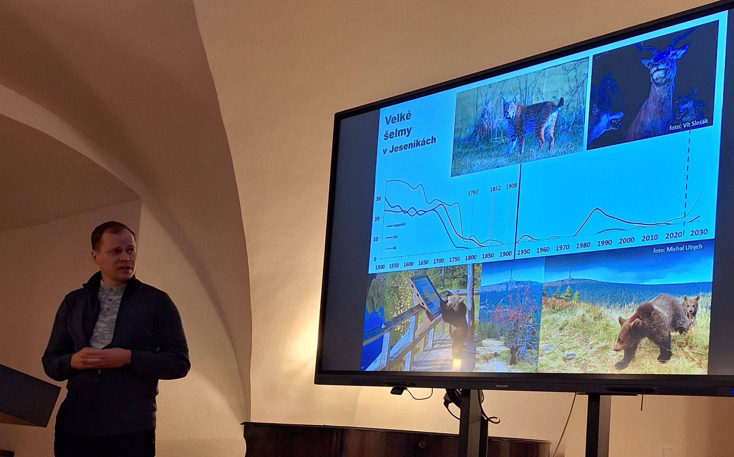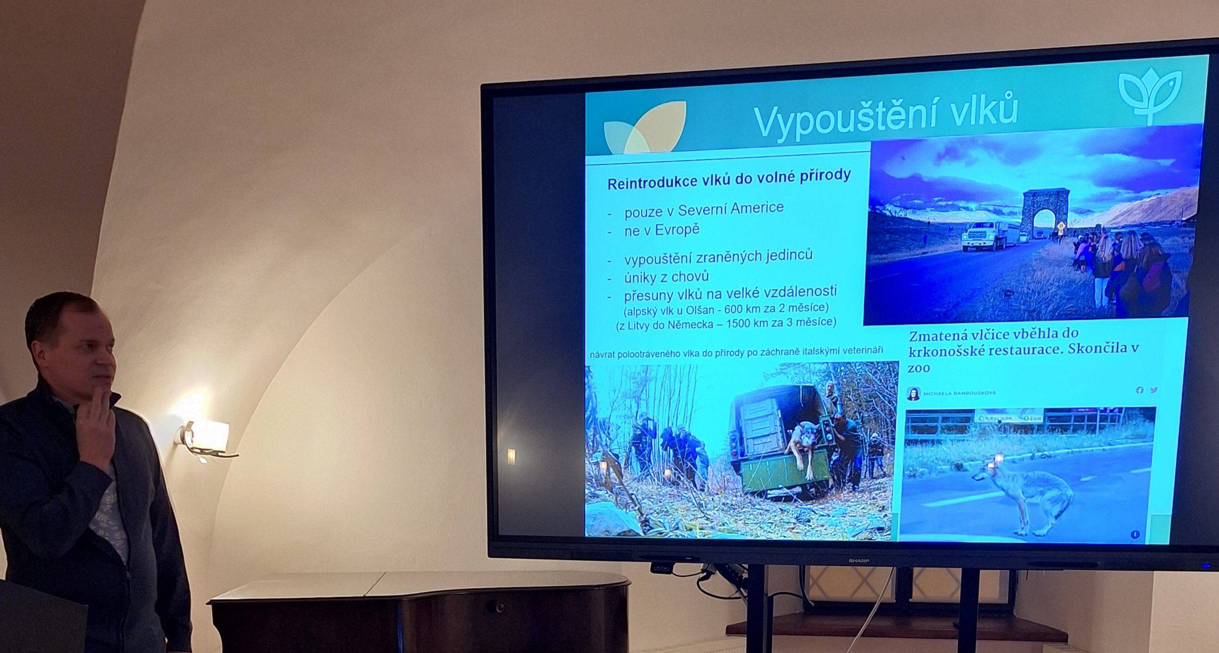 Problematika návratu vlka obecného do České republiky08.02.2024 Ve večerních hodinách 8. února 2024 proběhla v Rytířském sále Vodní tvrze přednáška vedoucího Správy CHKO Jeseníky Mgr. Víta Slezáka, který více než šest desítek návštěvníků seznámil s problematikou návratu vlka obecného do České republiky. Zvláštní pozornost věnoval regionu Jeseníků. Pokusil se rovněž zodpovědět palčivé otázky, např. jestli vlk představuje pro člověka nebezpečí, jak se chovají vlčí smečky v krajině nebo zdali škody způsobené vlkem stát proplácí. Většinu návštěvníků pak potěšil informací o evidovaném trvalém výskytu smečky v Rychlebských horách. Po přednášce se rozproudila živá debata o vlastních zkušenostech či obavách návštěvníků. Více o tomto tématu mohou zájemci najít v posledním čísle časopisu Jeseníky Rychlebské hory 11/2023 ve článku Návrat vlků do Jeseníků. | |
