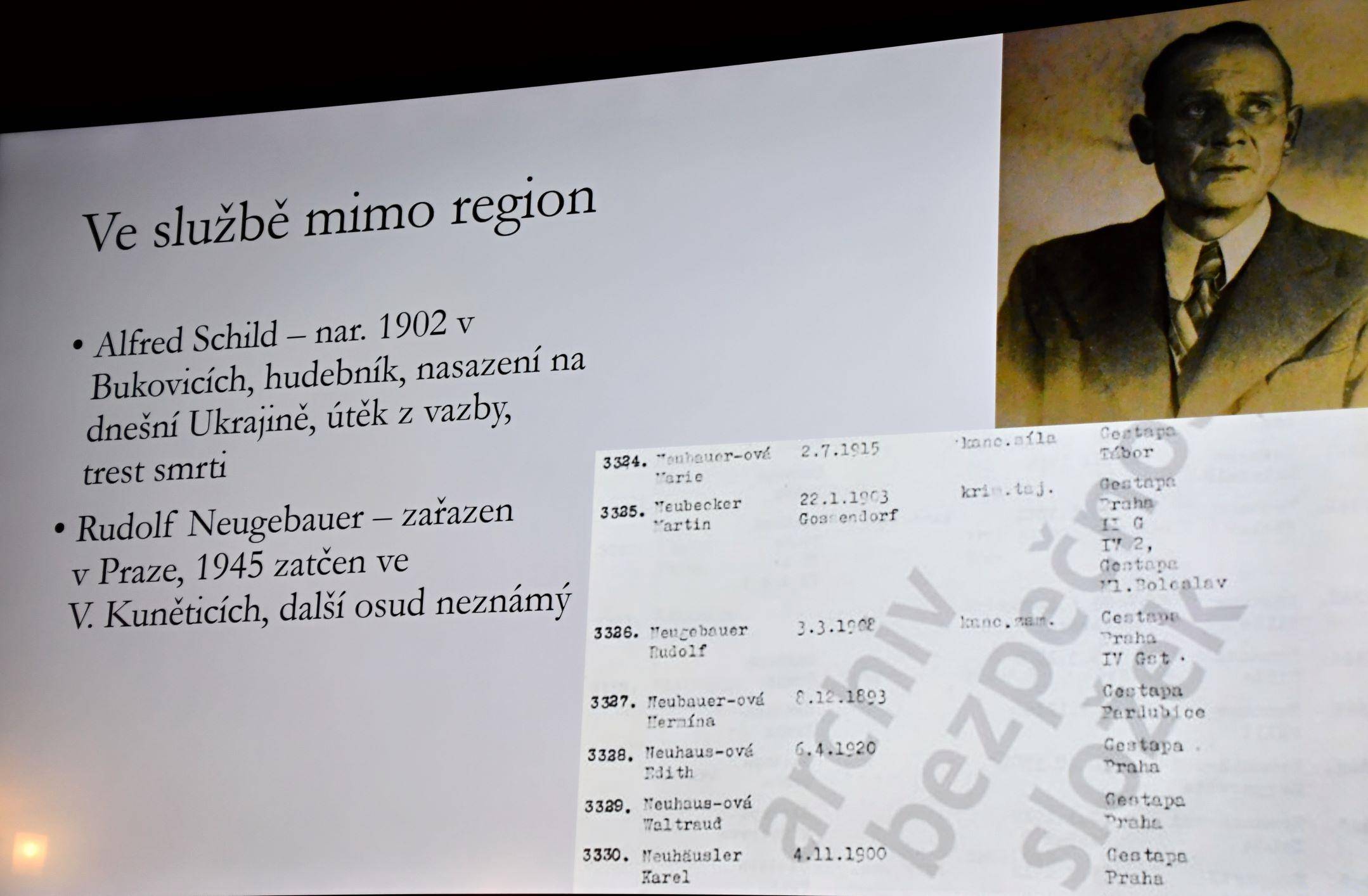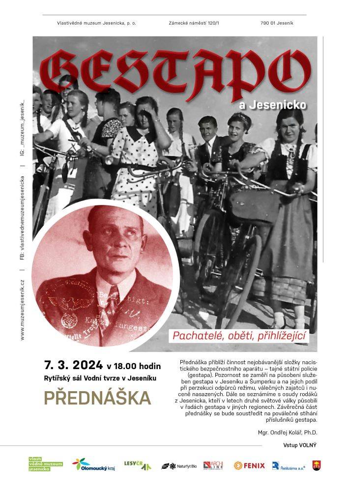 Přednáška přiblížila činnost obávaného gestapa na Jesenicku07.03.2024 Večer 7. března 2024 proběhla v Rytířském sále Vodní tvrze v Jeseníku přednáška historika a externího pracovníka VMJ Ondřeje Koláře s názvem Gestapo a Jesenicko. V úvodu přednášející přiblížil vývoj a úkoly nacistické tajné policie, dále pojednal o struktuře gestapa v okupovaném pohraničí českých zemí. Poté se návštěvníci měli možnost seznámit s činností služeben gestapa v Jeseníku a Šumperku, stejně jako s osudy rodáků z Jesenicka, kteří působili v řadách gestapa mimo region. Závěrečná část přednášky pak seznámila přítomné s událostmi závěru války v regionu, kdy se gestapo podílelo na protipartyzánských operacích i na přípravě sabotáží v týlu postupující Rudé armády. Stručně nastíněno bylo také poválečné stíhání pracovníků a informátorů gestapa. | |