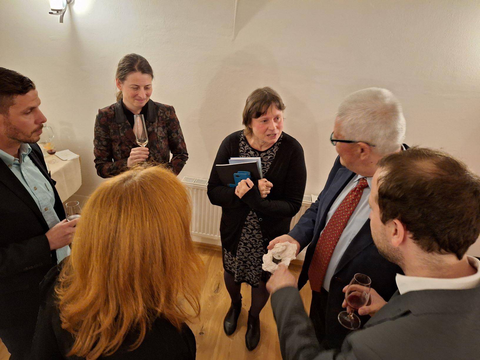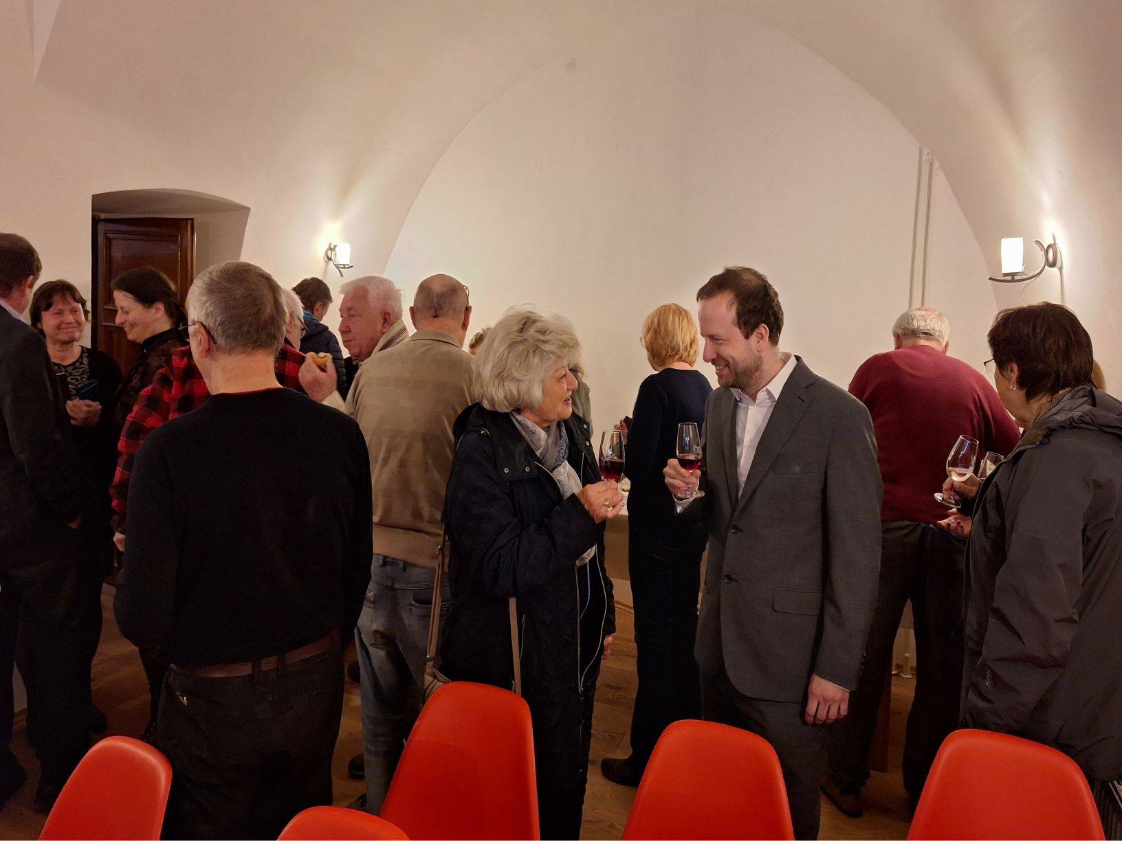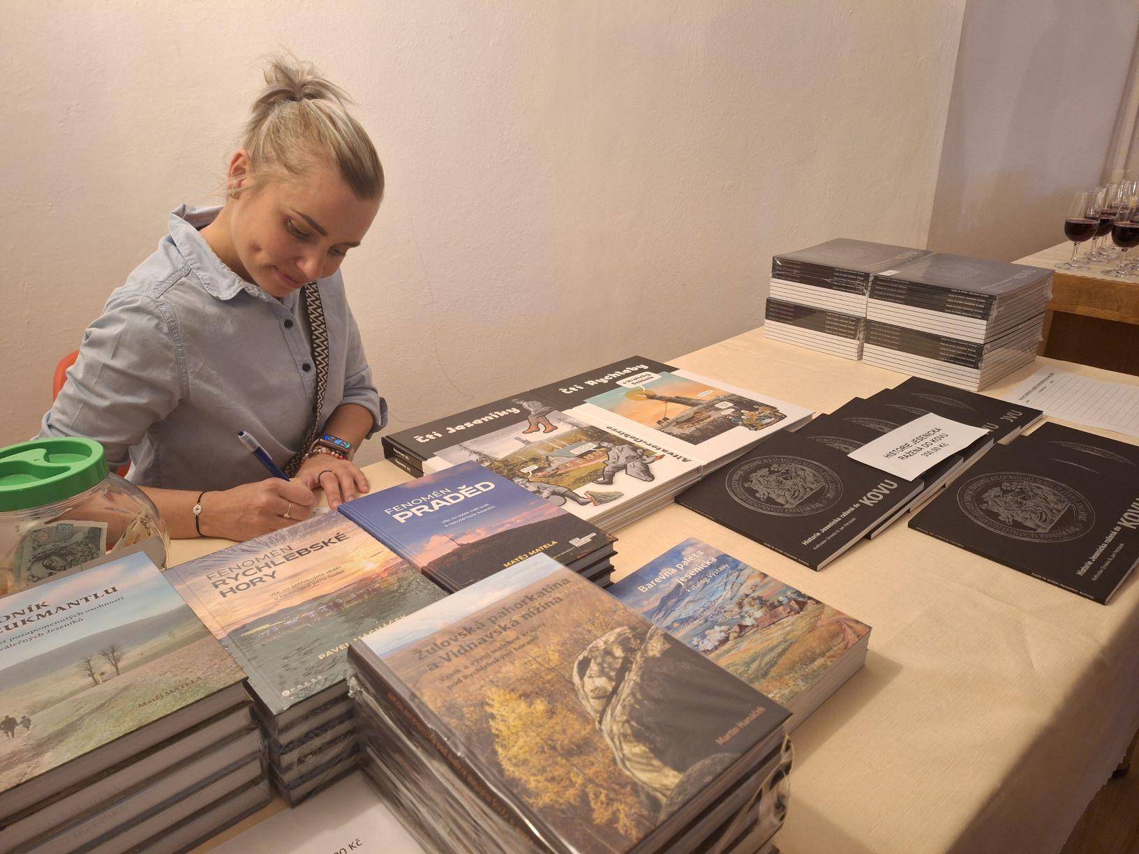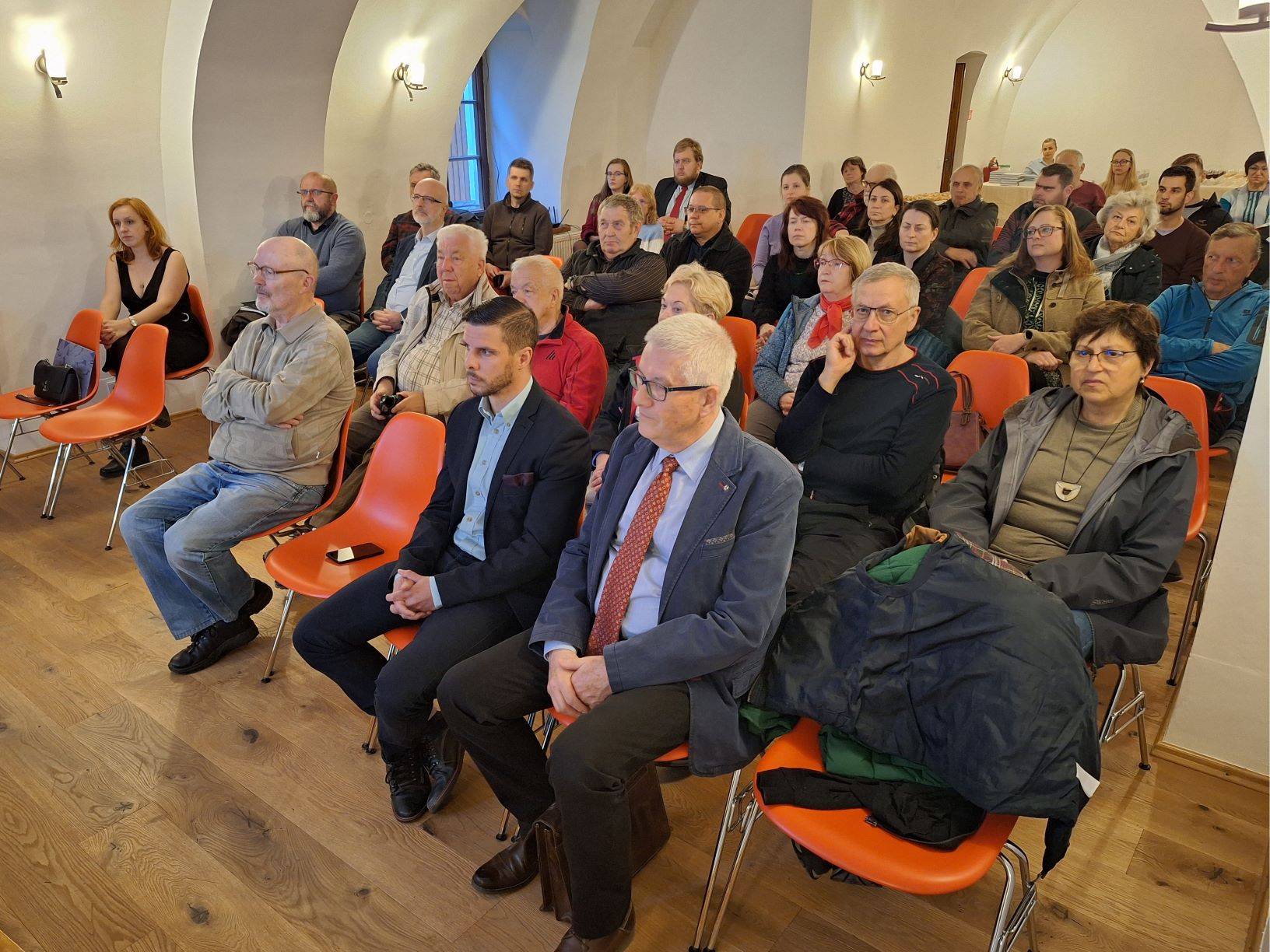 Křest katalogu Historie Jesenicka ražená do kovu23.04.2024 Jako 1. svazek nově založené edice „Katalog Z historických sbírek Jesenicka“ představil 23. dubna 2024 v Rytířském sále Vodní tvrze ředitel Vlastivědného muzea Jesenicka Pavel Rušar společné dílo člena České numismatické společnosti Květoslava Growky a historika VMJ Jana Petráska. Autoři zpracovali dějinný obraz Jesenicka od 19. století do roku 1989 v numismatických, medailérských a faleristických památkách ze sbírky VMJ i spřátelených muzeí v Olomouci, Šumperku a Opavě. Posluchači se dozvěděli i krušné osudy muzejní numismatické sbírky a na několika ukázkách mohli vidět, jak se buduje sbírka nová a jakým způsobem probíhaly práce na katalogu samotném. Křtu se ujal Dr. Petr Holub, člen výboru České numismatické společnosti v Praze a předseda její pobočky ze Šumperka. K překvapení všech byl katalog pokřtěn nikoli obligátním šampaňským, ale s přihlédnutím k jeho tématu zasypán jednohaléřovými mincemi z let 1953–1960. Tóny klavíru v podání Josefíny Jankové přispěly k dobré náladě večera završeného autogramiádou. | |