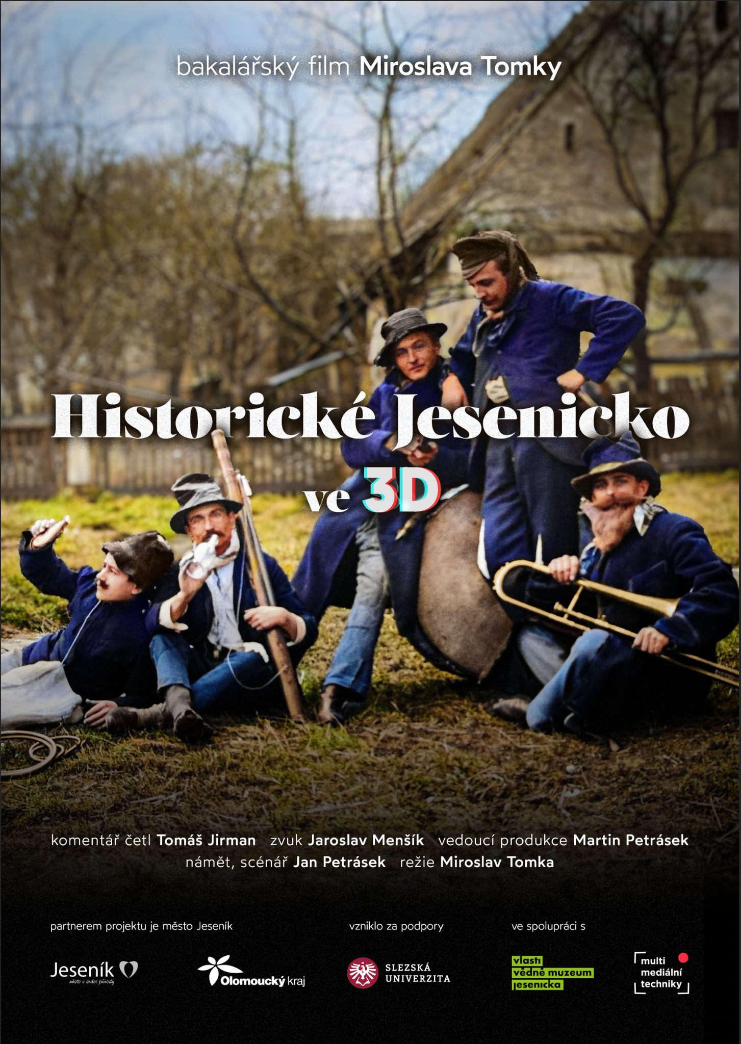 Film Historické Jesenicko ve 3D v premiéře na Academia Film Olomouc26.04.2024 Po zářiové předpremiéře v Jeseníku se snímek „Historické Jesenicko ve 3D“ dočkal v minulém týdnu rovnou dvou premiér ve vylepšené verzi, a to navíc na filmovém festivalu Academia Film Olomouc, kde se mu podařilo dostat do jedné ze soutěžních sekcí. Snímek, který vychází z dochovaných stereonegativů zdejšího fotografa Rudolfa Kleina ze sbírek Vlastivědného muzea Jesenicka, přináší divákovi naprosto originální a nevšední způsob prezentace. Jde o sekvenci fotografií, zachycujících velice často běžný život v regionu na přelomu 19. a 20. století, které prošly pečlivým vyčištěním, nakolorováním a převodem do formátu, který umožňuje jejich trojrozměrné zobrazení. Tohoto úkolu se zhostil student oboru Multimediální techniky na Slezské univerzitě v Opavě Miroslav Tomka, jenž se chopil rovněž režijní taktovky. Ve spolupráci se zmíněnou univerzitou a rovněž v kontextu toho, že se jednalo o Tomkovu bakalářskou práci, dohlížel na dílo z pozice vedoucího produkce Martin Petrásek, vedoucí oboru. O zvukovou stránku se postaral jiný z pedagogů, Jaroslav Menšík. Jednotlivé snímky, resp. na nich zachycená místa či fenomény, scénáristicky propojil historik VMJ Jan Petrásek a tento text poté namluvil ostravský herec Tomáš Jirman. Během dvou projekcí v olomouckém kině Metropol zhlédlo film bezmála 350 diváků, návštěvníků AFO. Velice kladná hodnocení a reakce publika snad dávají tušit podobné festivalové možnosti filmu v budoucnu, s jistotou už však můžeme zájemce dopředu pozvat na jisté opavské a jesenické promítání, zatím bez konkrétních termínů. A rovněž na sbírkový katalog z naší nové ediční řady, který tyto trojrozměrné fotografie představí v knižním formátu, jehož vydání se plánuje na konec letošního roku. "Krátkou reportáž v pořadu Aleše Spurného na ČRo Olomouc o filmu si můžete poslechnout zde od 5:20 minuty." | |