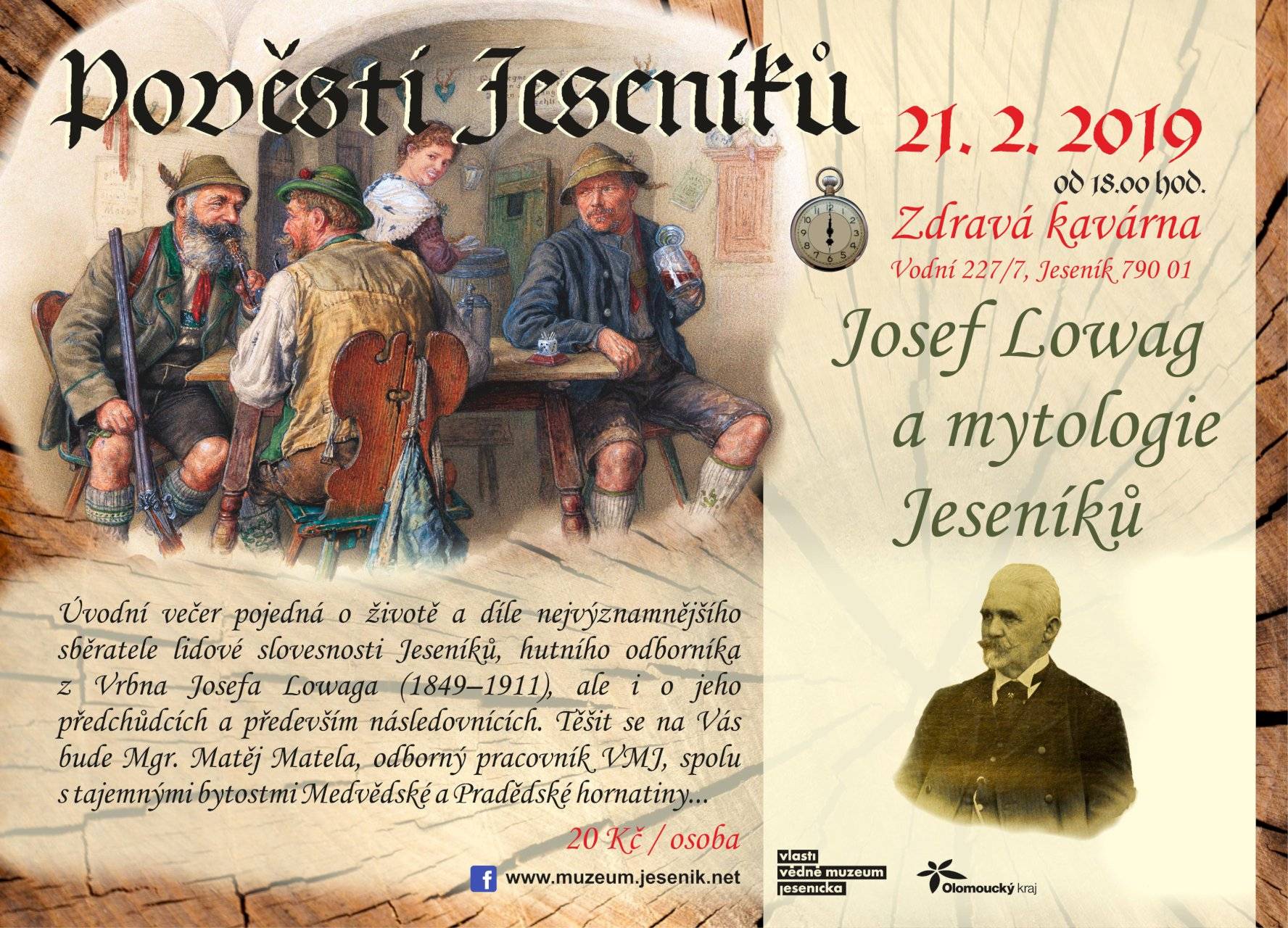 Pověsti Jeseníků: Josef Lowag a mytologie Jeseníků (přednáška)21.02.2019 21. února 2019, Vinárna Zdravá kavárna, přednášel Mgr. Matěj Matela Fotografie