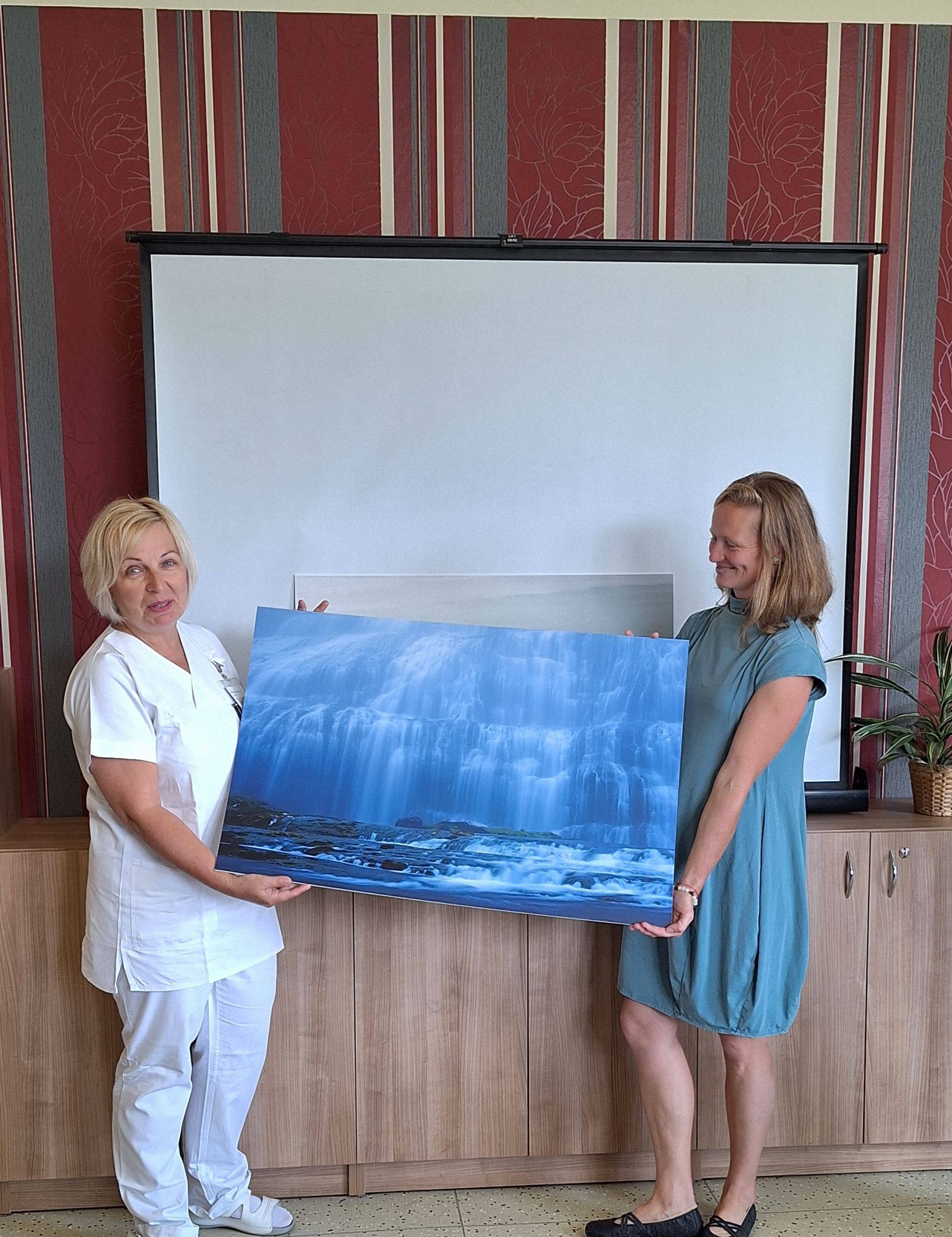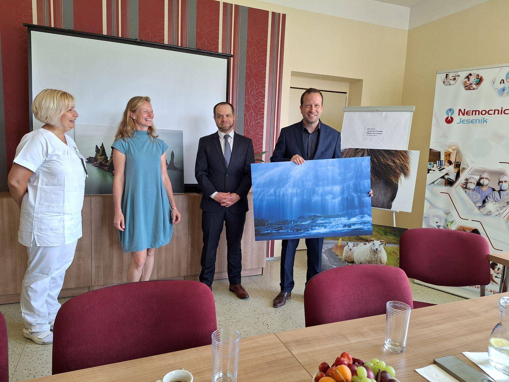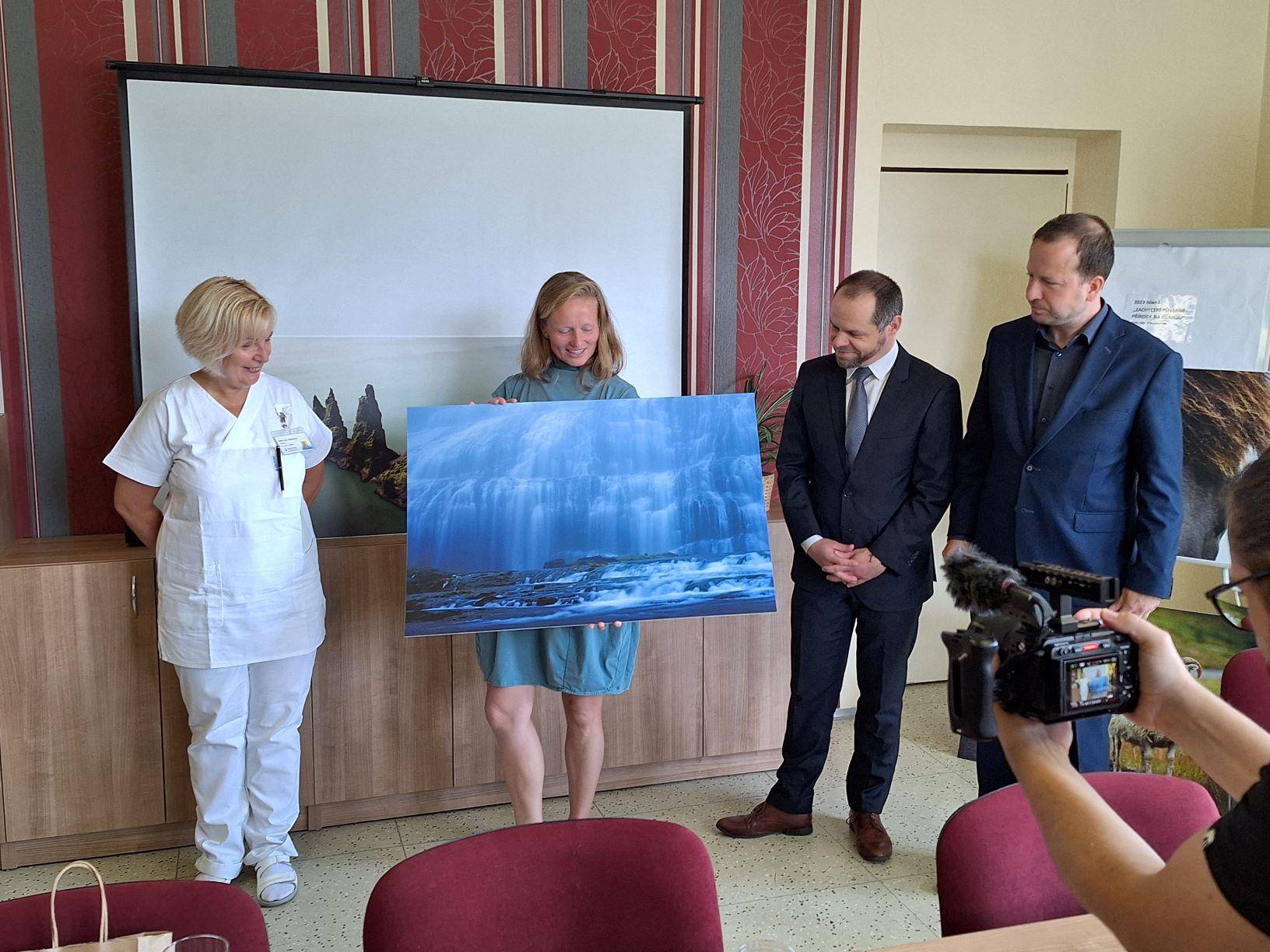 Fotografie z výstavy ISLAND Vlastivědného muzea Jesenicka byly podle hlasování návštěvníků darovány Nemocnici AGEL Jeseník.06.06.2024 Slavnostní předání fotografií se uskutečnilo za přítomnosti pracovníků muzea, pracovníků nemocnice i autorky dne 6. června 2024 od 13 hod. v prostorách nemocnice. Vlastivědné muzeum Jesenicka připravilo na začátku roku 2024 fotografickou výstavu cestovatelky Aleny Ceplové. Od 9. ledna do 25. února 2024 měli návštěvníci možnost nejen obdivovat fotografie úžasných severských scenérií a navštěvovat doplňkové muzejní programy (vernisáž, komentovaná prohlídka), ale také hlasovat o tom, které regionální instituci budou po skončení výstavy darovány vystavené fotografie. Hlasování probíhalo pomocí fazolek, které návštěvníci dostali při vstupu do výstavy a následně je měli možnost vhodit do jedné z nádobek, přičemž každá nádobka představovala návrh jesenické instituce působící v oblasti péče o zdraví či v sociálních službách a vzdělávání. V hlasování zvítězila Nemocnice AGEL Jeseník a fotografie islandské krajiny byly darovány právě jí. „Rádi bychom touto cestou poděkovali všem návštěvníkům za jejich účast na výstavě a za jejich hlasy. Doufáme, že fotografie přinesou radost a inspiraci všem pacientům a personálu nemocnice,“ uvedl ředitel Vlastivědného muzea Jesenicka Pavel Rušar. „Děkuji všem návštěvníkům výstavy, nejen těm, kteří hlasovali pro nás. Myslím si, že veřejnost tímto ocenila práci nejen našich lékařů, ale veškerého personálu, a velmi si tohoto ocenění vážíme,“ dodala ředitelka Nemocnice AGEL Jeseník Jana Chrastinová. Reportáž na youtube zde. Odkaz Šumperský deník zde. | |