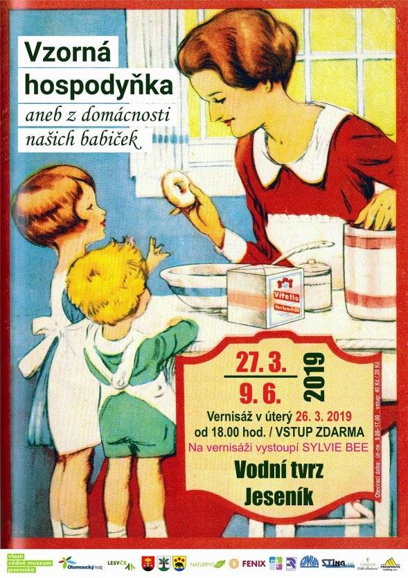 Vzorná hospodyňka aneb Z domácnosti našich babiček26.03.2019 26. března 2019, Hlavní výstavní sál Vodní tvrze Pohled do domácností našich babiček v první polovině 20. století s praktické ukázky z jejich každodenního života. Ve výstavním sále Vodní tvrze jsme náhledli do prvorepublikové kuchyně s důmyslnými přístroji a pomůckami, které šetřily hospodyňkám čas při vaření jídla. Seznámili jsme se s tehdejšími způsoby praní, žehlení a uklízení, jež dokumentují historické pračky, žehličky, mandly nebo první elektrické vysavače. K neocenitelným pomocníkům každé ženy v domácnosti patřily i šicí stroje, které si spolu s dalšími pomůckami k ručním pracím a ukázkami rukodělných výrobků byly na vernisáži k vidění. Ukázky patchworkových technik na schodištích a foyer laskavě poskytnul Patchworkový klub Jeseník v rámci SVČ DUHA Jeseník. | |