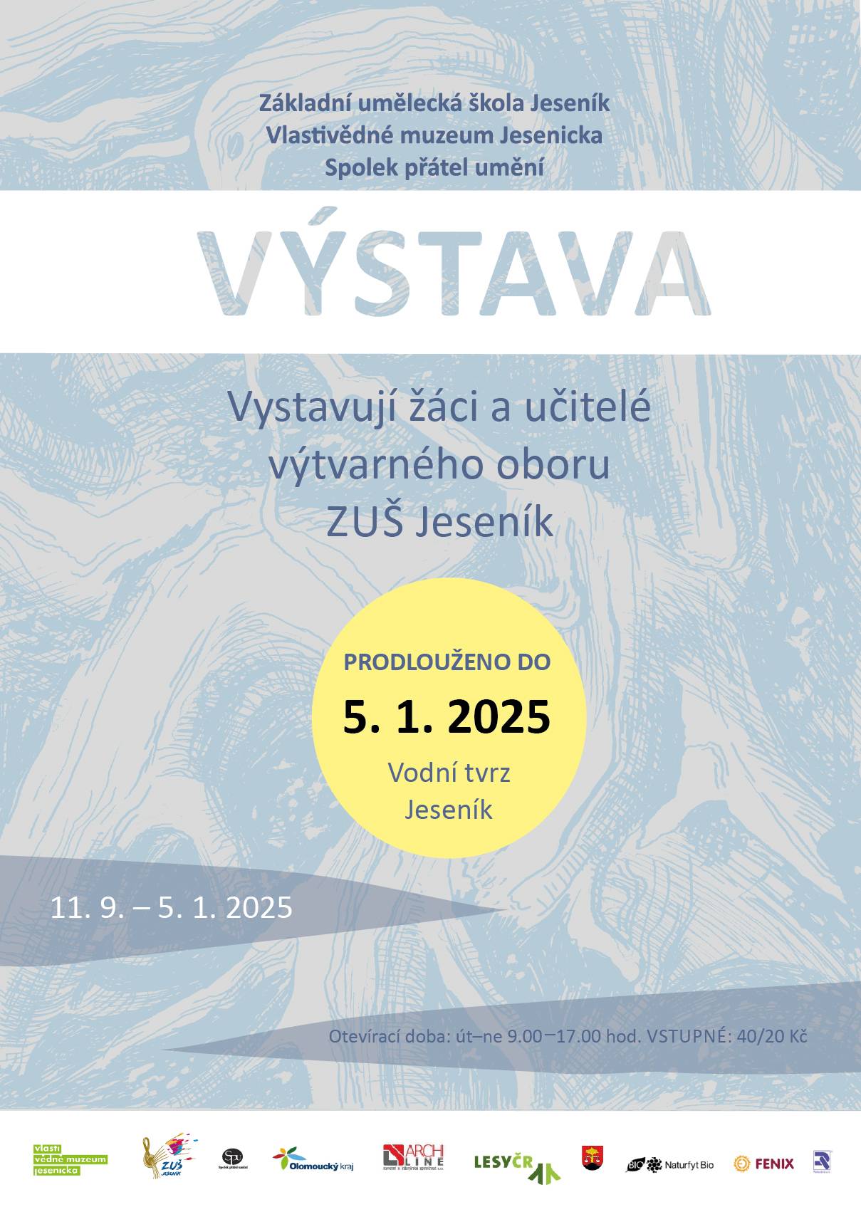 Prodloužení výstav07.10.2024 Vážení návštěvníci, rádi bychom vás informovali, že jsme z provozních důvodů prodloužili dvě probíhající výstavy ve Vlastivědném muzeu Jesenicka: K líci zbraň! Militaria ze sbírek Vlastivědného muzea Jesenicka a Výstavu žáků a učitelů ZUŠ Jeseník. Obě výstavy máte nyní možnost navštívit až do 5. ledna 2025.Výstava K líci zbraň!, která se zaměřuje na zbraně a předměty spojené s fenoménem války, byla navíc doplněna o pracovní listy, jež nabídnou návštěvníkům interaktivnější zážitek a hlubší porozumění vystaveným exponátům. Těšíme se na vaši návštěvu. | |