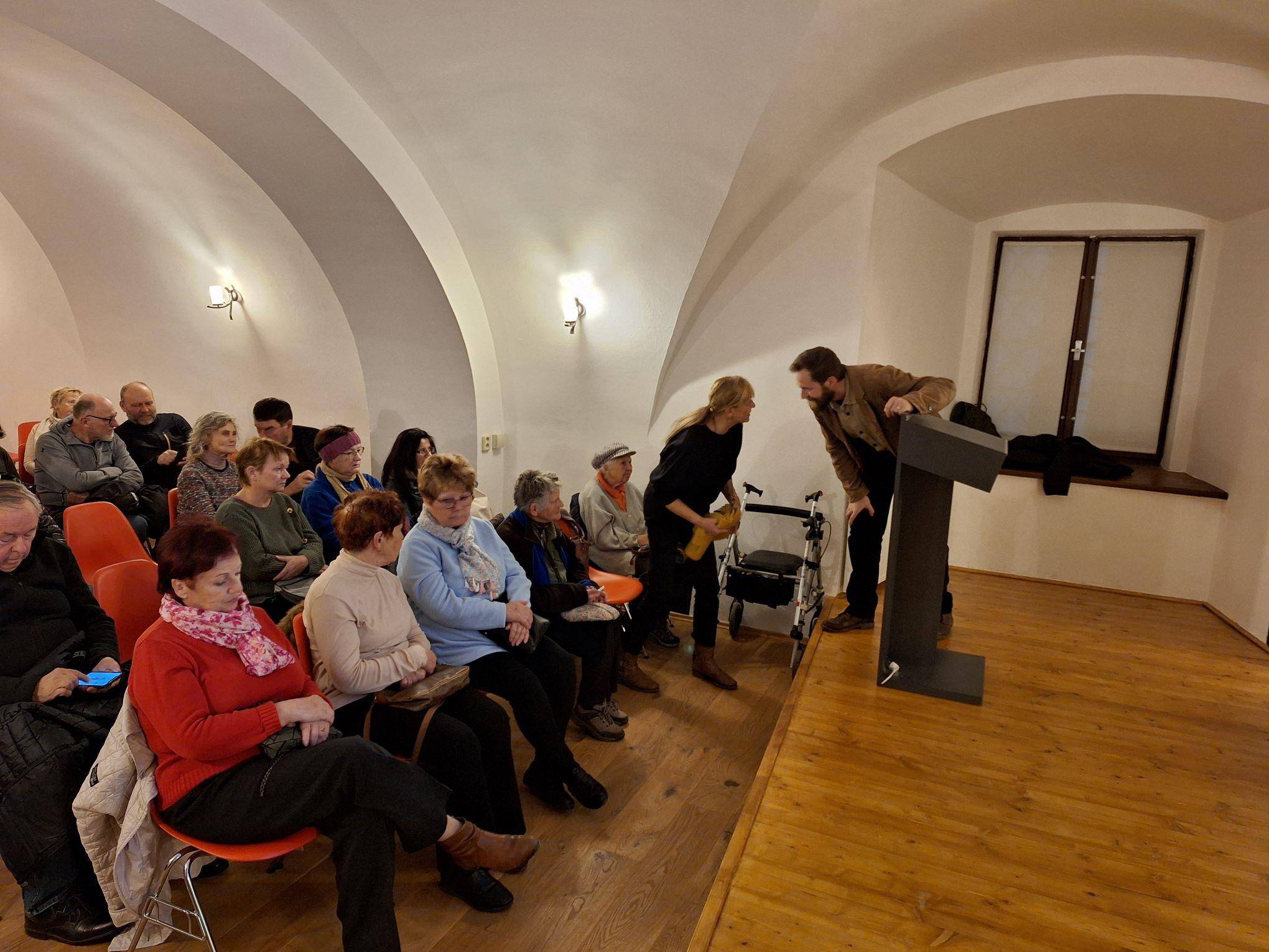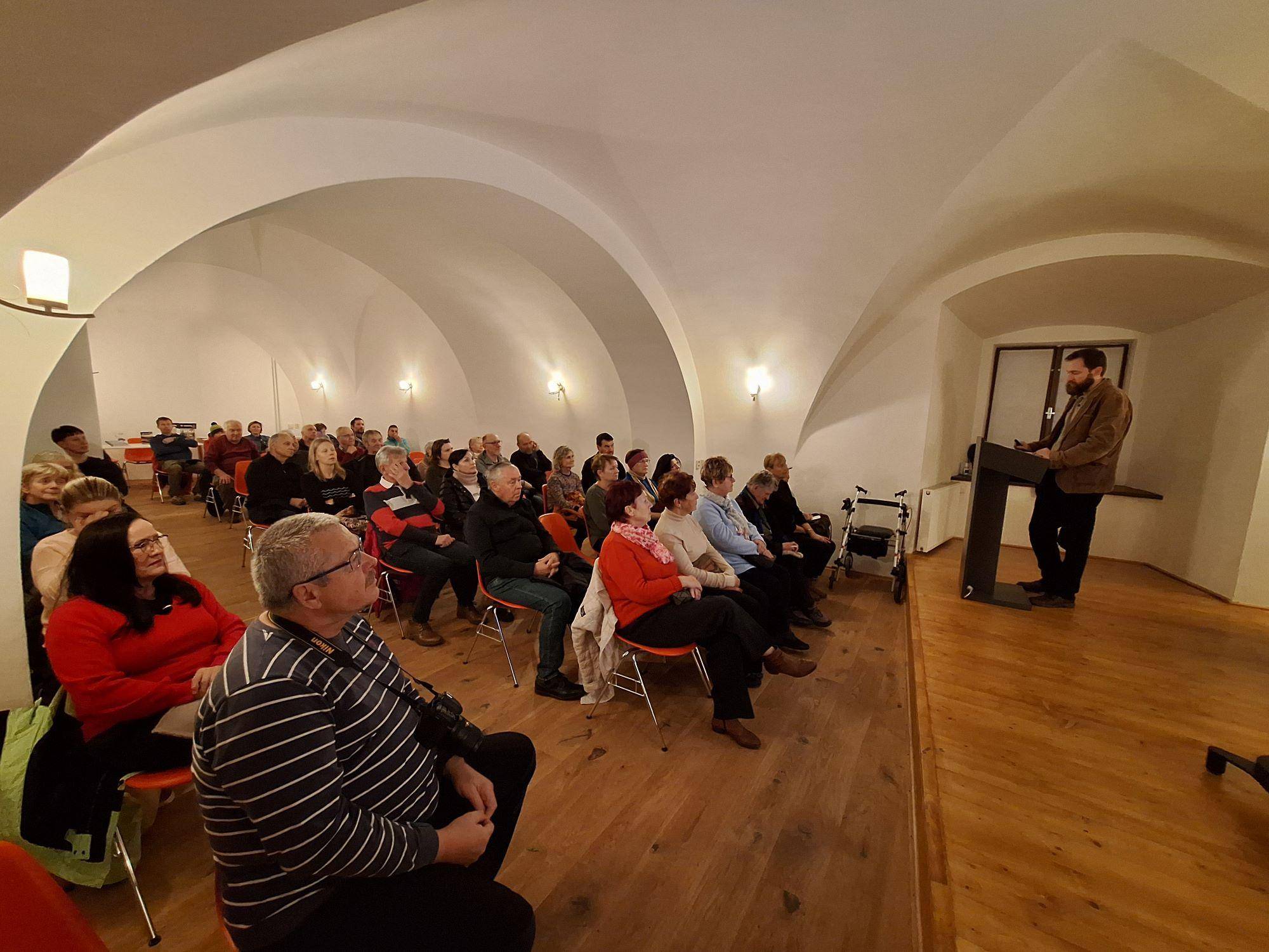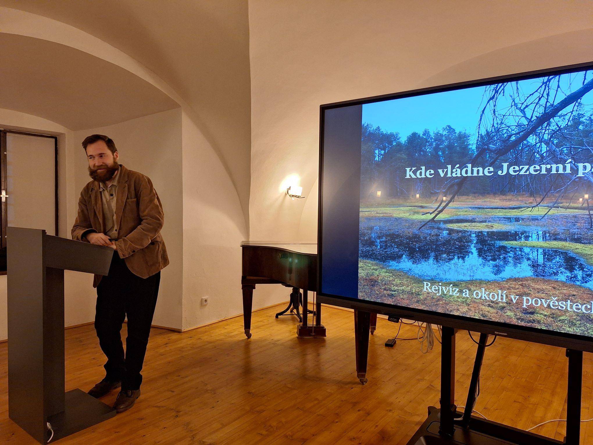 Pověsti tajuplného Rejvízu přilákaly bezmála padesátku zájemců28.11.2024 Večer 28. listopadu se ti, kdo vstoupili do Rytířského sálu jesenické Vodní tvrze, symbolicky přenesli na místo, jehož pověsti jsou podle etnografa VMJ Matěje Mately nejtypičtějším obrazem jesenického nadpřirozena. Příběhy z Rejvízu, nejvýše položené osady v našem Slezsku, skutečně vypovídají o zadumané a originální atmosféře těchto hor více než kterékoliv jiné. Po krátkém nastínění historie Rejvízu a hlavních postav, které zdejší pověsti sbíraly a zpracovávaly, se již přednášející dostal k první pověsti. V „Bednářově paličce“ se odráží víra někdejších obyvatel osady v podzemní propojení mechových jezírek s Baltským mořem. Poté se již Matela dostal k jednoznačně nejznámější pověsti tohoto místa, a to zatopení hříšného města Hunohradu, které, byť v podobě nevelké osady, v této oblasti skutečně existovalo. Ještě větší překvapení pak přednášející připravil ve chvíli, kdy se dostal k zásadní postavě rejvízského nadpřirozeného pantheonu, mysterióznímu jezernímu pastýři Gillovi – ten se totiž objevuje již na počátku 19. století v díle legendárních bratří Grimmů. Přednáška, jíž se zúčastnilo 48 posluchačů, bude pro úspěch brzy zopakována, kde jinde než v prostorách Penzionu Rejvíz. Informace včas zveřejníme na stránkách VMJ. | |