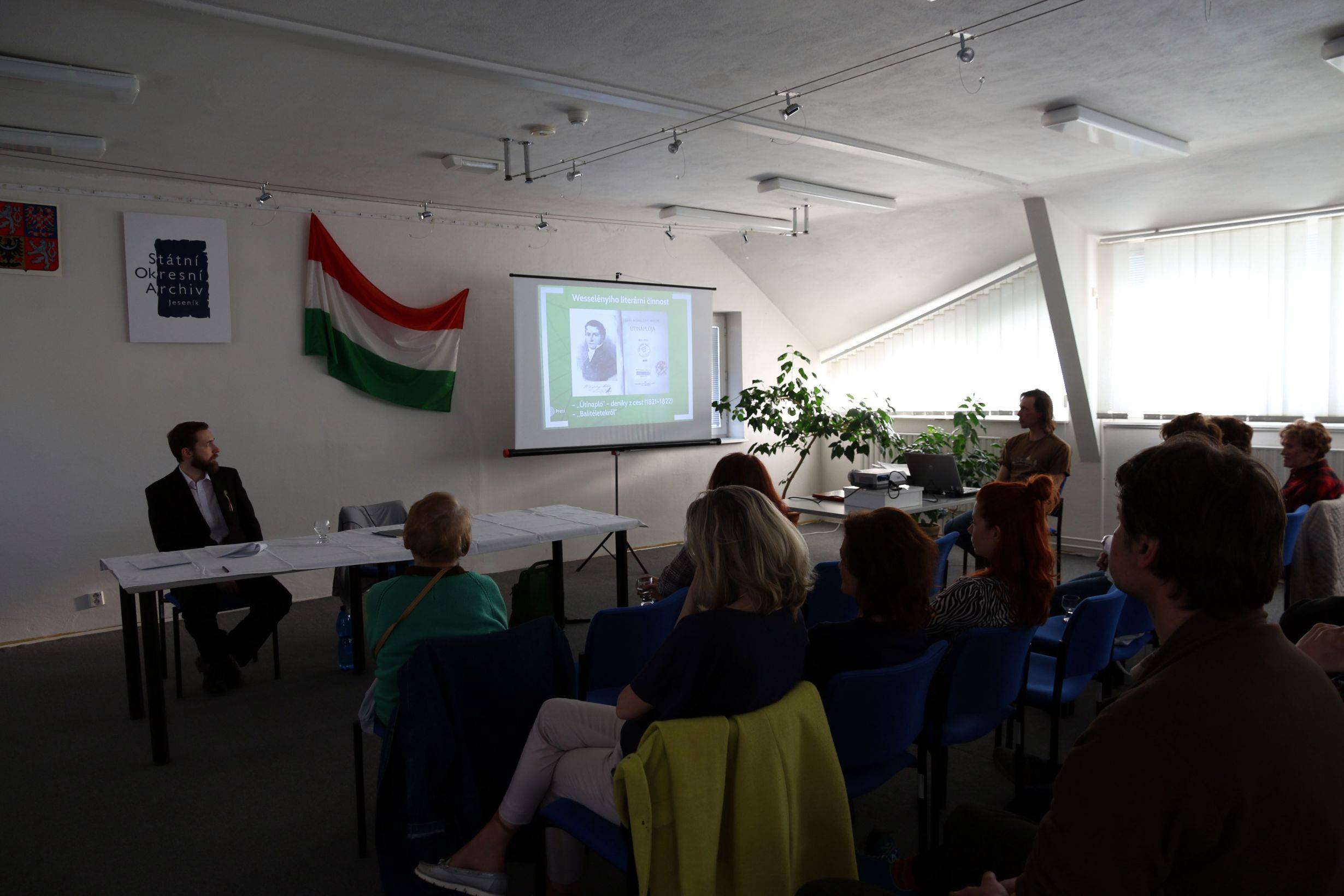 Přednáška k 180. výročí příjezdu barona Miklóse Wesselényiho na Gräfenberg17.04.2019 17. dubna 2019, Státní okresní archiv Jeseník Ve středu 17. 4. 2019 se ve Státním okresním archivu Jeseník uskutečnila přednáška, jejímž cílem bylo připomenout 180. výročí prvního příjezdu barona Miklóse Wesselényiho na Gräfenberg. O okolnostech pobytu jedné z nejvýznamnějších postav maďarských dějin ve zdejším kraji pohovořil Lukáš Abt, Wesselényiho pohnuté životní osudy, literární činnost a duchovní odkaz pak přiblížil Matěj Matela. Paní ředitelka Bohumila Tinzová se zabývala situací ve Frývaldově v první polovině 19. století. | |