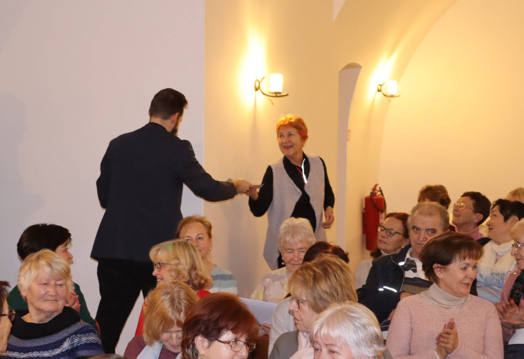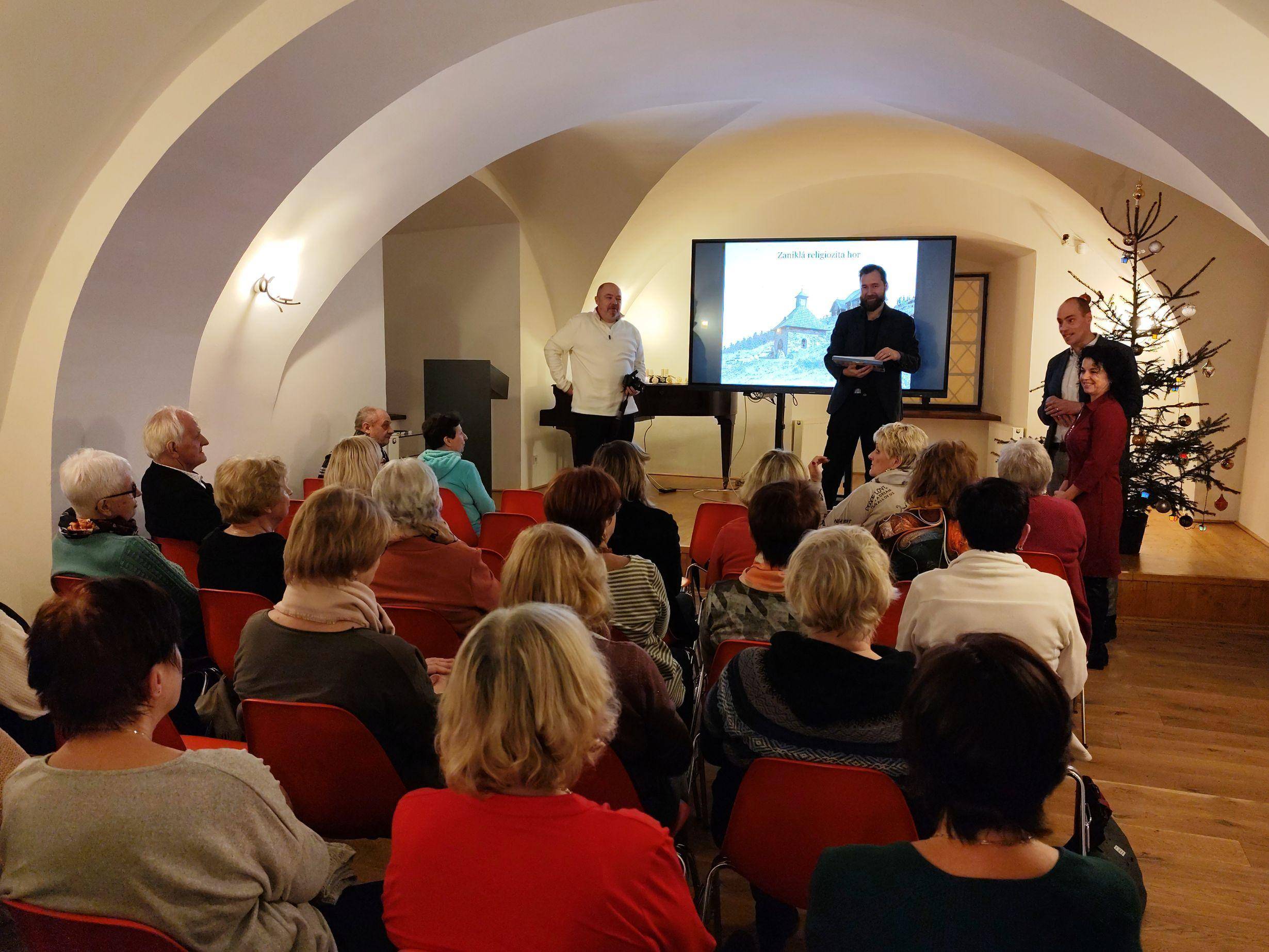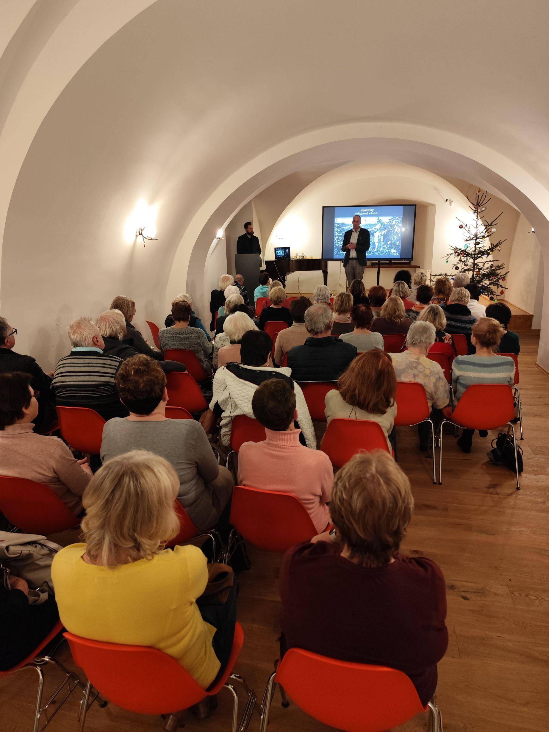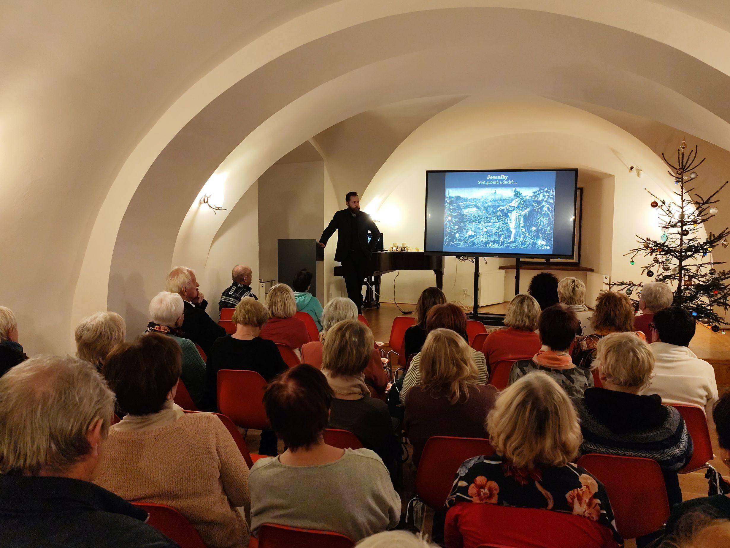 Vrbenská Univerzita volného času ukončila 24. cyklus v jesenickém muzeu19.12.2024 Každým rokem organizuje vrbenská STŘECHA – Středisko chytrých aktivit pro studenty své večerní univerzity slavnostní zakončení. Tentokrát padla volba na Vlastivědné muzeum Jesenicka. Ve čtvrtek 19. prosince 2024 dorazili studenti a studentky (spolu s ředitelkou Střechy Pavlou Müllerovou a svým „třídním učitelem“ Jakubem Rybárem) do Vodní tvrze, kde se nejprve rozdělili do čtyř skupin a navštívili všechny tři muzejní expozice. Ve druhé části programu se pak přesunuli do prostor Rytířského sálu, kde vyslechli přednášku svého rodáka, muzejního etnografa Matěje Mately, na téma přízraků starých jesenických pověstí, což do předvánoční atmosféry skvěle zapadlo. Přednášející se pak ujal i samotného předání osvědčení o absolvování cyklu každému jednotlivému účastníkovi. | |