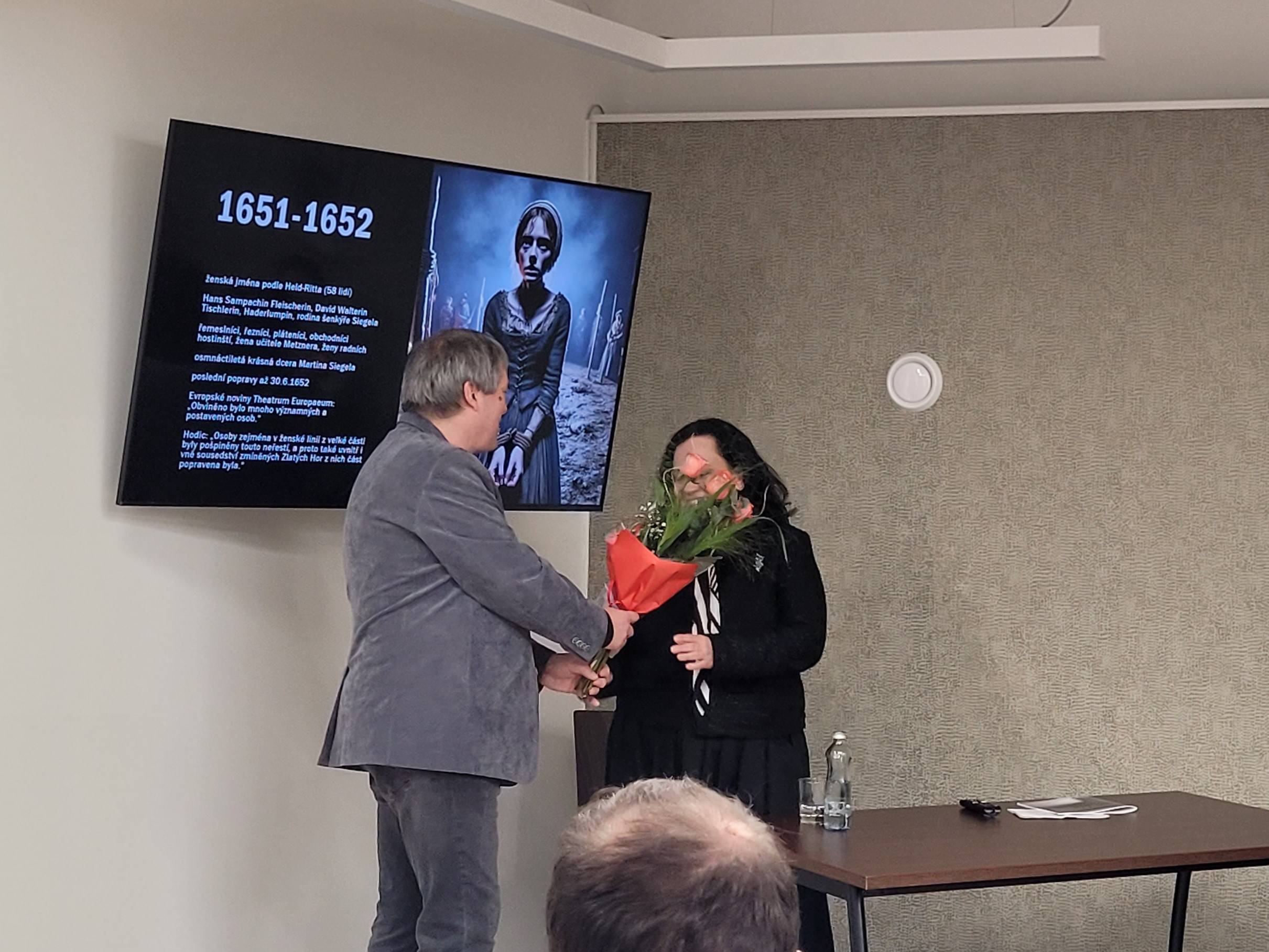 Královna čarodějnic ze Zlatých Hor představena ve Zlatých Horách25.02.2025 V úterý 25. února 2025 proběhlo ve Zlatých Horách slavnostní představení nové publikace Vlastivědného muzea Jesenicka Královna čarodějnic ze Zlatých Hor 1651–1652, která se věnuje čarodějnickým procesům v regionu. Akce přilákala mnoho místních obyvatel, kteří projevili velký zájem o historické události spojené s tímto temným obdobím města. Autorka Michaela Neubauerová představila obsah publikace, zaměřila se na nové poznatky a přiblížila osudy osob, které se ocitly v hledáčku inkvizičních soudů. Po oficiální části následovala diskuze, během níž měli návštěvníci akce možnost klást otázky a sdílet své vlastní pohledy na téma čarodějnických procesů. | |