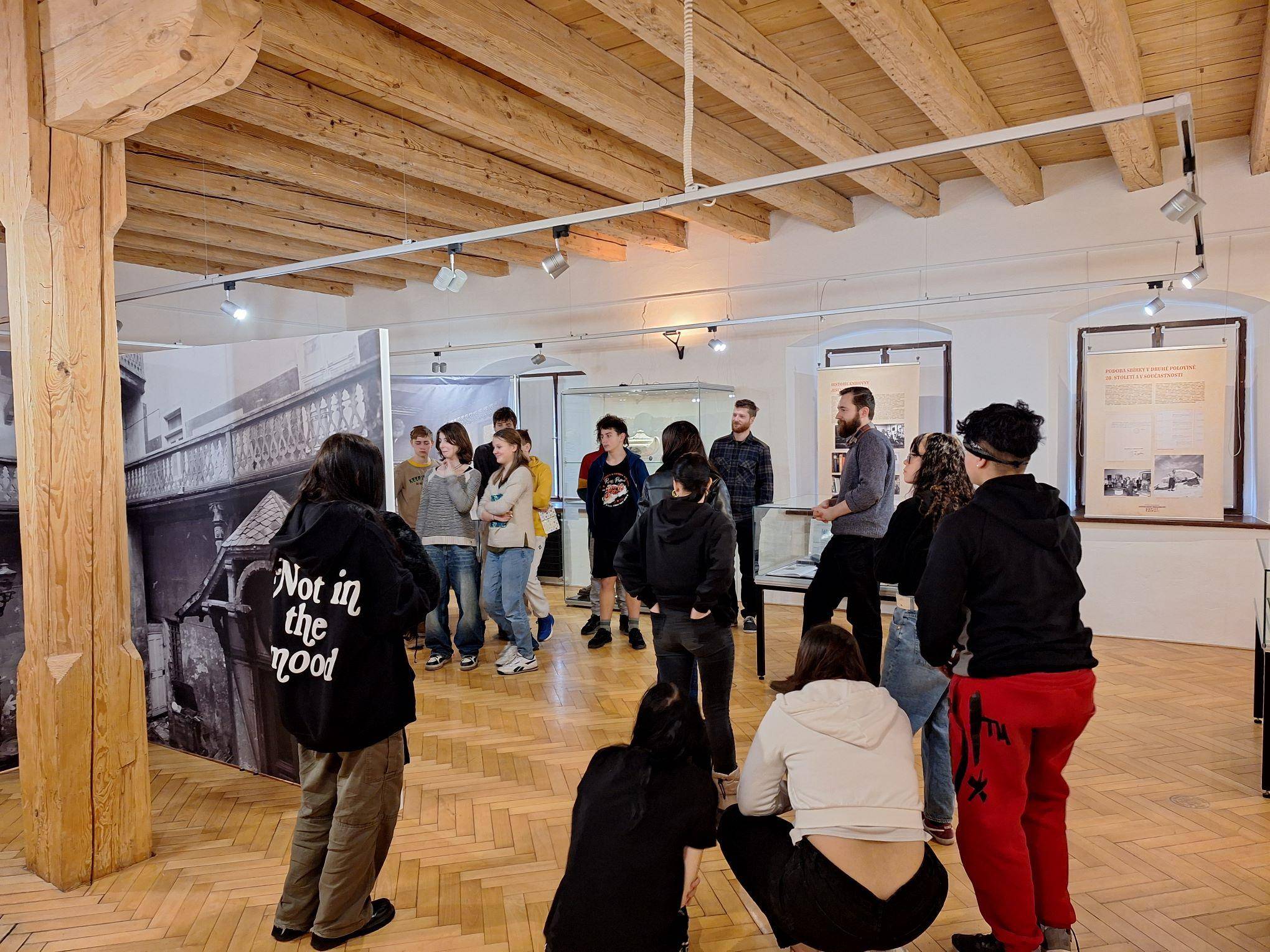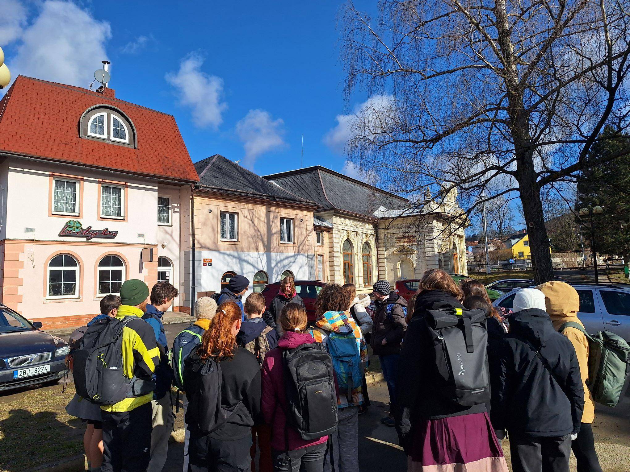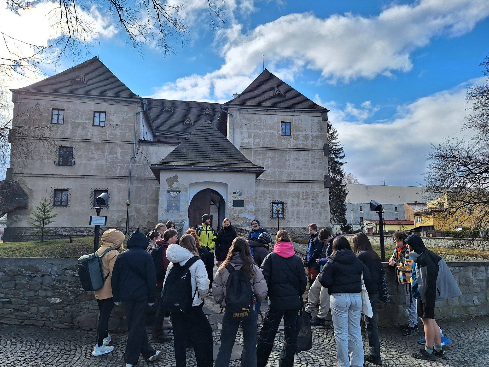 Setkání se žáky 7.–9. ročníku Montessori tříd ze základní školy ve Vápenné28.02.2025 V pátek 28. února 2025 uspořádali žáci 7.–9. ročníku Monterssori tříd ze základní školy ve Vápenné výjezd do Jeseníku, aby se v rámci výuky dějepisu seznámili s podobou města na přelomu 19. a 20. století a zároveň ve Vodní tvrzi navštívili expozici čarodějnických procesů a výstavu mapující 125 jesenického muzejnictví. Během procházky po městě s pracovníkem VMJ Pavlem Macháčkem se seznámili s historií výstavby železniční trati, vybudováním městské nemocnice císařovny Alžběty, průmyslovým areálem nad soutokem Staříče s Bělou, textilní minulostí města i podobou jesenického náměstí před více než 100 lety. Součástí vlastivědně zaměřeného dopoledne se stala i komentovaná prohlídka rozsáhlé výstavy mapující 125 let jesenického muzejnictví. Jeden z jejích autorů, etnograf VMJ Matěj Matela, žákům povyprávěl o historii muzejnictví na Jesenicku i obecně, zároveň jim však průběžně – na základě jednotlivých vystavených předmětů – vysvětloval, že muzejnická práce se zdaleka neomezuje na pouhé oprašování starých artefaktů v přítmí depozitářů. Mimo jiné tak účastníky prohlídky seznámil s pravidly muzejnictví, vyplývajícími ze zákona, se způsoby nabývání sbírkových předmětů a podělil se s nimi rovněž o zajímavé a vtipné příběhy z muzejní praxe. Na závěr „expedice“ si žáci při skupinové práci mohli vyzkoušet malý test s otázkami, které je přenesly na Jesenicko druhé poloviny 19. století a zároveň přivedly k zamyšlení nad proměnami okolního světa a vztahu současného člověka k minulosti. | |