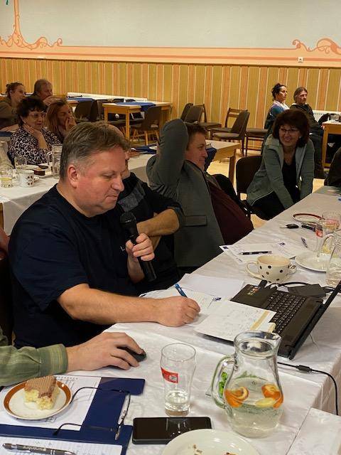Setkání muzejních pracovníků se Skorošickými v jejich kulturním domě14.03.2025 V pátek 14. března 2025 se v kulturním domě ve Skorošicích uskutečnilo setkání místních pamětníků a zájemců o regionální vlastivědu s pracovníky Vlastivědného muzea Jesenicka. Setkání, které iniciovala L. Andělová, proběhlo za účasti vedení obce. Zúčastnil se jak starosta V. Solodujev, tak místostarostka E. Brezniaková a také několik zastupitelů. Téměř stovce návštěvníků představil regionální práci muzea ředitel Pavel Rušar, na něhož s přednáškami o regionální historii a archeologii navázali Pavel Macháček a Milan Rychlý. Následná diskuze a plánování společných aktivit se točily kolem rozhovorů s pamětníky, sběru a popisu starých fotografií a možné publikační činnosti stran skorošických dějin.Za VMJ bychom rádi poděkovali za aktivní přístup místních k regionu a jeho historii a těšíme se na spolupráci, ať už půjde o zařazení pamětníků do projektu Mizející paměť z kraje pod Pradědem, přednáškovou činnost v obci, či spolupráci na publikačních výstupech. | |