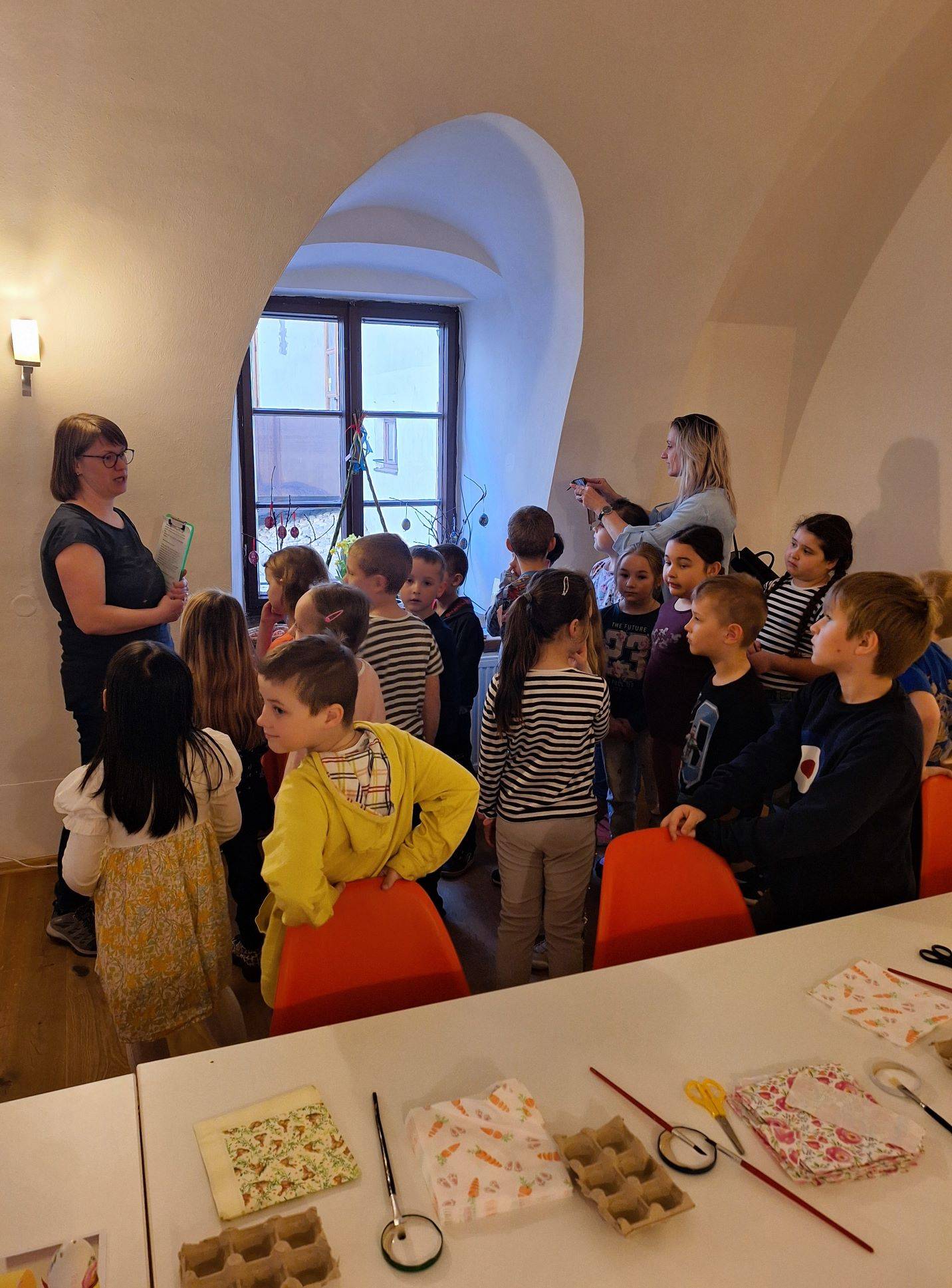 Velikonoční tvoření v muzeu přineslo radost i nové poznatky16.04.2025 Ve dnech 15. a 16. dubna ožil Rytířský sál Vodní tvrze velikonoční atmosférou. Ve Vlastivědném muzeu Jesenicka proběhly Velikonoční workshopy, které nabídly dětem nejen kreativní tvoření, ale i zajímavé informace o velikonočních tradicích na Jesenicku. Pod vedením BcA. Ivany Závadové si děti vyzkoušely zdobení vajíček ubrouskovou metodou, vytvořily si kuřátkové stojánky na vajíčko a ozdobily velikonoční perníčky. Tvůrčí dílničky probíhaly v dopoledních hodinách a těšily se velkému zájmu malých návštěvníků.Akce přinesla nejen krásné dekorace, které si děti odnesly domů, ale především radost ze společného tvoření a poznávání velikonočních zvyků. | |