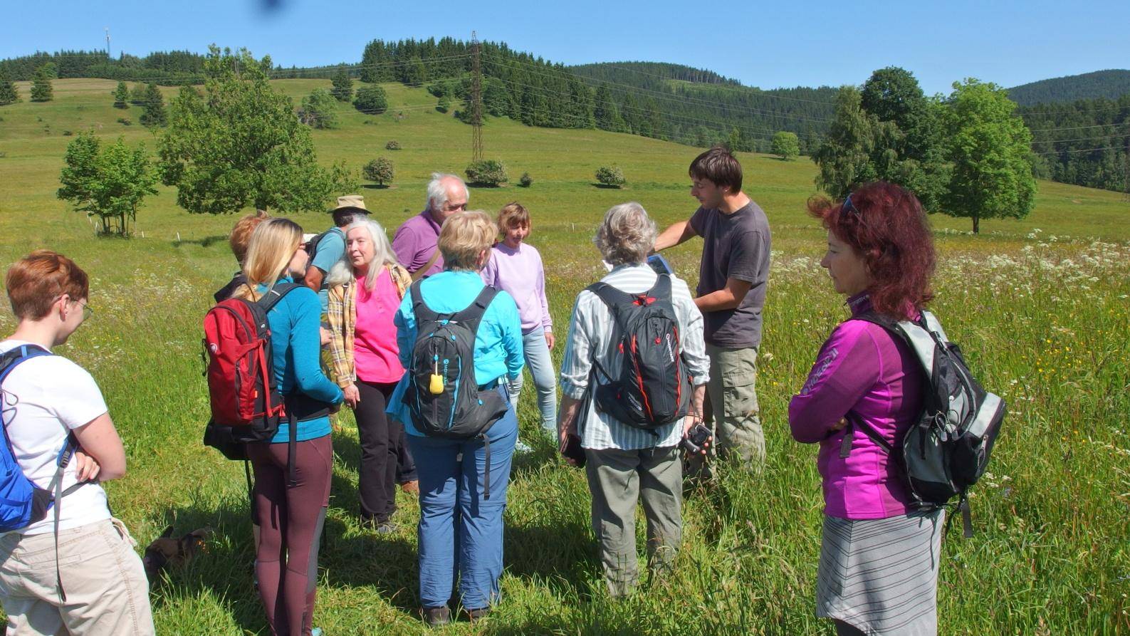 Za květnatými loukami Ostružné14.06.2025 V sobotu 14. června 2025 se uskutečnila botanická exkurze do Ostružné pod vedením Vojtěcha Tarašky z Moravského zemského muzea. Tamní podhorské louky právě v tento čas vynikají svou pestrostí – barevnou i druhovou. Účastníci měli mimo jiné možnost spatřit v květu hned čtyři druhy orchidejí: vstavač mužský, vemeník dvoulistý, pětiprstku žežulník a prstnatec májový. Měli však štěstí i na miniaturní kapradinu vratičku měsíční nebo poloparazitickou lněnku alpskou. Na zpáteční cestě přes Ostružnou pak obdivovali dva různé posly časů minulých: na soukromé skalce rostl balkánský třetihorní relikt ramondie srbská, zatímco mezi chalupami se tyčila o něco mladší památná lípa velkolistá. Exkurzi účastníci zakončili příjemným posezením v restauraci Jeřabina. Foto 1-6: Vojtěch Taraška Foto exkurzní skupiny: Miloš Taraška | |