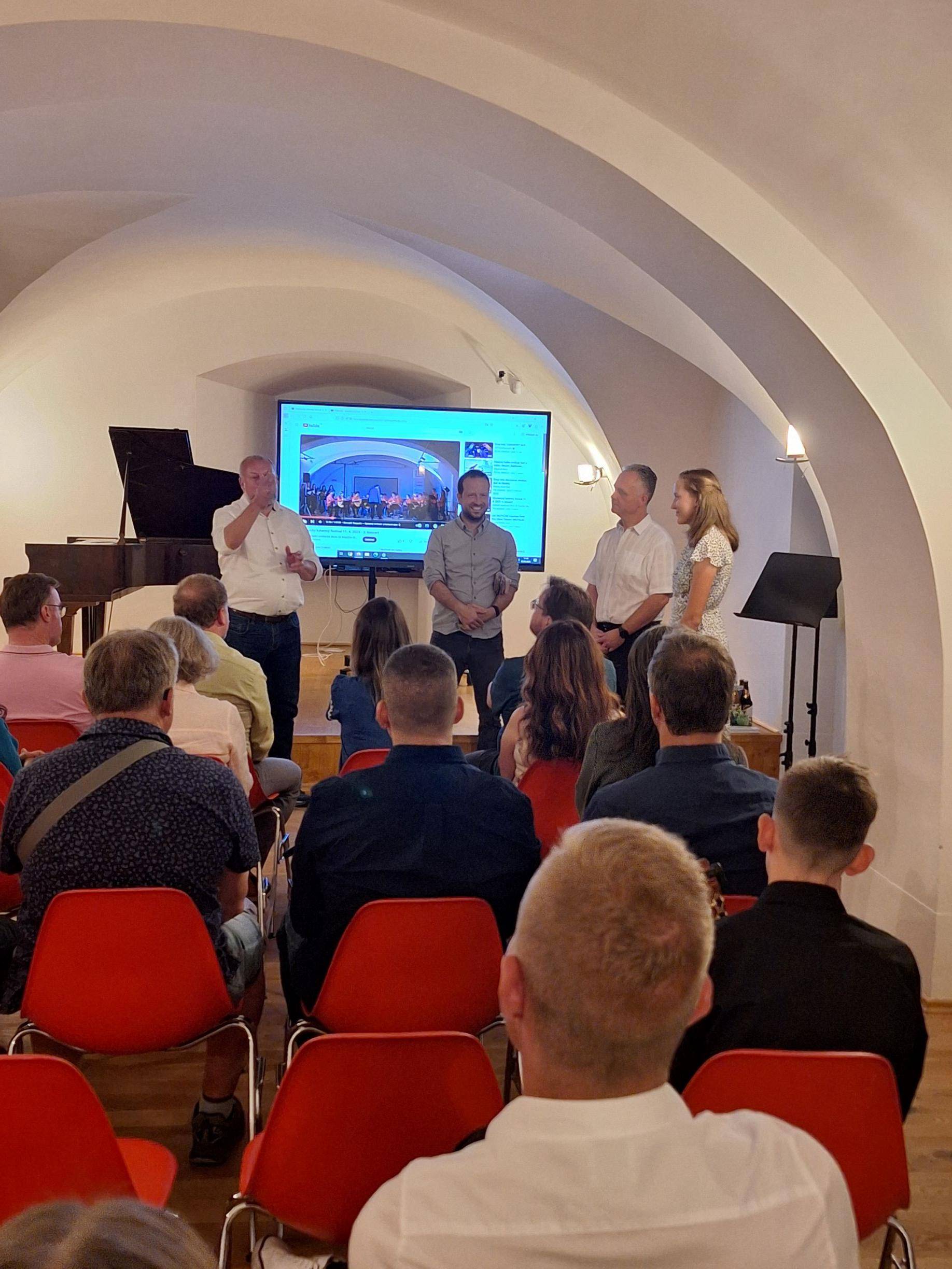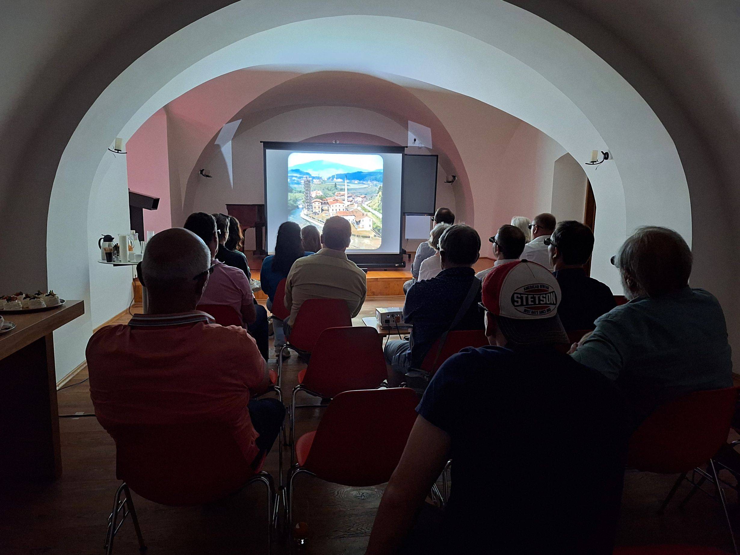 Partneři ze zahraničních regionů navštívili vlastivědné muzeum03.09.2025 Začátek září patřil ve Vodní tvrzi zahraničním hostům, konkrétně z Rakouska a Německa. Již dlouho je Landkreis Würzburg partnerským regionem Olomouckého kraje. Jeho zástupci včetně hejtmana Thomase Ebertha (Landrat) dorazili do Vlastivědného muzea Jesenicka již podruhé. Tentokrát se však nejednalo o seznamovací či zdvořilostní návštěvu, jejich pobyt měl konkrétní cíl. Po několika měsících (ba letech) příprav byla v Rytířském sále promítána premiéra německojazyčné verze filmu, který se v češtině jmenuje Historické Jesenicko ve 3D, nicméně v němčině nese lyričtější název Freiwaldauer Ländchen – eine kleine Geschichte in 3D. Snímek pojednává o regionálním fotografovi Kleinovi z přelomu 19. a 20. století a o jeho dílu. Mimo zástupců partnerského regionu v Německu navštívili tvrz a premiéru filmu také zástupci MSSGV, časopisu Altvater a rovněž partneři z rakouského Grazu. Samozřejmostí byla účast kolegů z Odboru sportu, kultury a památkové péče, jakož i z Oddělení cestovního ruchu a vnějších vztahů Olomouckého kraje, jejichž část delegace vedli členové rady Svatopluk Binder a Jana Konvičková. Kromě Vlastivědného muzea Jesenicka se na programu podílela také Základní umělecká škola Jeseník. Trojrozměrnou projekci je možné si (maximálně pro 20 osob) ve Vlastivědném muzeu Jesenicka objednat, a to německou i českou verzi. Bližší informace budou poskytnuty na emailu provoz@muzeumjesenik.cz či na telefonním čísle 775 459 283. __________________________________________________________________________________________ Partner aus ausländischen Regionen besuchten das Heimatmuseum Anfang September gehörte die Wasserburg ausländischen Gästen, insbesondere aus Österreich und Deutschland. Schon seit Langem ist der Landkreis Würzburg Partnerregion der Region Olomouc. Deren Vertreter, darunter auch der dortige Landrat Thomas Eberth, besuchten bereits zum zweiten Mal das Heimatkundemuseum der Region Jesenicko. Diesmal handelte es sich jedoch nicht um einen Kennenlern- oder Höflichkeitsbesuch, sondern die Reise hatte ein konkretes Ziel. Nach mehreren Monaten (ja sogar Jahren) der Vorbereitung wurde im Rittersaal die Premiere der deutschsprachigen Version des Films gezeigt, der ursprünglich auf Tschechisch Historické Jesenicko ve 3D heißt, in deutscher Sprache jedoch den lyrischeren Titel Freiwaldauer Ländchen – eine kleine Geschichte in 3D trägt. Der Film ist jedoch keine bloße Übersetzung, da der Humor aus tschechischer (bzw. tschechoslowakischer) Perspektive durch Humor aus deutscher Sicht ersetzt werden musste. Das Werk handelt vom regionalen Fotografen R. Klein an der Wende vom 19. zum 20. Jahrhundert und von seinem Schaffen. Neben den Vertretern der deutschen Partnerregion besuchten auch Vertreter der MSSGV, der Zeitschrift Altvater sowie Partner aus dem österreichischen Graz die Burg und die Filmpremiere. Selbstverständlich nahmen auch Kollegen des Referats für Sport, Kultur und Denkmalschutz sowie der Abteilung für Tourismus und Außenbeziehungen des Olomoucký kraj teil; ein Teil der Delegation wurde von den Ratsmitgliedern Svatopluk Binder und Jana Konvičková geleitet. Neben dem Heimatmuseum Jeseník beteiligte sich am Programm in Jeseník auch die Grundkunstschule Jeseník. Die dreidimensionale Projektion kann für maximal 20 Personen im Heimatmuseum Jeseník gebucht werden – sowohl in der deutschen als auch in der tschechischen Sprachversion. Nähere Informationen erhalten Sie unter der E-Mail-Adresse provoz@muzeumjesenik.cz oder telefonisch unter +420 775 459 283. | |