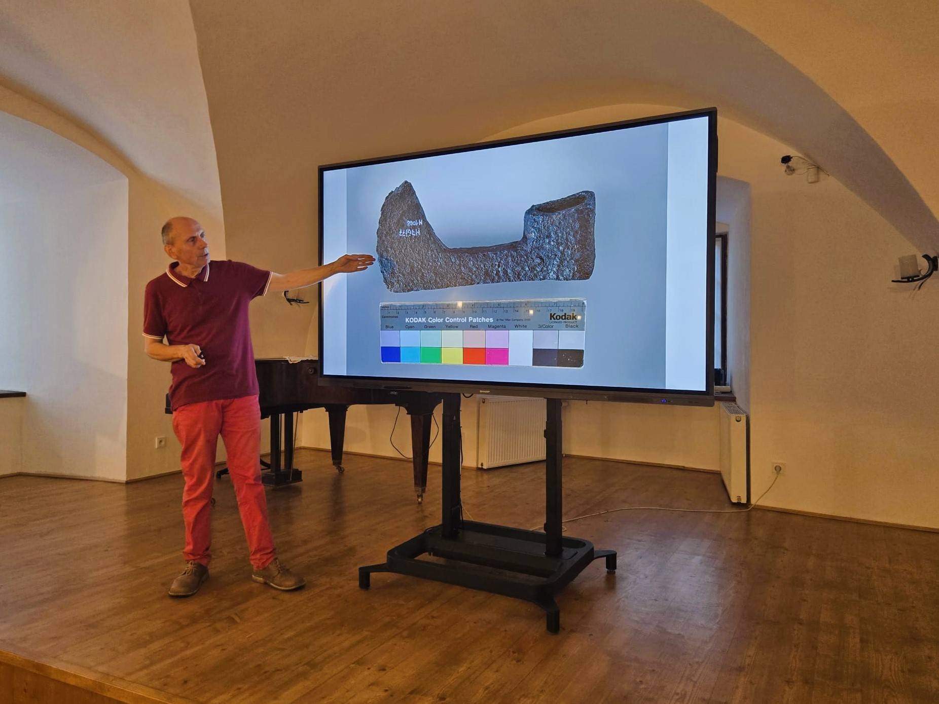 Jak se fotí sbírky? Přednáška nabídla pohled do zákulisí digitalizace muzejních předmětů11.09.2025 Ve čtvrtek 11. září se v Rytířském sále Vodní tvrze uskutečnila přednáška fotografa MgA. Vasila Stanka s názvem Jak se fotí sbírky? Digitalizace muzejních předmětů očima fotografa. Návštěvníci měli možnost nahlédnout do fascinujícího, avšak náročného procesu fotografické dokumentace muzejních sbírek. Přednášející přiblížil specifika práce s různými typy předloh – od trojrozměrných objektů po plošné materiály – a upozornil na odlišnosti při zachycování jejich tvarů, struktur i povrchů. Podrobně se věnoval také technickému zázemí nezbytnému pro kvalitní digitalizaci a představil praktické postupy, které zajišťují šetrné zacházení s historickými artefakty.Součástí programu byla i ukázka samotného procesu fotografování, díky níž si návštěvníci mohli udělat konkrétní představu o tom, co vše stojí za vznikem profesionálního snímku určeného k dlouhodobé archivaci v digitální podobě. | |