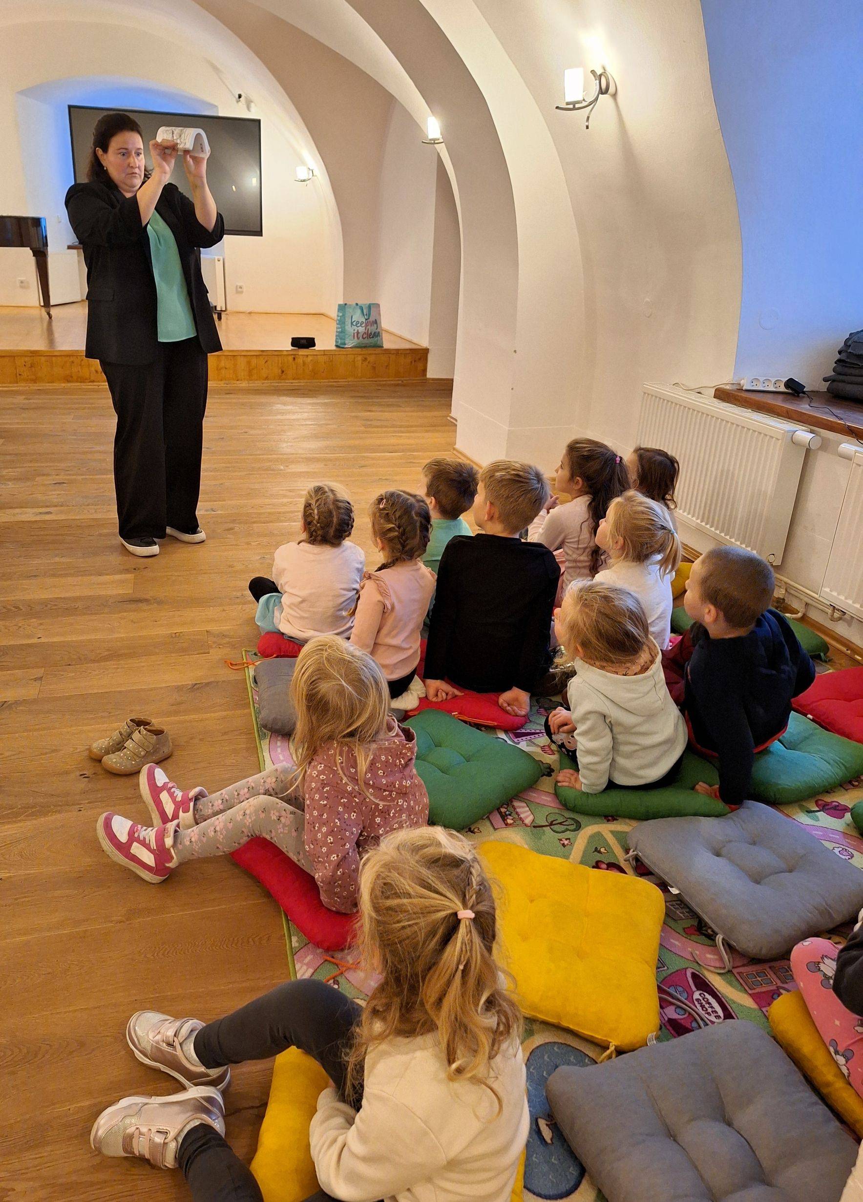 Hravé čtení s Hanou Nevrlou v Rytířském sále24.09.2025 Ve středu 24. září v dopoledních hodinách hostil Rytířský sál Vodní tvrze program zaměřený na rozvoj dětského čtenářství. Proběhl zde workshop Hravé čtení, který vedla spisovatelka, překladatelka a lektorka Mgr. Hana Nevrlá. Do programu se zapojilo 12 dětí ve věku 4–6 let z Mateřské školy Široký Brod. Interaktivní dílna byla postavena na autorském čtení, pohybových hrách a práci s příběhem. Děti se aktivně zapojovaly do vyprávění, objevovaly radost z knih a zároveň rozvíjely fantazii i pohyb.Cílem programu bylo ukázat, že čtení může být nejen poučné, ale i hravé a dobrodružné. Setkání přineslo dětem nejen zážitek z literatury, ale i společnou radost ze sdíleného příběhu. | |